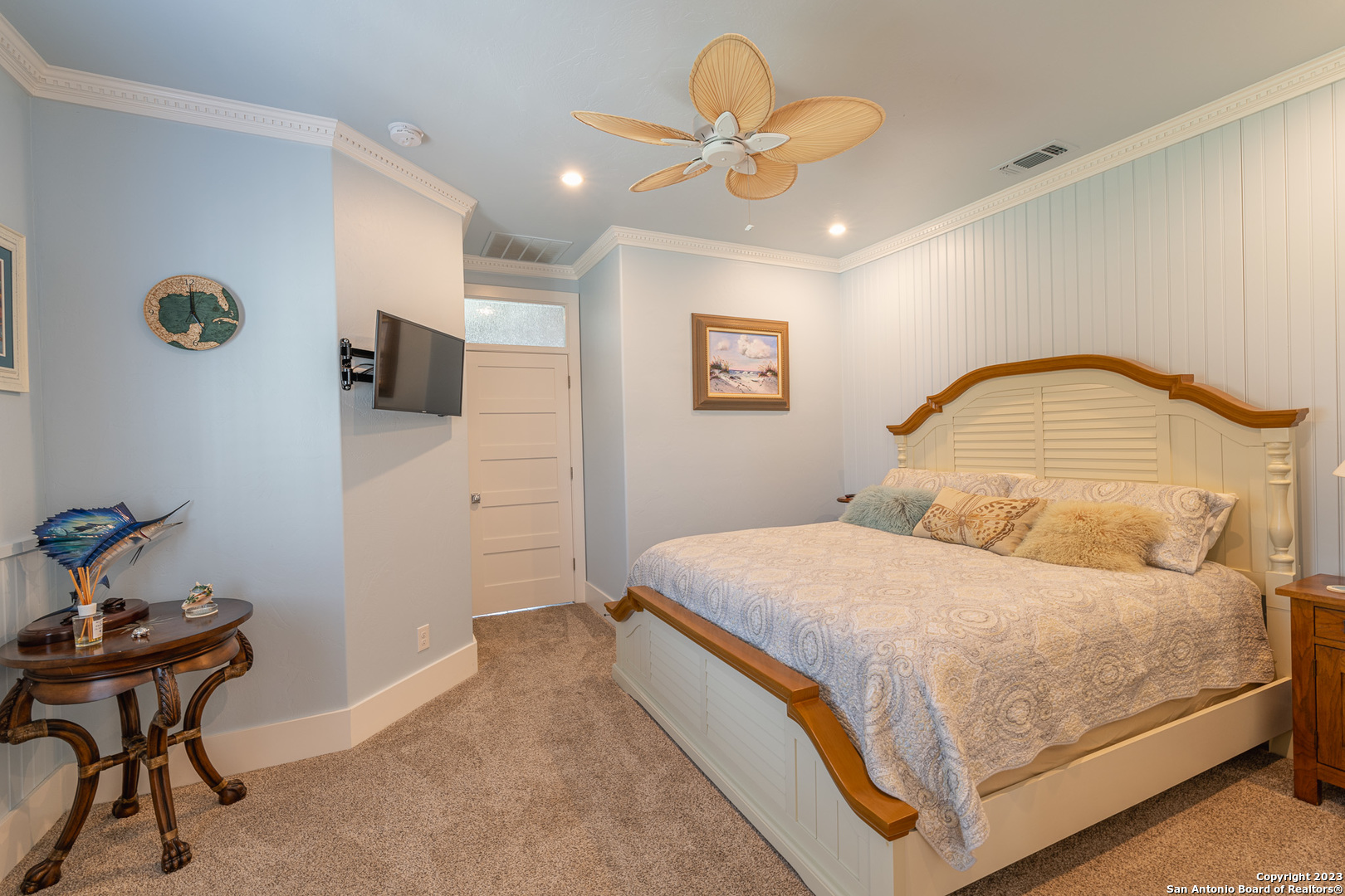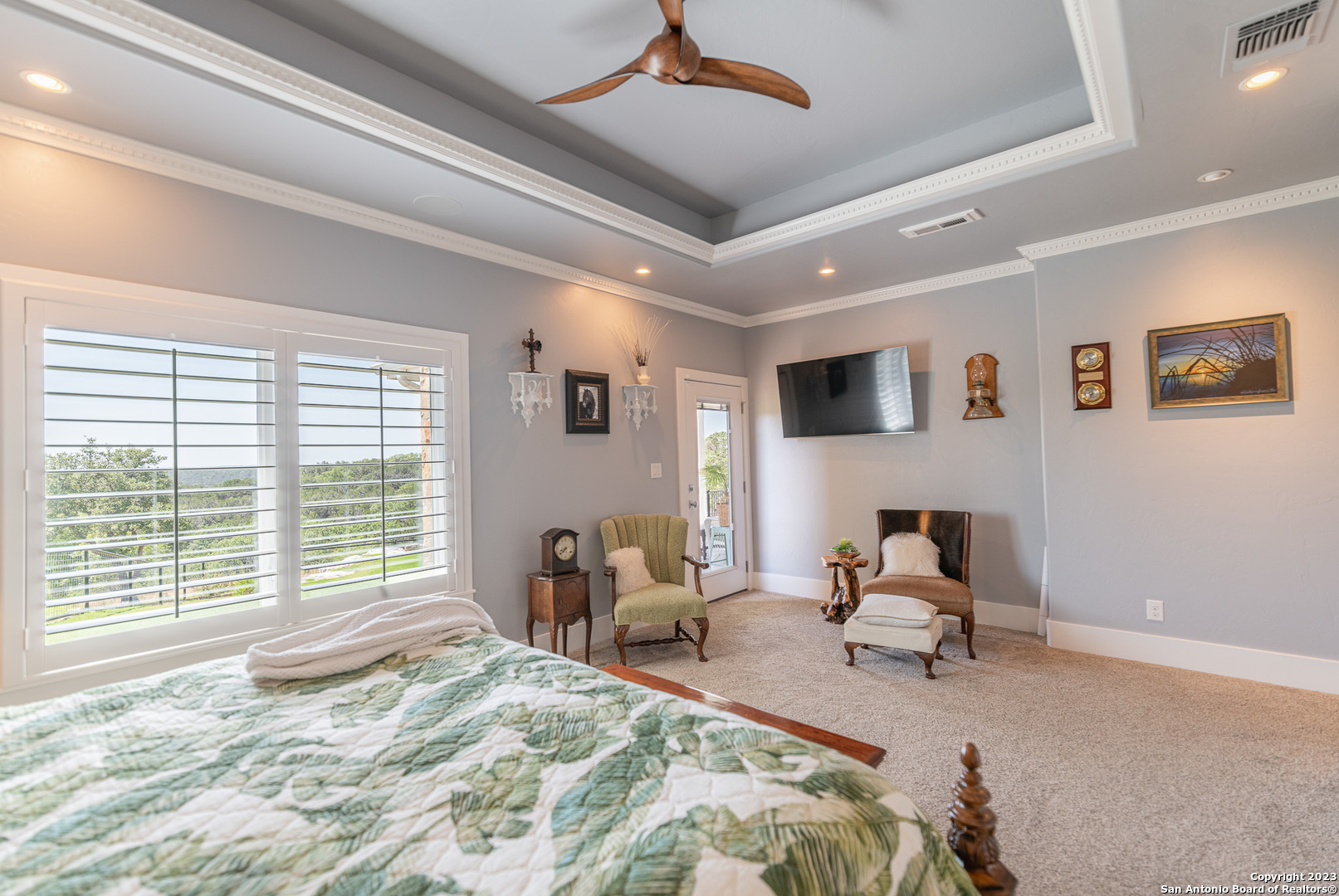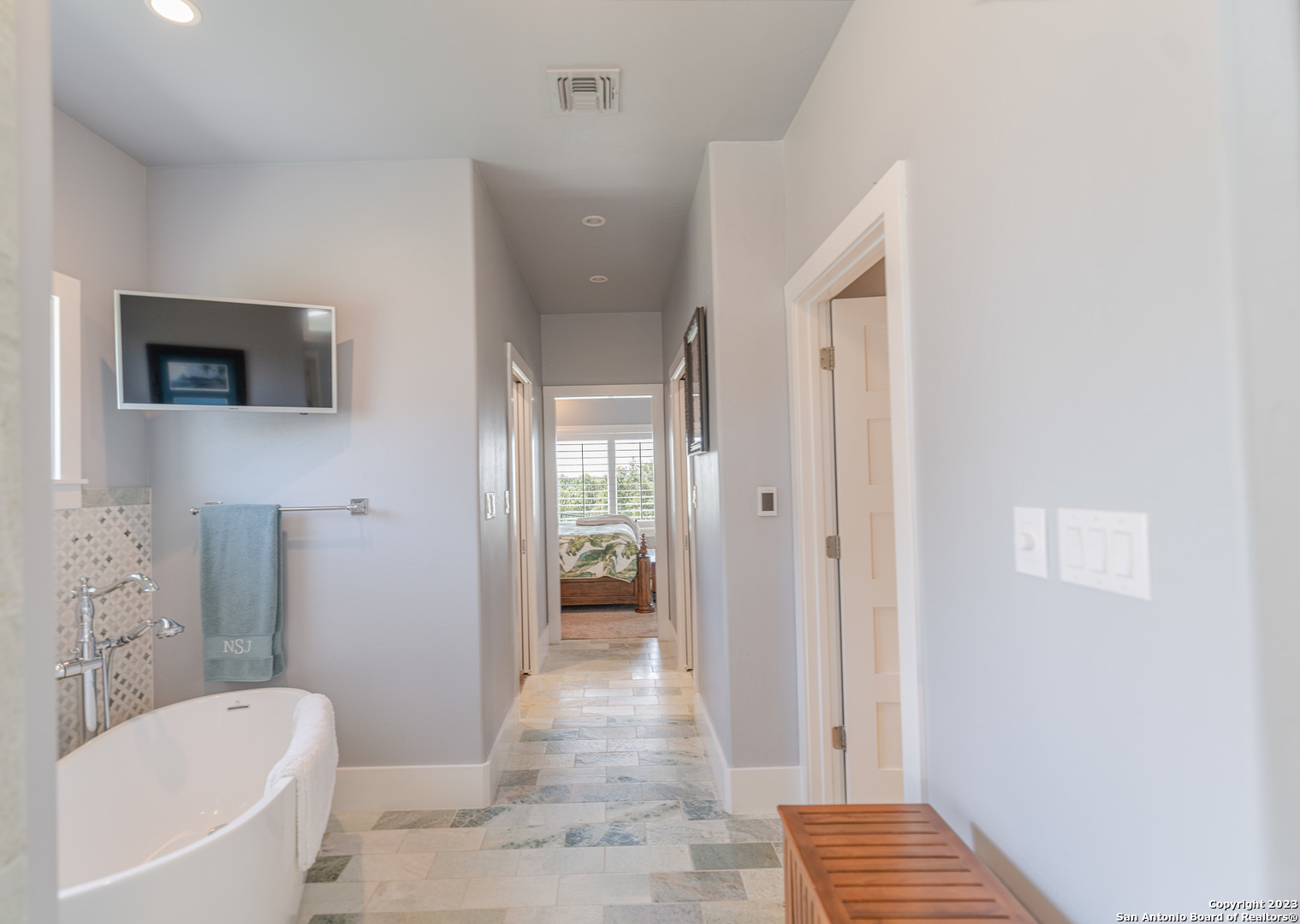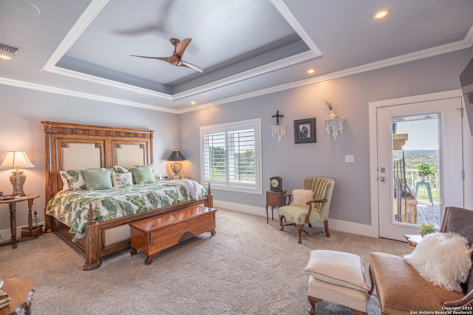 Step inside this custom Texas Hill Country home & you'll find yourself captivated by the allure of coastal vibes, where every corner of this residence exudes tranquility & relaxation. With an open-concept layout, the living spaces flow effortlessly, maximizing natural light & providing a sense of breezy spaciousness. The gourmet kitchen is a culinary enthusiast's dream come true. Equipped with high-end appliances, custom cabinetry & a large central island, it's perfect for preparing delectable dishes or hosting memorable gatherings. Step outside to your private outdoor oasis, where a lush green lawn surrounds a uniquely stunning pool. Unwind on the spacious patio, where you can enjoy al fresco dining or savor picturesque sunrises by the fireplace. Southeasterly breezes harken the seaside, but sweeping views of the Hill Country valley bring you back to your own 5+ acres of beautiful central Texas. The bedrooms have been thoughtfully designed to evoke a sense of coastal charm, with soft hues & large windows that offer ample natural light. The bathrooms are reminiscent of luxurious spa retreats, boasting elegant fixtures, designer tiles & soothing accents. Custom beauty truly abounds!