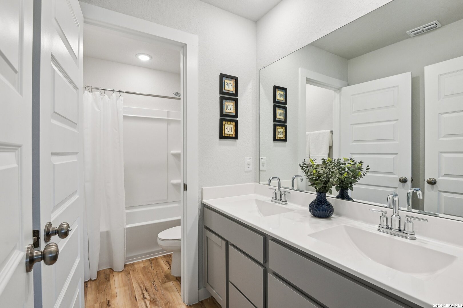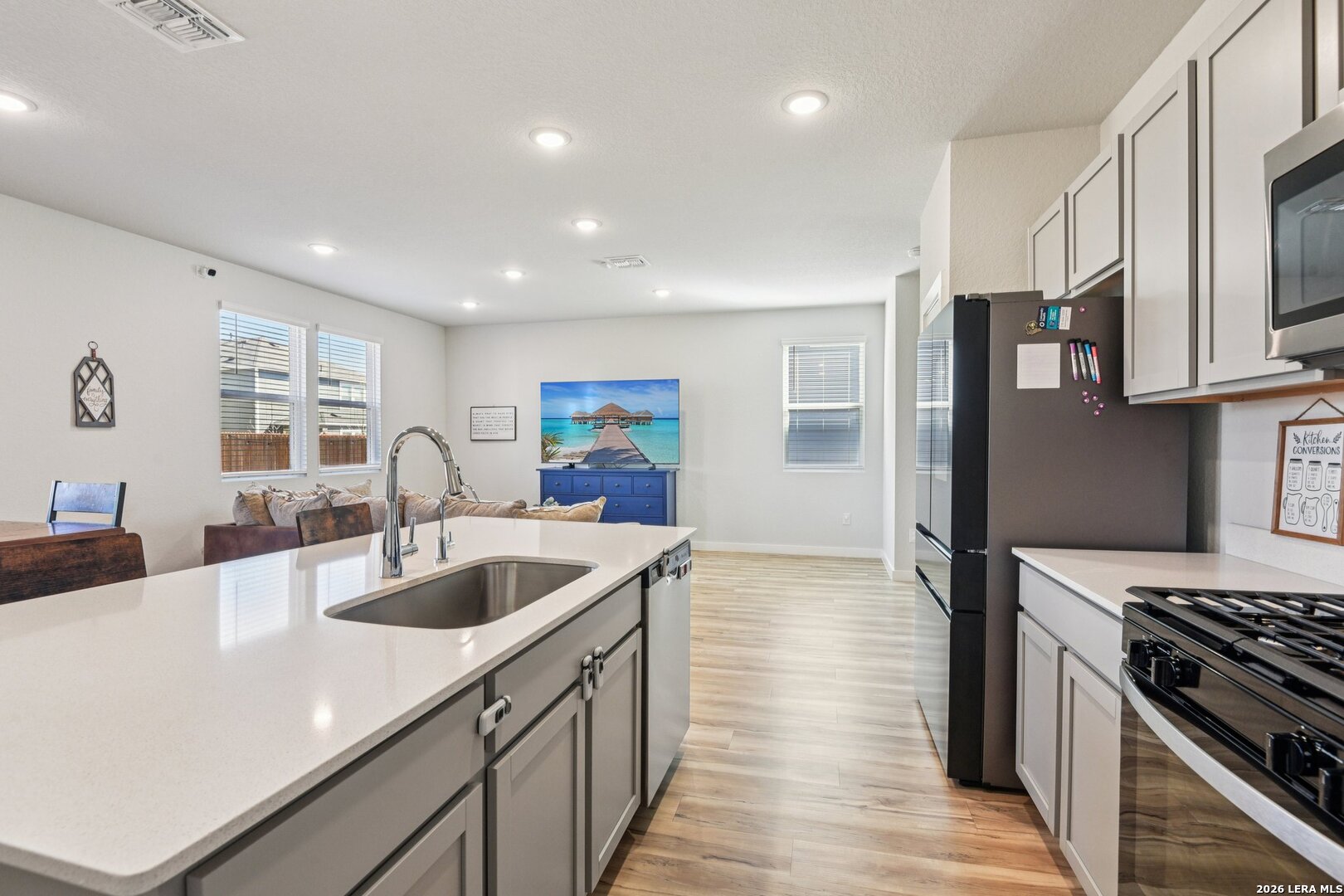 ASSUMABLE LOAN - 3.875 - ALL APPLIANCES INCLUDED!!! If you've been waiting for a home that feels fresh, functional, with modern finishes, truly move-in ready and with the added peace of mind with a remaining builder warranty on a cul-de-sac - THIS IS IT!!!!!! This open-concept home connects the kitchen, dining, and living areas, making it perfect for hosting or just enjoying everyday life. The kitchen features 36" grey shaker-style cabinetry, stainless steel appliances with a gas range, a spacious center island, and a corner walk-in pantry. Luxury wood-look vinyl plank flooring and recessed lighting enhance the main living spaces with both style and durability. Upstairs, the private primary suite includes dual sinks, cultured marble countertops, and a generous walk-in closet. Three additional bedrooms provide flexibility for guests, a home office, or additional living needs. A full laundry room and two-car garage add extra convenience. Ideally located near Loop 410 and I-37, this home offers easy access to Brooks City Base, downtown San Antonio, Fort Sam Houston, and a variety of nearby shopping and dining options.