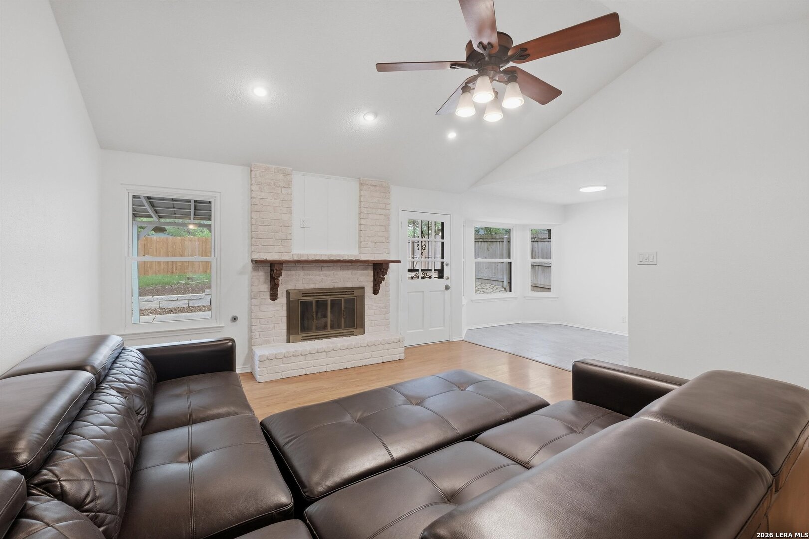 5707 Larkdale - Beautifully maintained, move-in ready 3 bed / 2 bath home in Northeast San Antonio. This turnkey property is perfect for first-time buyers, empty nesters, or anyone looking to downsize without sacrificing quality. The bright, open kitchen features durable quartz countertops, a stylish glass-tile backsplash, and ample cabinet space - ideal for everyday cooking and entertaining. No carpet, only warm wood and wood-look laminate that flow seamlessly from room to room. Both full baths have been updated with modern finishes. The primary suite is comfortable and private, while two additional bedrooms offer flexible space for guests, a home office, or a hobby room. Outside, enjoy a covered deck overlooking a private backyard shaded by mature trees - a peaceful spot for morning coffee or weekend gatherings. The low-maintenance yard complements the home's move-in readiness. Located in northeast San Antonio with quick access to Loop 1604 and I35, commuting and shopping are convenient. Competitively priced and ready for its next owners - schedule your showing today.