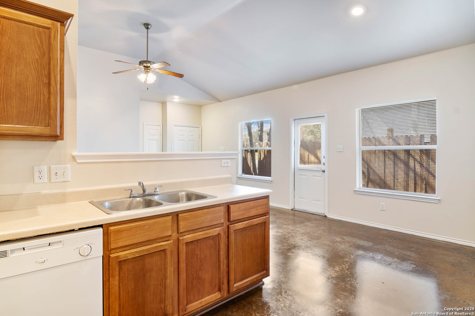 Welcome to Woodlake Golf Vista, a charming subdivision nestled in San Antonio's desirable northeast side. This exceptional investment opportunity features a well-maintained duplex, with each of the two units offering 1,220 square feet of living space. Each unit includes 3 bedrooms, 2 full bathrooms, and a one-car garage, making it ideal for investors seeking a profitable rental property or families desiring a multi-generational living setup. Both units showcase stained concrete flooring, ensuring durability and ease of maintenance. The open-concept layout seamlessly connects the living, dining, and kitchen areas, fostering a warm and inviting atmosphere. Each kitchen comes equipped with an oven/stove, a dishwasher, and ample cabinet space, providing all the essentials for convenient and enjoyable cooking experiences. Washer and dryer connections further enhance the convenience for tenants or residents. The well-proportioned bedrooms offer privacy and comfort, perfect for relaxation. This duplex boasts an excellent location with easy access to IH-35, simplifying commuting. It's also conveniently situated near Fort Sam Houston and Randolph Air Force Base, making it an attractive option for military personnel and their families. Whether you're an investor aiming to expand your portfolio or a buyer seeking a multi-generational living arrangement, this duplex in Woodlake Golf Vista presents a remarkable opportunity. Unit #1 is vacant and available for viewing. Kindly refrain from disturbing the tenants in Unit #2.