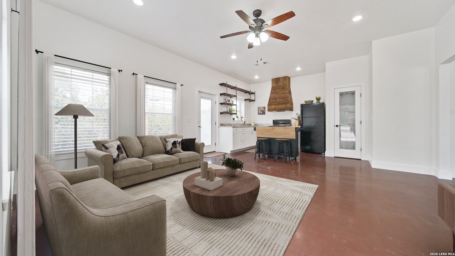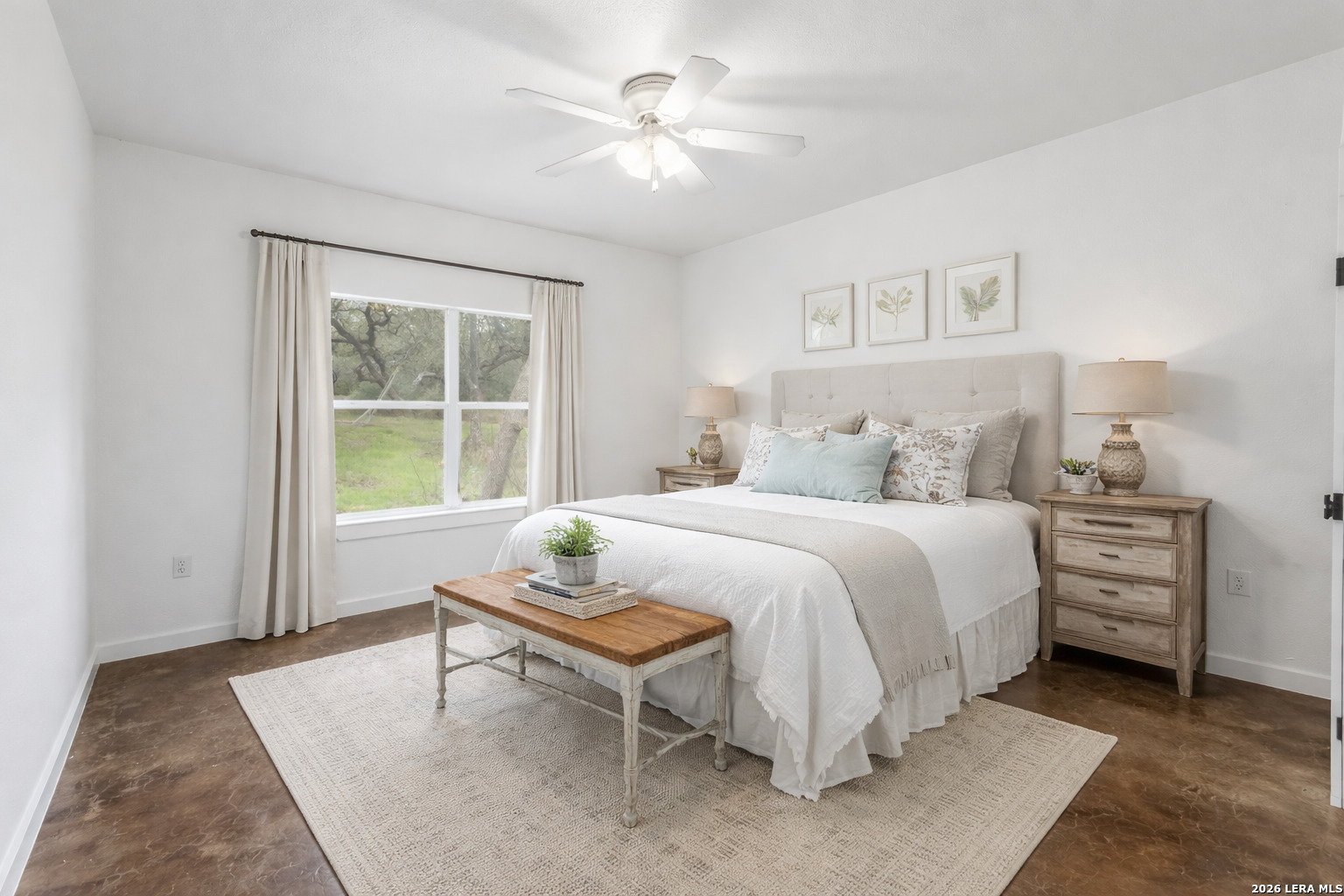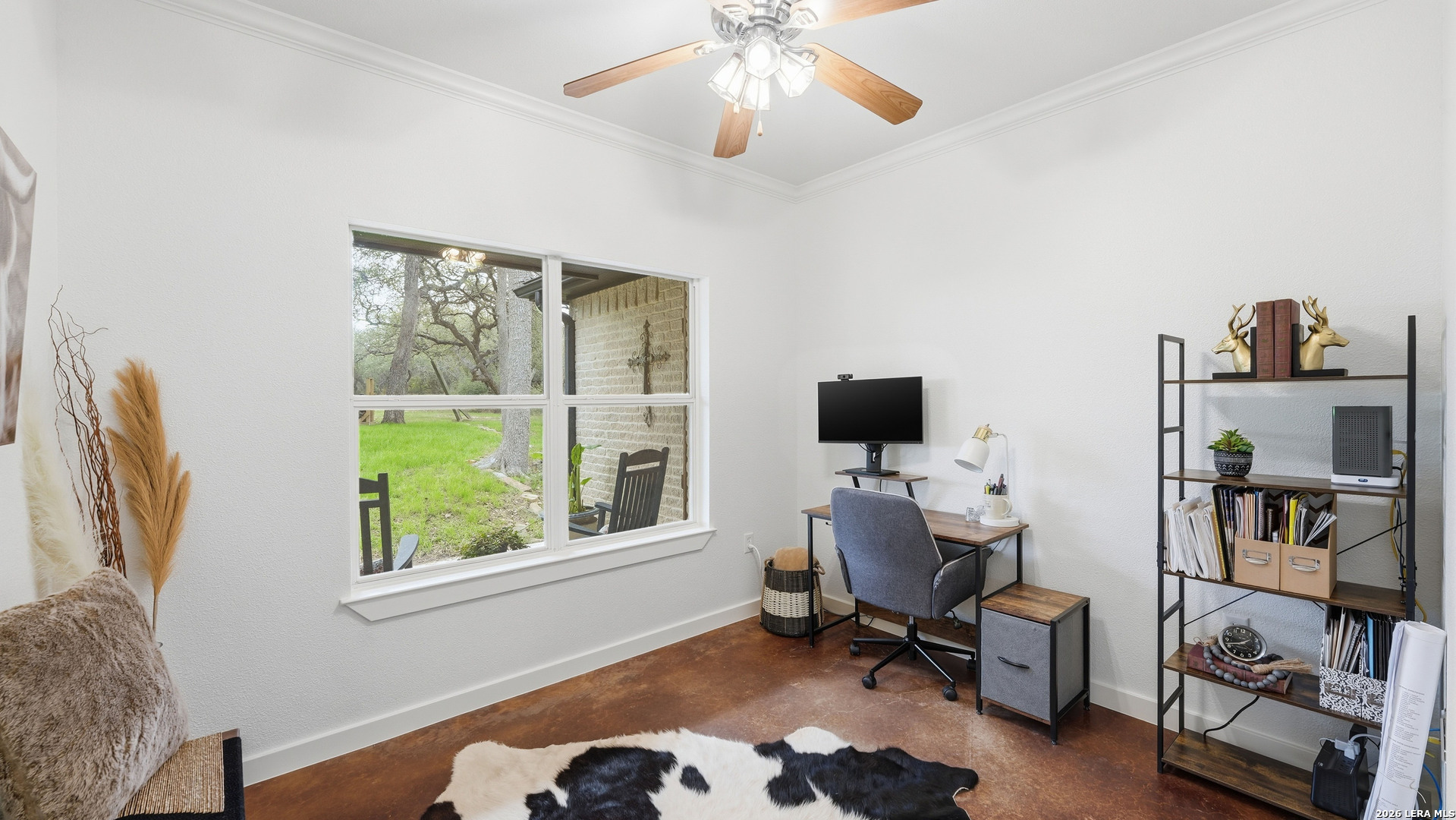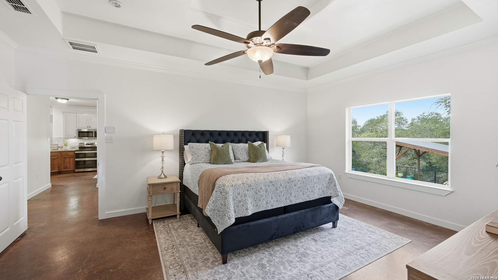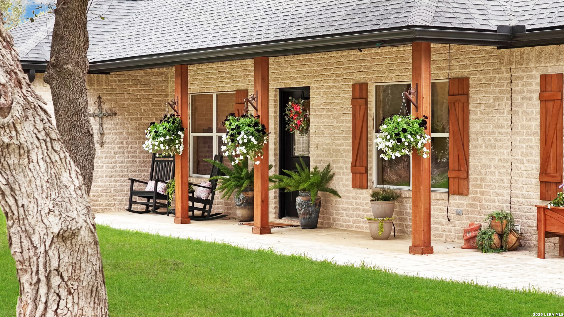 Experience the freedom and versatility of Hill Country living on 3.58 acres with no HOA and no restrictions, offering endless possibilities for use as a primary residence, vacation home, or short-term rental investment. This custom single-story home is freshly painted inside and thoughtfully designed to blend comfort, functionality, and outdoor living. The open-concept kitchen features granite countertops, custom cabinetry, and generous workspace, flowing seamlessly into a bright living room filled with natural light and anchored by a corner wood-burning fireplace. Additional spaces include a welcoming dining area and a dedicated home office, ideal for working from home or flexible living. The spacious primary suite provides a relaxing retreat with a garden tub, separate shower, dual vanities, and multiple closets. Stained concrete floors throughout offer durability and easy maintenance while complementing the home's Hill Country style. Large windows showcase the property's spectacular outdoor oasis, where an expansive covered patio overlooks a sparkling swimming pool with waterfall feature, cabana with refrigerator, kegerator, and high-bar seating, a separate sunbathing area, and a jacuzzi hot tub-perfect for entertaining or relaxing in total privacy. Mature oak trees, including nearly 100 oaks, surround the property and create a peaceful, secluded setting. The property is fully fenced, including the pool area and extended acreage. A dry-weather creek meanders through the back portion of the property, adding natural charm and the occasional opportunity to discover arrowheads. Ideal for multi-generational living or guest accommodations, the 800 sq ft detached garage apartment features an open-concept kitchen and living area, private bedroom and bath, and is fully ADA accessible with wide doorways and a walk-in shower. An additional two-car workshop space provides excellent room for hobbies, storage, or projects. Wildlife abounds with frequent sightings of white-tailed deer and axis deer, enhancing the true Hill Country experience. The property features a gated entrance, circular driveway, and abundant parking, with plenty of room for RV or boat storage. A private well serves the property. Conveniently located just minutes from Gruene, New Braunfels, Canyon Lake, and San Marcos, and close to local services including the nearby fire station, this unique property offers the perfect combination of privacy, flexibility, and accessibility.