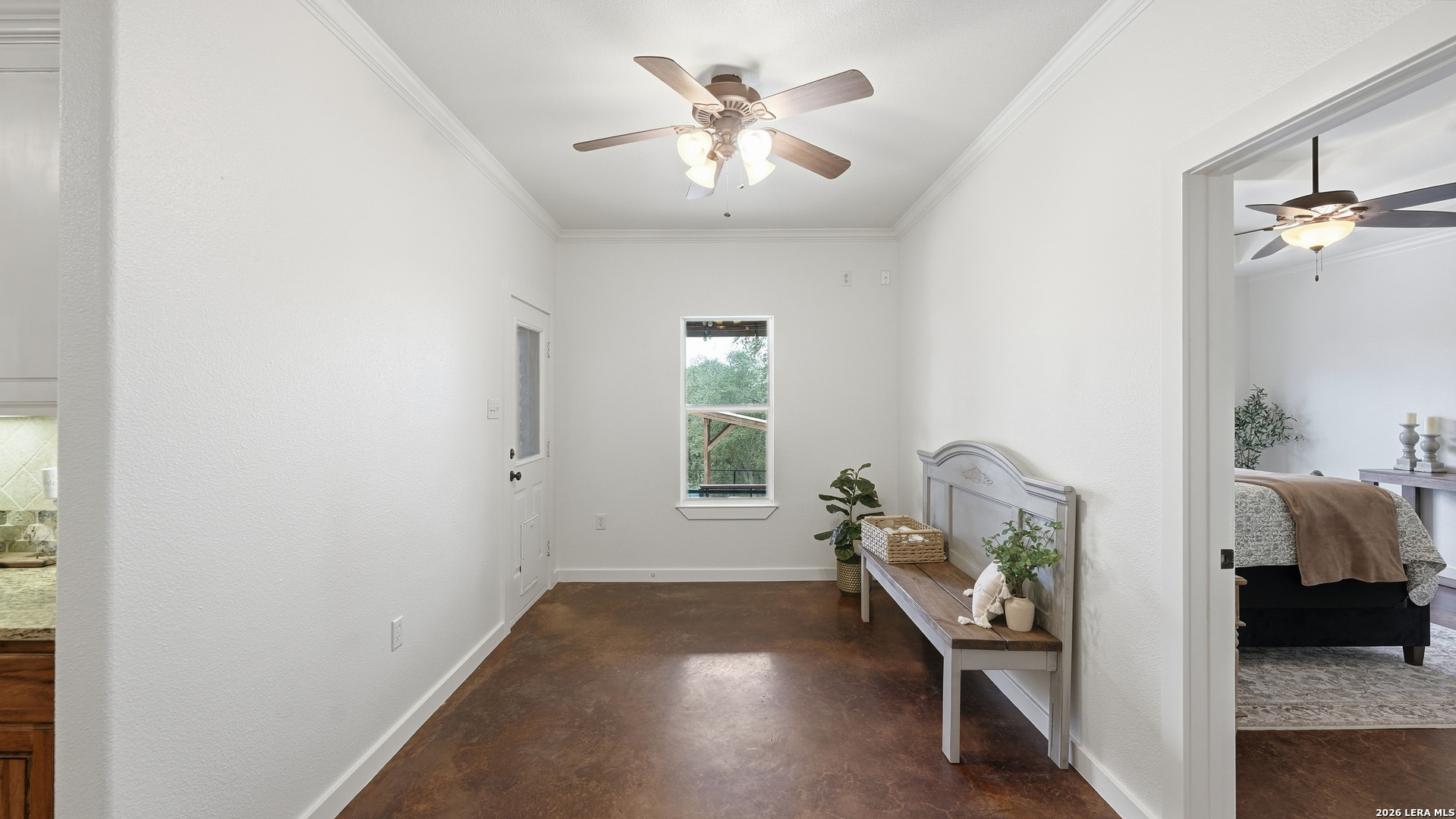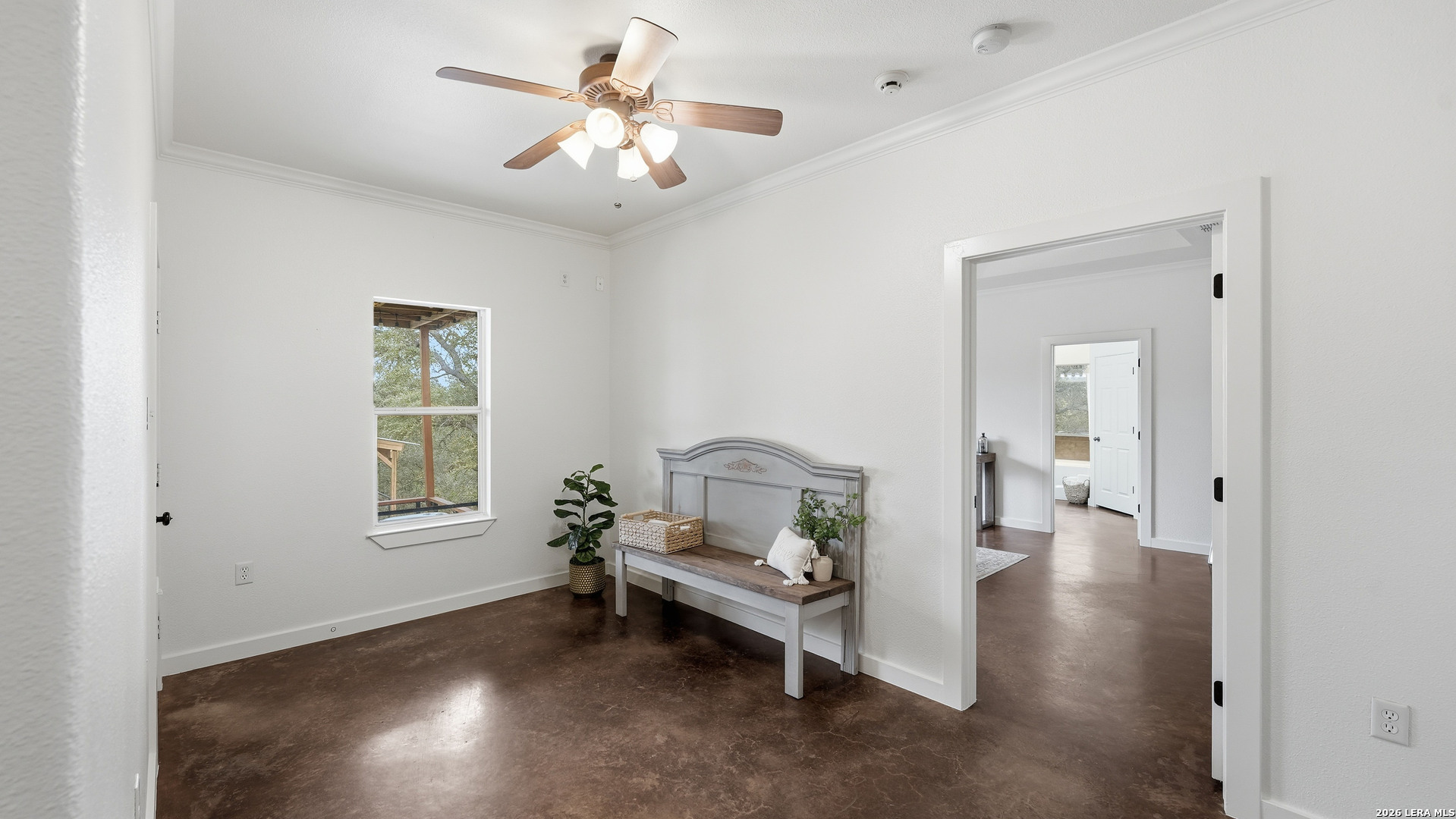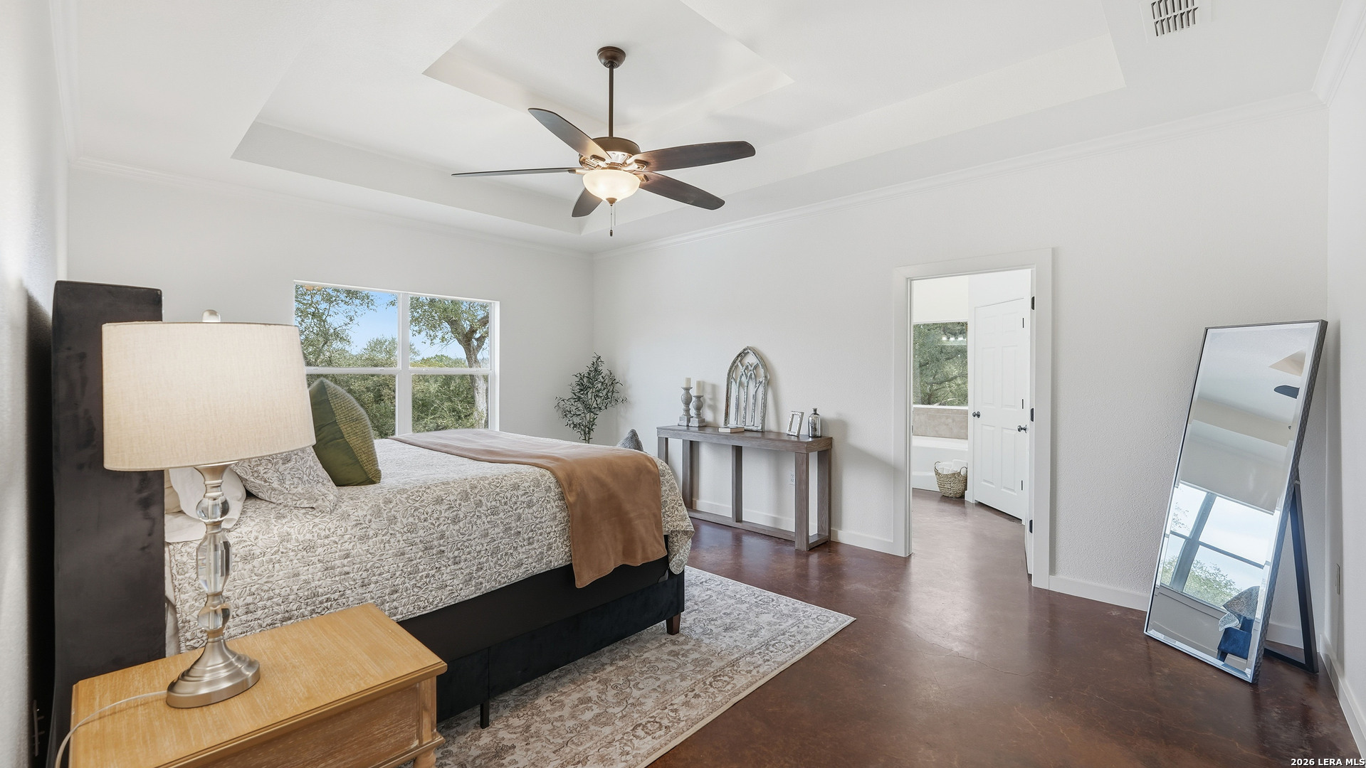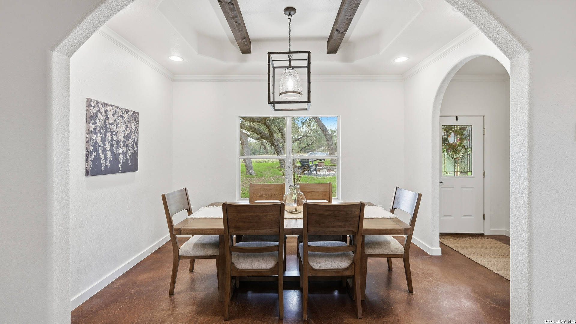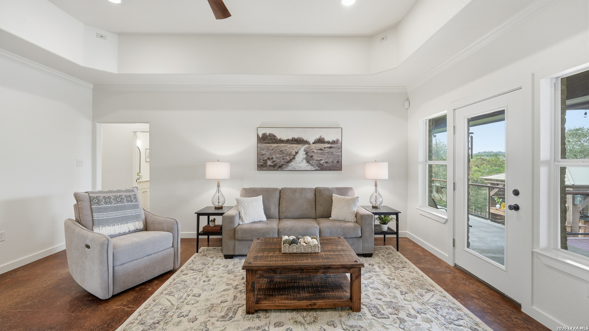 Experience the freedom and versatility of Hill Country living on 3.58 acres with no HOA and no restrictions, offering endless possibilities for use as a primary residence, vacation home, or short-term rental investment. This custom single-story home is freshly painted inside and thoughtfully designed to blend comfort, functionality, and outdoor living. The open-concept kitchen features granite countertops, custom cabinetry, and generous workspace, flowing seamlessly into a bright living room filled with natural light and anchored by a corner wood-burning fireplace. Additional spaces include a welcoming dining area and a dedicated home office, ideal for working from home or flexible living. The spacious primary suite provides a relaxing retreat with a garden tub, separate shower, dual vanities, and multiple closets. Stained concrete floors throughout offer durability and easy maintenance while complementing the home's Hill Country style. Large windows showcase the property's spectacular outdoor oasis, where an expansive covered patio overlooks a sparkling swimming pool with waterfall feature, cabana with refrigerator, kegerator, and high-bar seating, a separate sunbathing area, and a jacuzzi hot tub-perfect for entertaining or relaxing in total privacy. Mature oak trees, including nearly 100 oaks, surround the property and create a peaceful, secluded setting. The property is fully fenced, including the pool area and extended acreage. A dry-weather creek meanders through the back portion of the property, adding natural charm and the occasional opportunity to discover arrowheads. Ideal for multi-generational living or guest accommodations, the 800 sq ft detached garage apartment features an open-concept kitchen and living area, private bedroom and bath, and is fully ADA accessible with wide doorways and a walk-in shower. An additional two-car workshop space provides excellent room for hobbies, storage, or projects. Wildlife abounds with frequent sightings of white-tailed deer and axis deer, enhancing the true Hill Country experience. The property features a gated entrance, circular driveway, and abundant parking, with plenty of room for RV or boat storage. A private well serves the property. Conveniently located just minutes from Gruene, New Braunfels, Canyon Lake, and San Marcos, and close to local services including the nearby fire station, this unique property offers the perfect combination of privacy, flexibility, and accessibility.