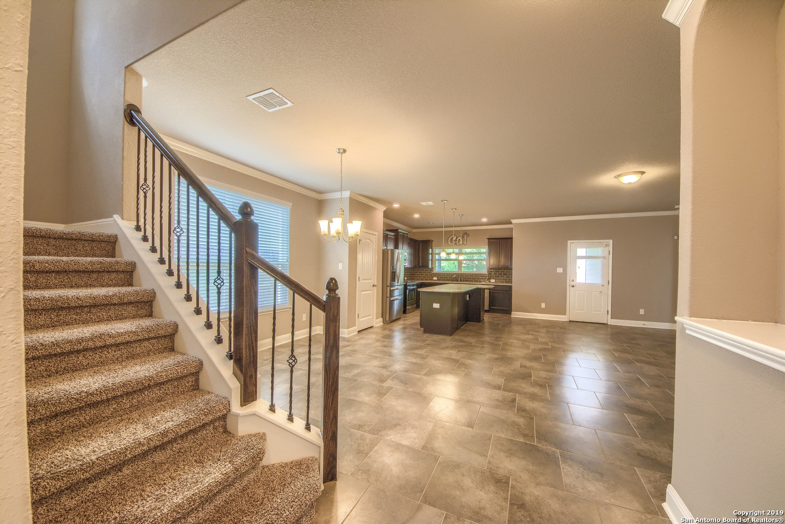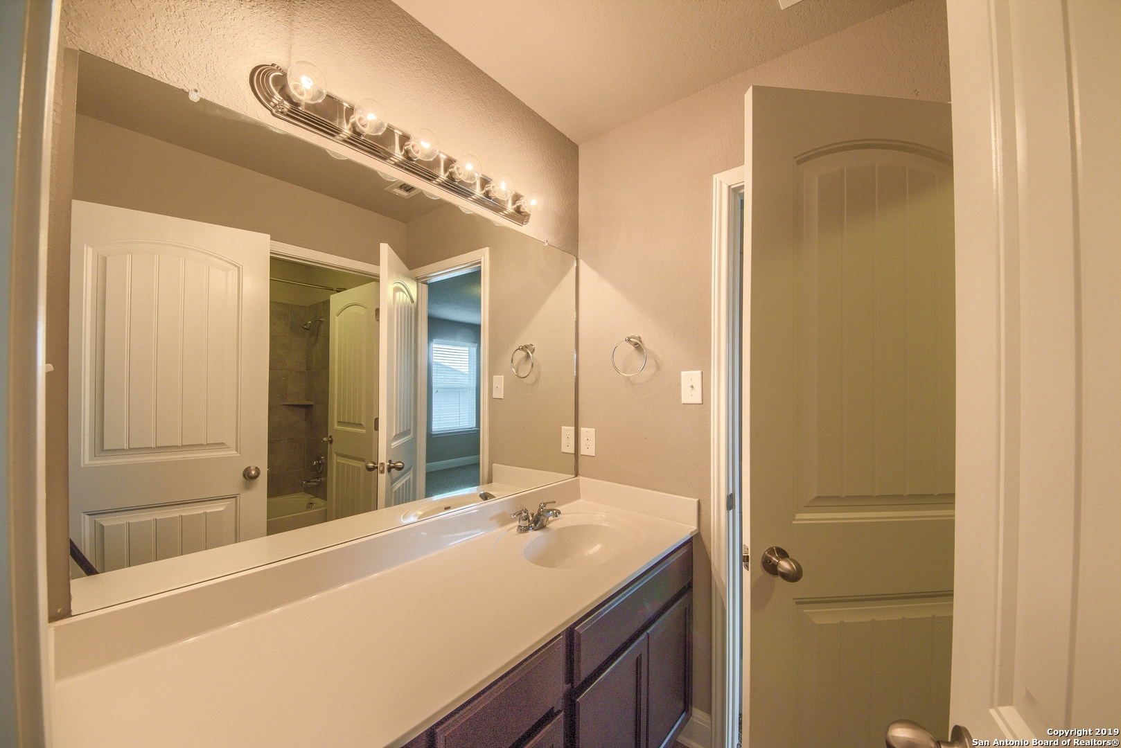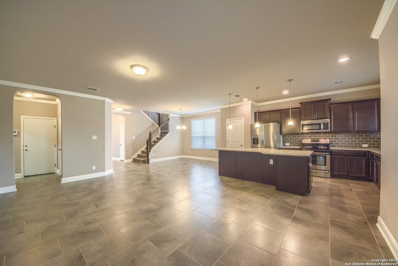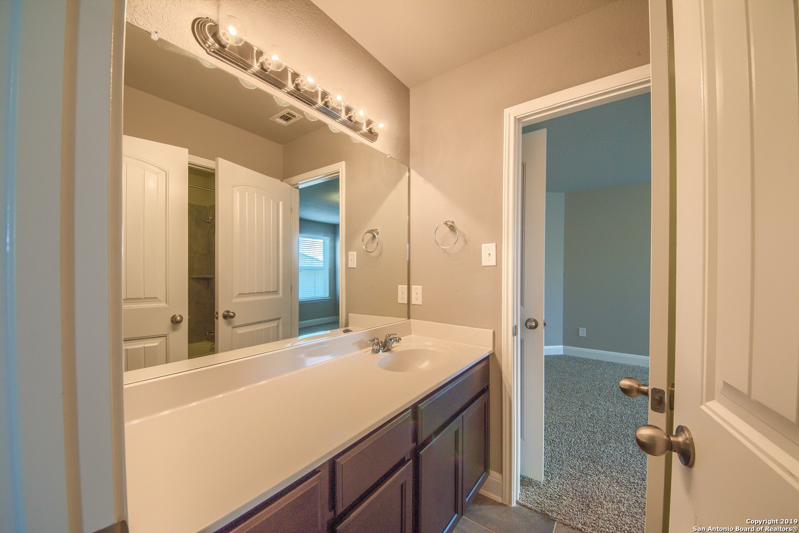 Welcome to this stunning rental home located in the desirable Alamo Ranch community! This spacious 4-bedroom, 3.5-bathroom property offers just over 2,900 square feet of comfortable living space and is available for immediate move-in perfect timing to settle in just before the Christmas holiday season. The primary suite is conveniently located downstairs and boasts generous dimensions (15x14), along with a large spa-like bathroom featuring dual vanities, a soaking tub, a separate shower, and a walk-in closet designed for maximum storage and organization. Upstairs, you'll find all secondary bedrooms, each offering ample space and comfort. The second floor also provides multiple living areas, including a versatile game room and a dedicated media room ideal for family movie nights, entertaining guests, or simply relaxing after a long day. The open-concept kitchen seamlessly connects to the dining and living areas, making it perfect for both everyday living and hosting gatherings. High ceilings and natural light enhance the welcoming atmosphere throughout the home. Step outside and enjoy a large covered patio, an excellent spot for outdoor entertaining, weekend barbecues, or relaxing with family and friends.