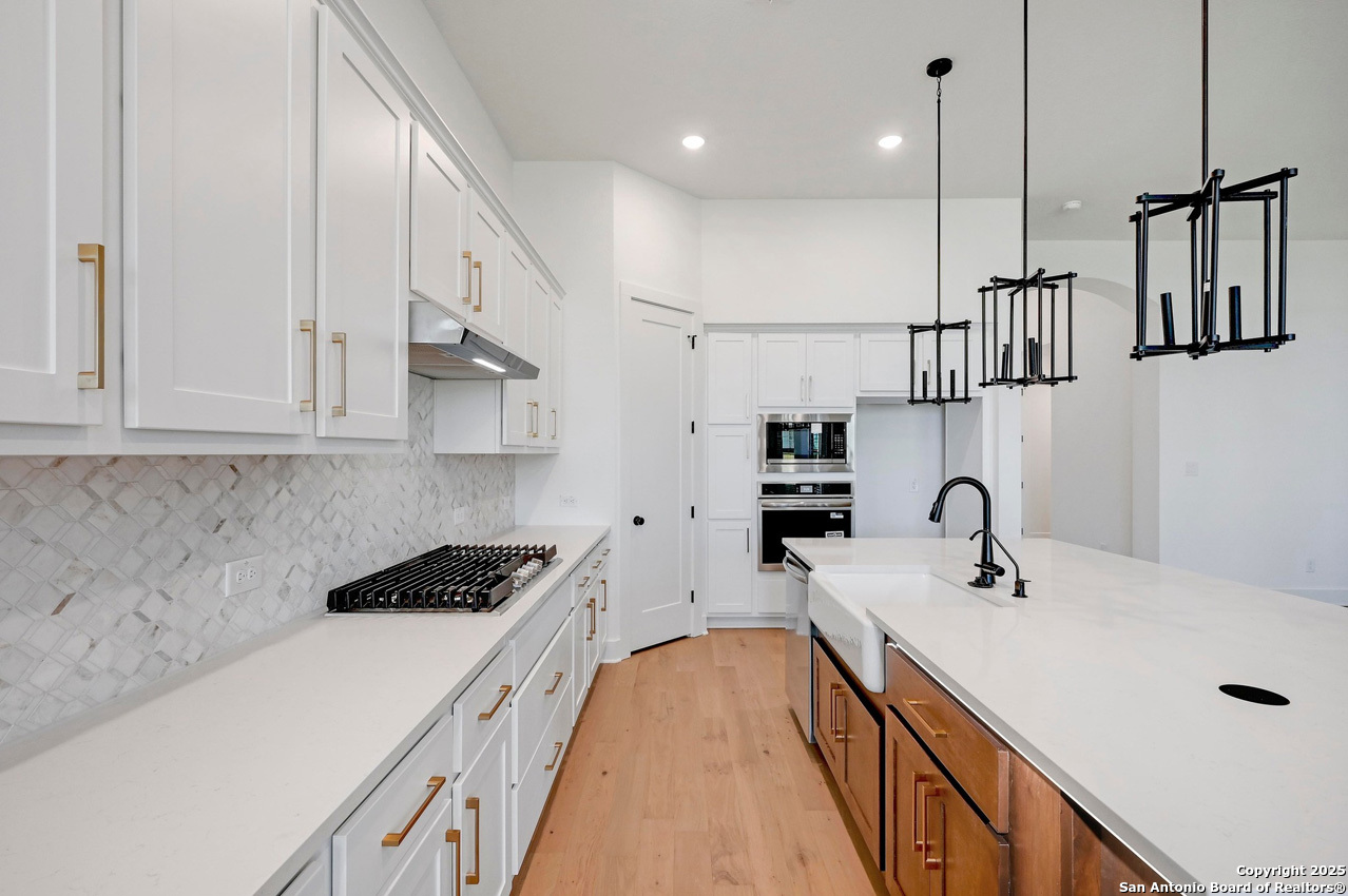 The Amberley plan is a gem with a super-sized covered patio for outdoor relaxation! This beautiful 4-bedroom home has lovely details with wood flooring in common areas, white kitchen cabinets with contrasting island, farmhouse sink, 8' interior doors, high ceilings, gas cooking, brick & stone front exterior, freestanding tub and mud set primary shower. Call for more details!
