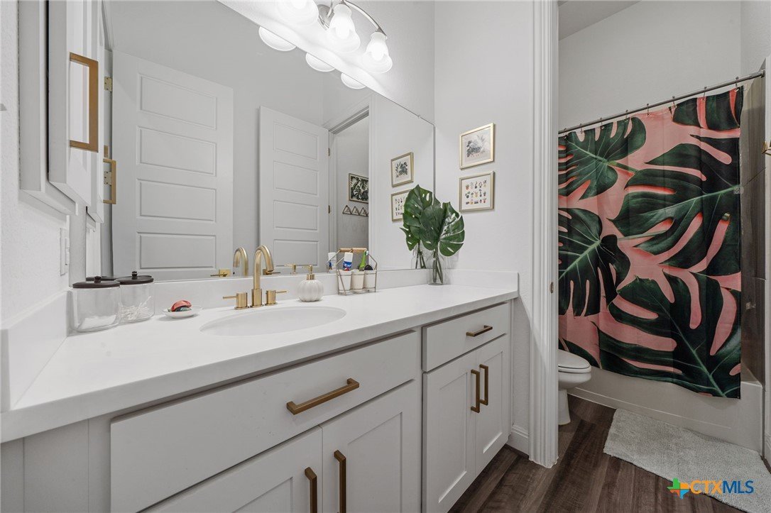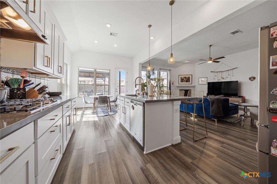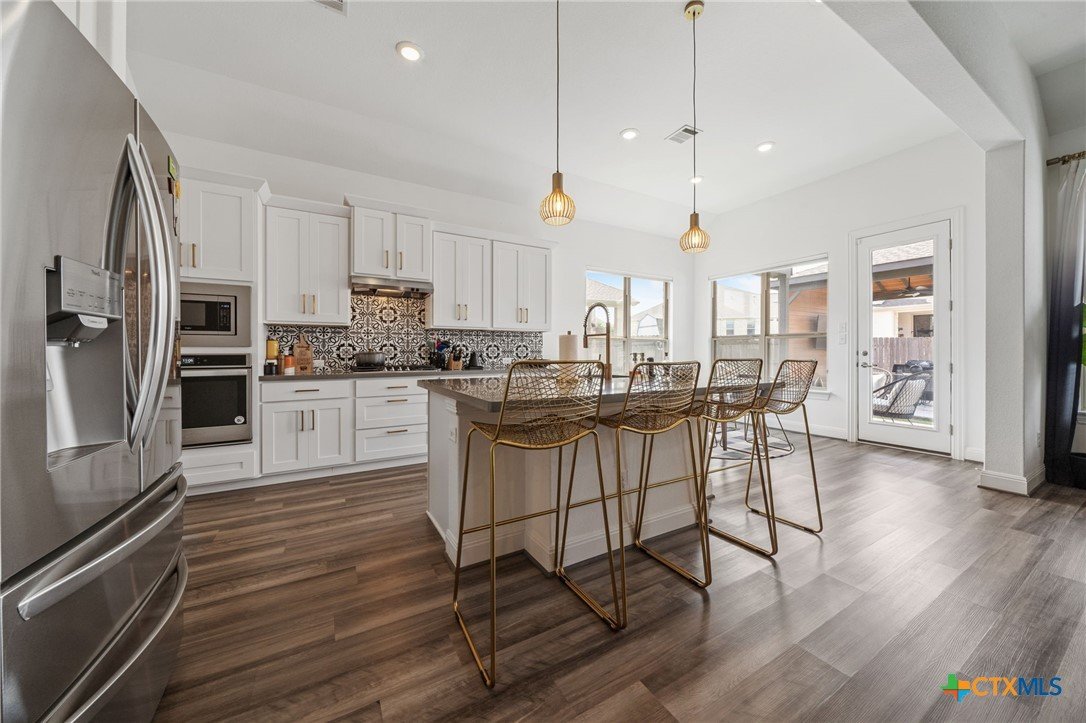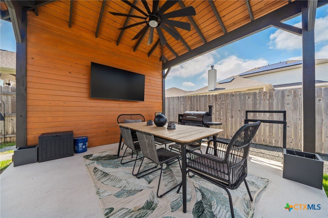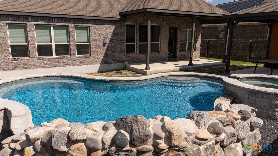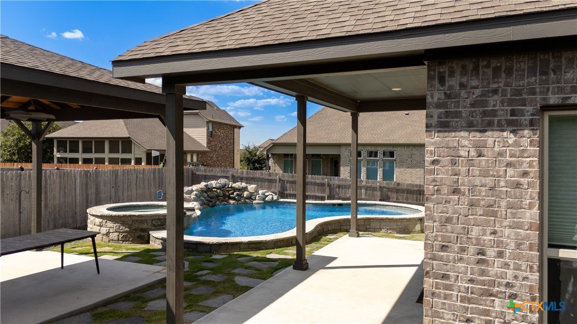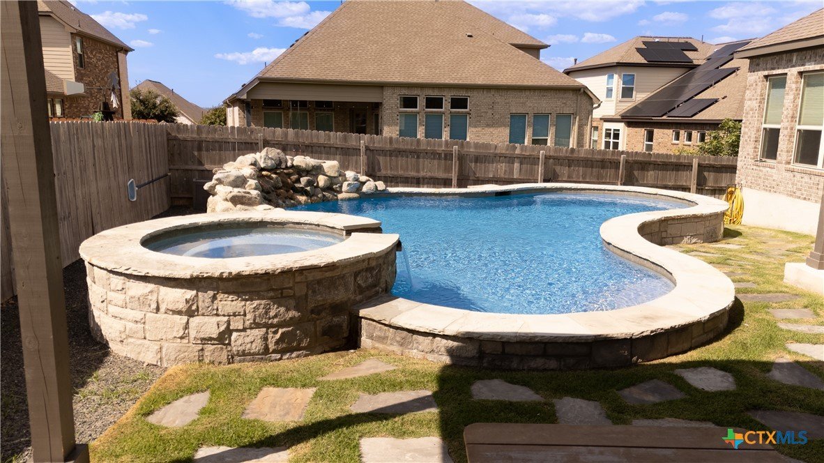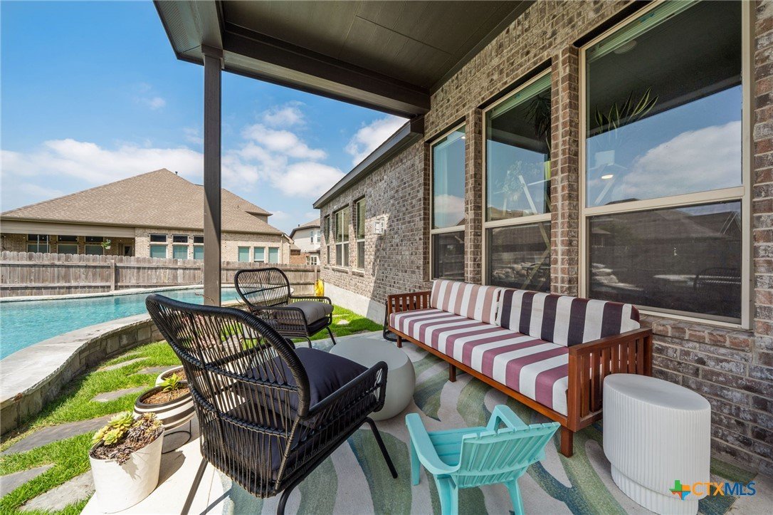 Exceptional Custom Home with Pool, Spa & Premium Upgrades | 5767 Toscana Trace, Round Rock, TX Experience elevated living in this stunning 2,690 sq ft custom-built home featuring 14 foot ceilings, 3 spacious bedrooms, 2 luxurious bathrooms, a dedicated office, and a media room—perfectly designed for modern comfort and entertaining. From the moment you step inside, you’ll notice the upgraded tile backsplash in the kitchen and custom tile shower in primary bath, remote-controlled custom shades, and a thoughtfully designed custom primary closet. The open-concept kitchen flows seamlessly into the living area that has beautiful corner gas fireplace and is ideal for both everyday living and hosting guests. Large windows adorn the whole back of the house to enjoy the view of the spa like backyard. Outside, your own private oasis awaits: a spa-inspired backyard with a custom-designed heated and cooled pool, hot tub, pavilion, and lush landscaping—all situated on a premium lot for added privacy and space. The media room is wired for sound, and the home includes a whole-home generator, water softener, washer, dryer, and refrigerator—truly move-in ready. Every detail has been carefully curated to offer both luxury and peace of mind. Subdivision has two pool, playgrounds, parks and walking paths. Located in a prime Round Rock location with easy access to top-rated schools, dining, shopping, and major roadways. Don’t miss this one-of-a-kind property—schedule your private tour today!