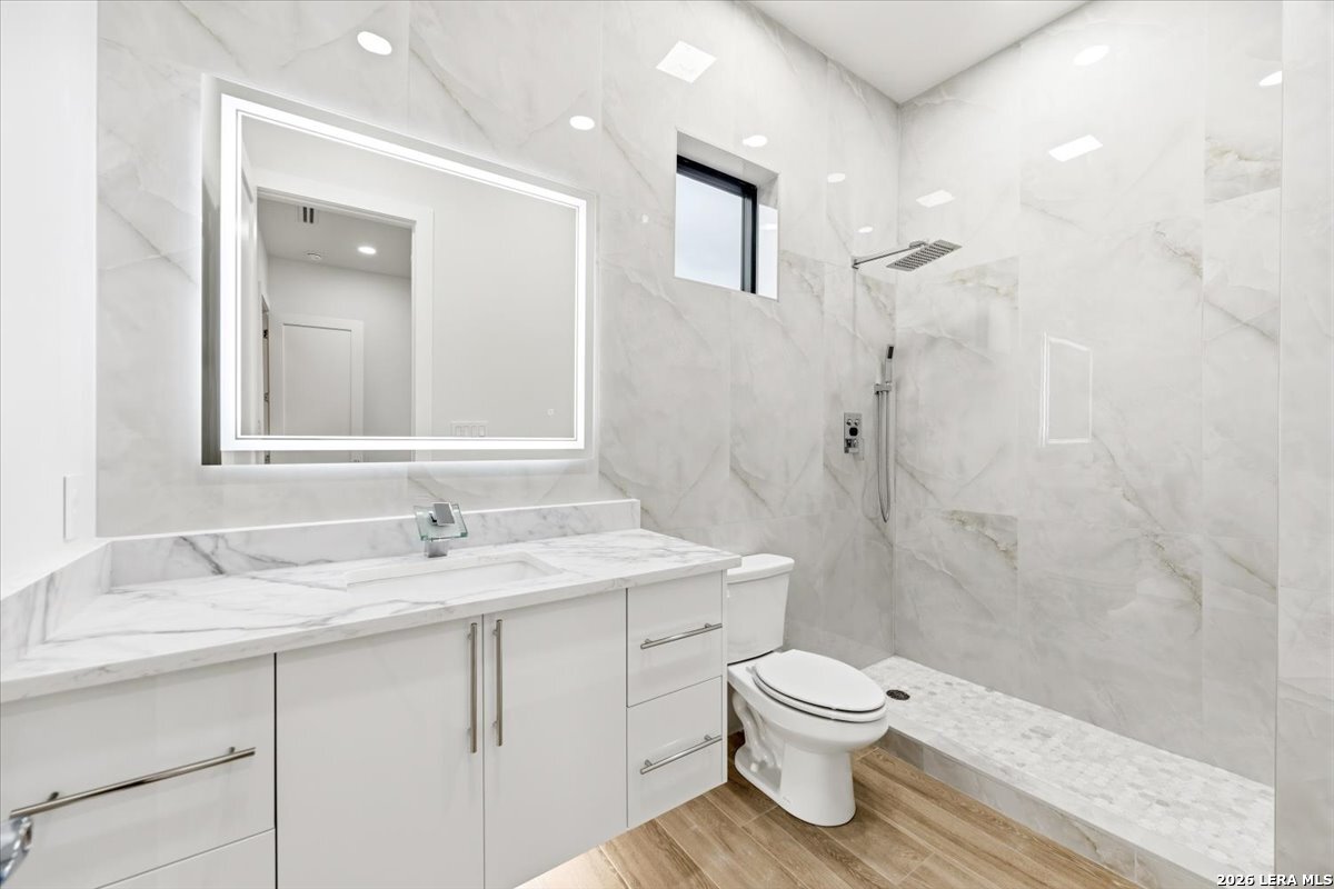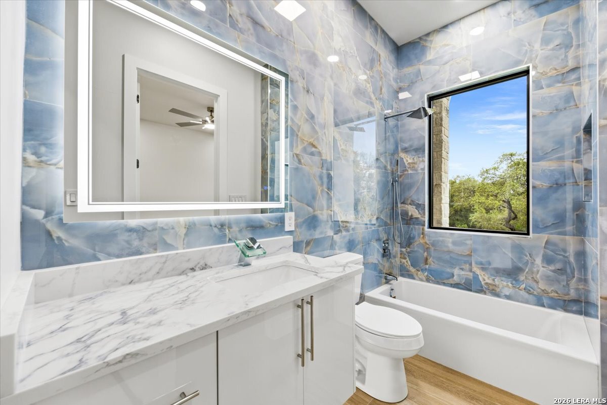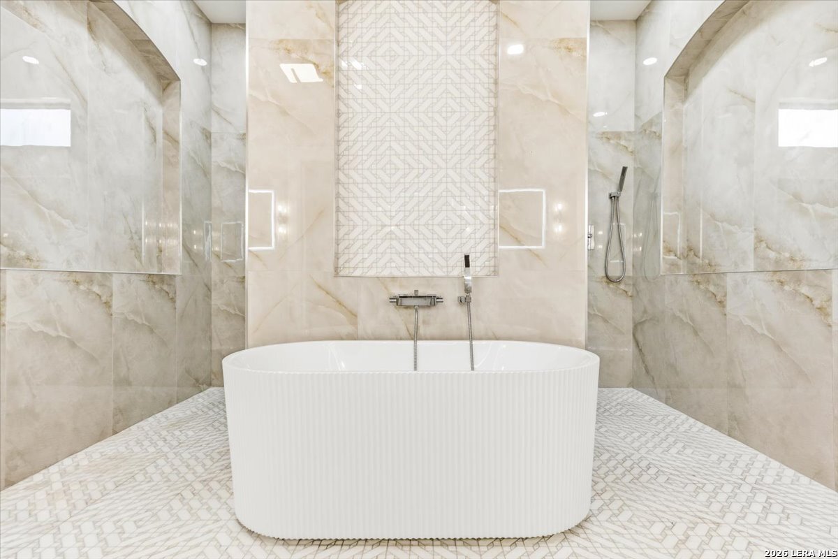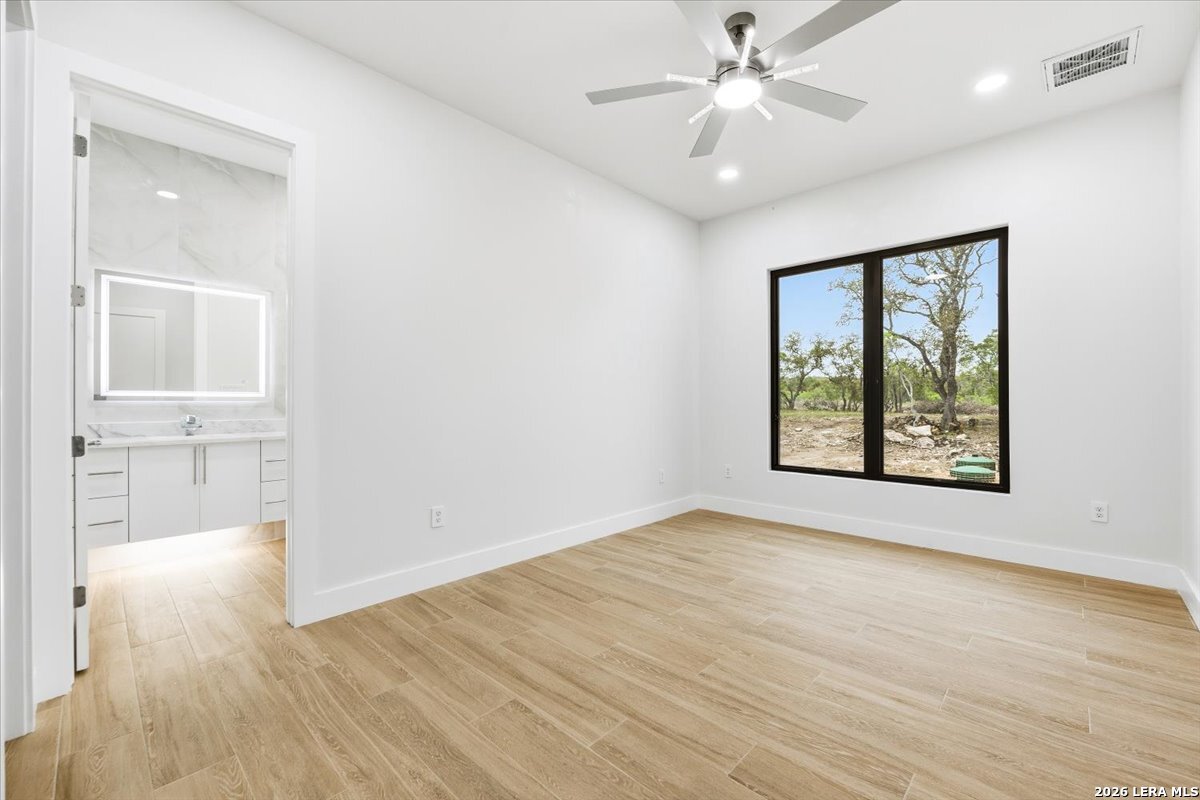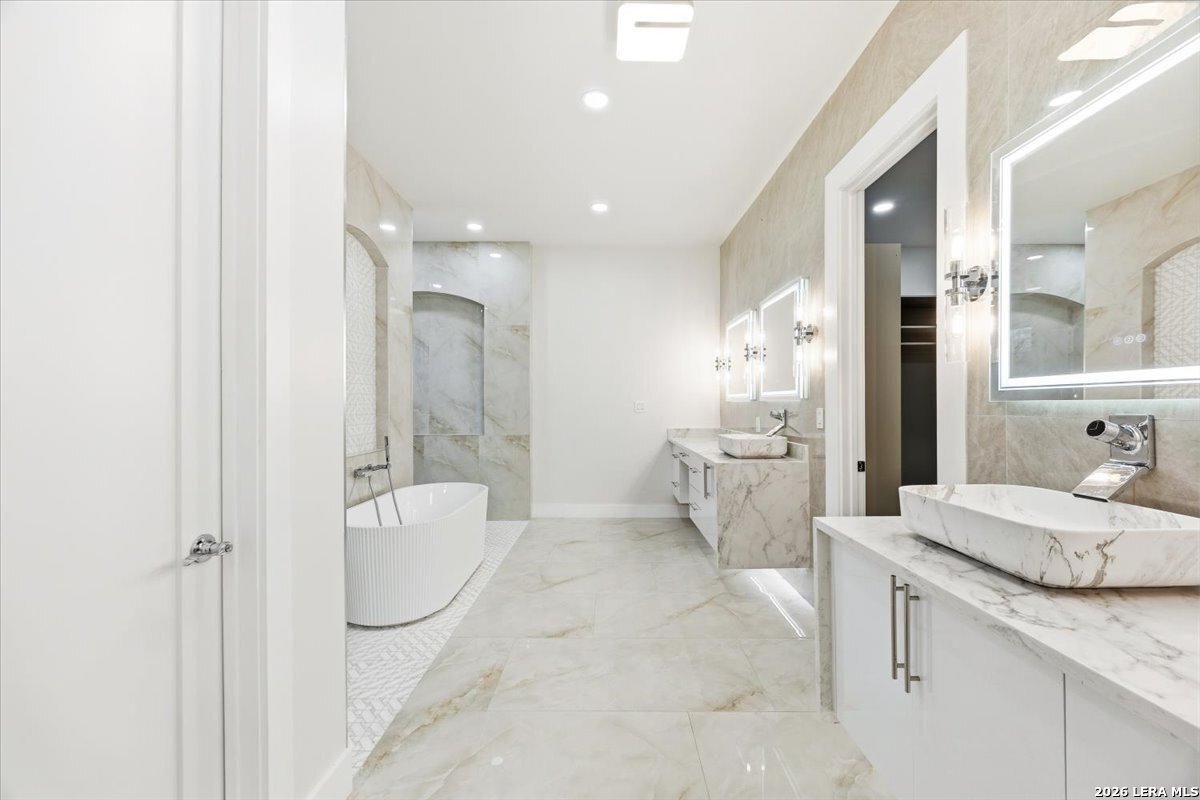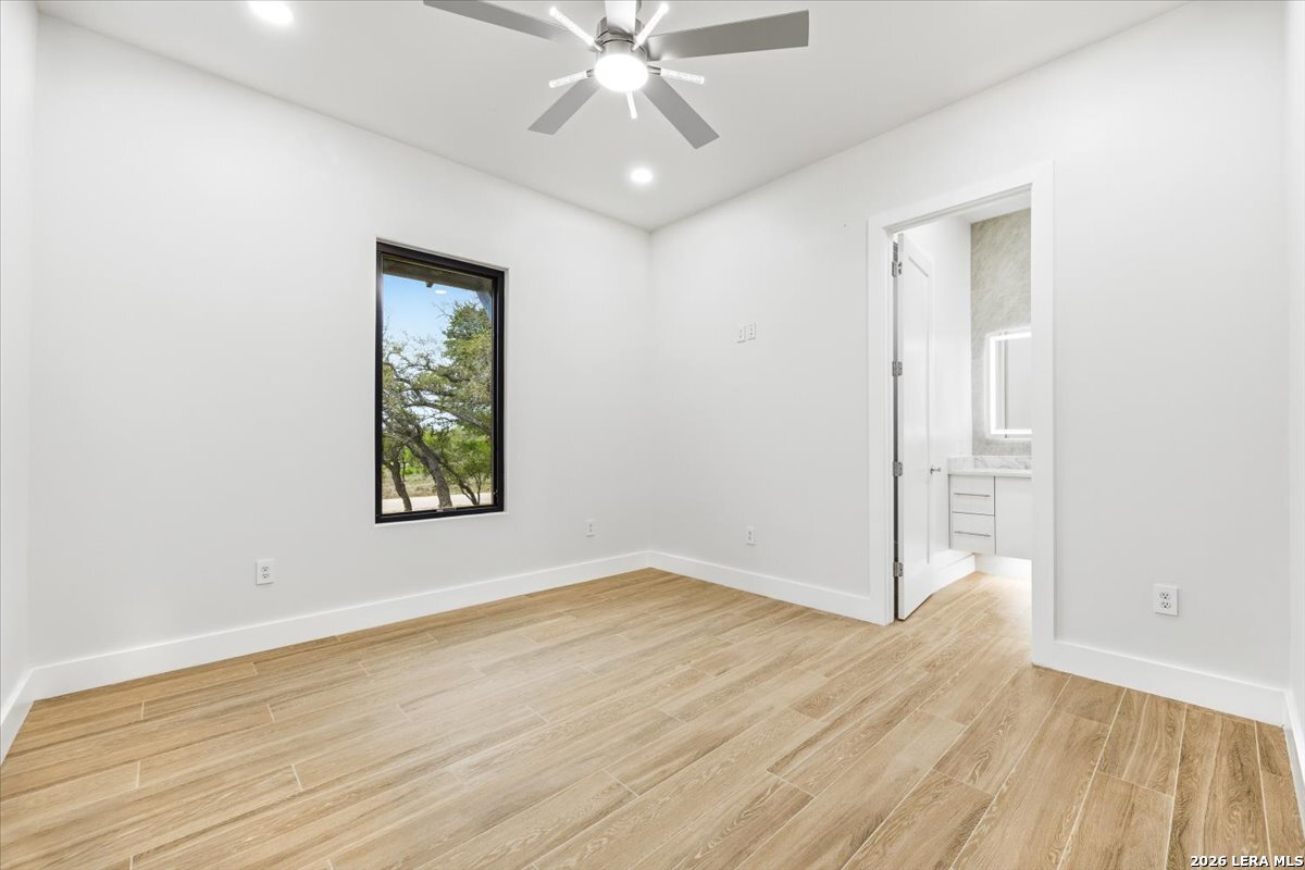 Modern Hill Country Estate | One-Story | Metal Roof | 1.5 Acres | Gated Located in prestigious Ridgeview Ranch, this Aurora Lux custom home offers 3,656 sq ft of elevated single-story living on a private 1.5-acre gated homesite. Designed with 4 bedrooms, 4.5 baths, a study, and a media/game room with bar, it blends refined design with everyday comfort. A grand pivot door opens to a dramatic living area featuring a statement coffered ceiling and expansive sliding glass doors that create seamless indoor-outdoor living. The covered patio with outdoor kitchen is ideal for entertaining. The chef's kitchen showcases an oversized island, premium Forno appliances, 48" gas range, butler's pantry, and striking two-tone cabinetry with warm wood accents. The private primary suite offers a stone feature wall, floating ceiling detail, fireplace, and a spa-like bath with dual vanities, walk-in shower, and freestanding tub. All secondary bedrooms include en-suite baths and walk-in closets. Additional features: 3-car side-entry garage, metal roof, dual HVAC systems, two water heaters, and a spacious backyard with room for a pool.