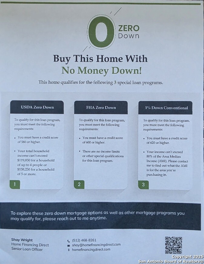 As a homeowner, there are several loan options that will allow you to Buy This Home with $0 Down! Why Rent When You Can Own With $0 Down? Stop Waiting & Start Owning - No Down Payment Needed! This is the Canyon Lake home you've been waiting for! Built by award-winning Williams-Hirsch Custom Builders of New Braunfels, this stunning home offers modern finishes, an amazing floor plan, and a peaceful setting-all just minutes from Boat Ramp 5. Step inside to an open-concept living space filled with natural light. The gourmet kitchen features a large island, white cabinetry, a single-basin sink, a 5-burner stove, built-in microwave, and dishwasher. The gorgeous blue tile backsplash adds a perfect touch, inspired by the nearby lake. Built-in bookshelves and a stylish half-bath complete the main living area. The primary suite on the main level is huge and luxurious, offering a spa-like bathroom with double sinks, a stand-alone shower, and a spacious walk-in closet with built-in shelves. Upstairs, you'll find two oversized bedrooms, both large enough for king-sized beds, along with a small central loft and a full bathroom. Additional features include high-quality wood-look laminate flooring throughout-no carpet!-as well as stylish tile accents in the bathrooms and laundry room. Tall ceilings, ceiling fans, and large windows allow for plenty of natural light. Surrounded by nature, this home is the perfect place to relax and watch the deer roam from your porch. Blending modern elegance with Hill Country charm, this home is truly a must-see. And, if you are looking for an investment, this property was previously used as a successful short-term rental! Schedule your showing today!
