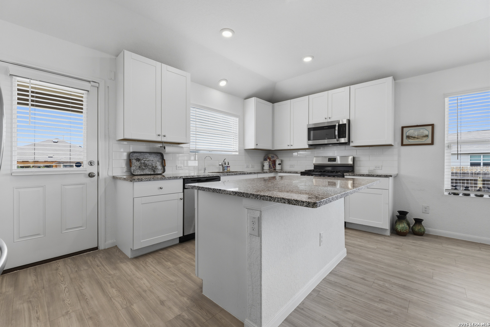 Located in the highly desirable Bulverde area, this well-maintained one-story home sits on a large corner lot and offers a functional open floor plan with 4 bedrooms /2 bathrooms; ideal for comfortable everyday living. The interior features a bright, welcoming layout with neutral finishes and a seamless flow between the living, dining, and kitchen areas. The kitchen is equipped with modern appliances, ample cabinetry, and a center island with breakfast bar, making it perfect for casual meals, family time, and entertaining. The private primary suite includes a walk-in shower and dual vanities, creating a comfortable retreat at the end of the day. Three additional bedrooms provide flexibility for guests, a home office, or growing household needs. Step outside to a manageable backyard with space to relax, play, or host gatherings. The corner lot offers added privacy and curb appeal. Zoned to highly desired, award-winning schools, this home is a great fit for buyers looking to settle into a strong community with long-term value. Conveniently located near shopping, dining, and major routes, you'll enjoy the balance of quiet suburban living with easy access to everyday essentials.