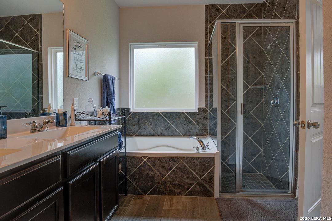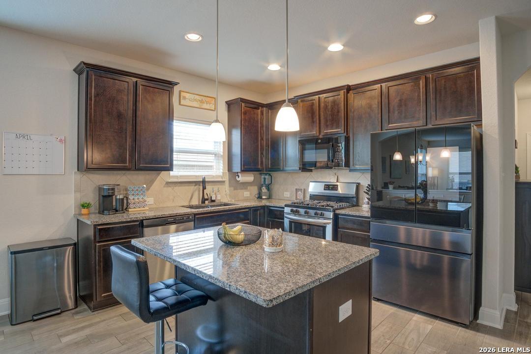 Popular Single-Story Opportunity in Riverstone at Alamo Ranch! Welcome to this beautifully maintained, move-in ready home located in the highly desirable Alamo Ranch community. As you step inside, you're greeted by a bright and open floor plan filled with natural light and inviting living spaces. The front of the home features a dedicated study with elegant glass double doors-perfect for a private home office or flex space. The heart of the home is the gorgeous kitchen, complete with granite countertops, a large island, stainless steel appliances, and a gas range-ideal for both everyday cooking and entertaining. The adjoining dining area features a charming box window seat, adding both character and a cozy spot to enjoy natural light. The kitchen flows seamlessly into the dining and living areas, creating an open-concept design that feels warm, functional, and connected. The spacious primary suite offers a relaxing retreat featuring bay windows that bring in beautiful natural light. The en-suite bath includes dual vanities, a separate garden tub and shower, and a generous walk-in closet. Additional highlights include: Three bedrooms, two full baths, Water softener included, Covered backyard patio, and Full sprinkler system in front and back yard Enjoy all that Alamo Ranch has to offer-community pool, playground, basketball court, and great spaces for neighborhood gatherings. Conveniently located near Loop 1604 and Highway 151, with easy access to shopping, dining, and entertainment. This one is truly a must-see-schedule your private showing today!