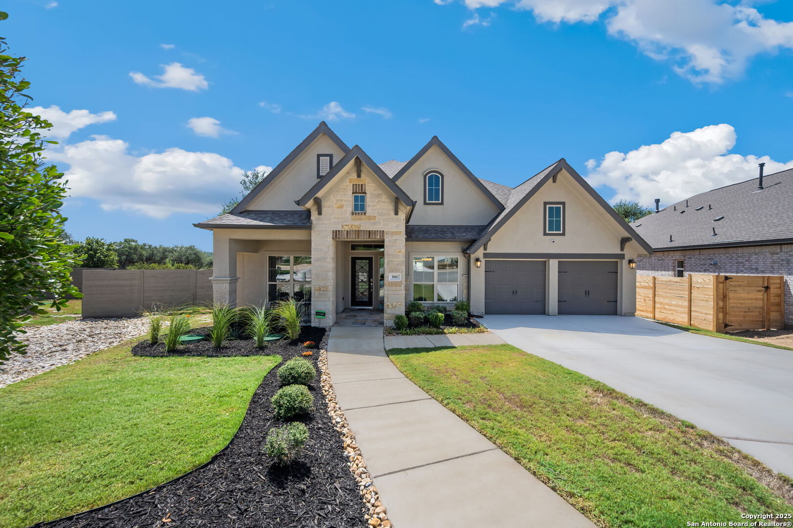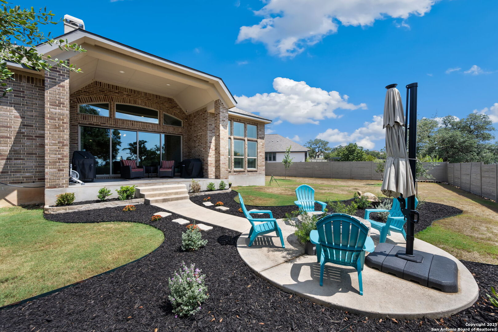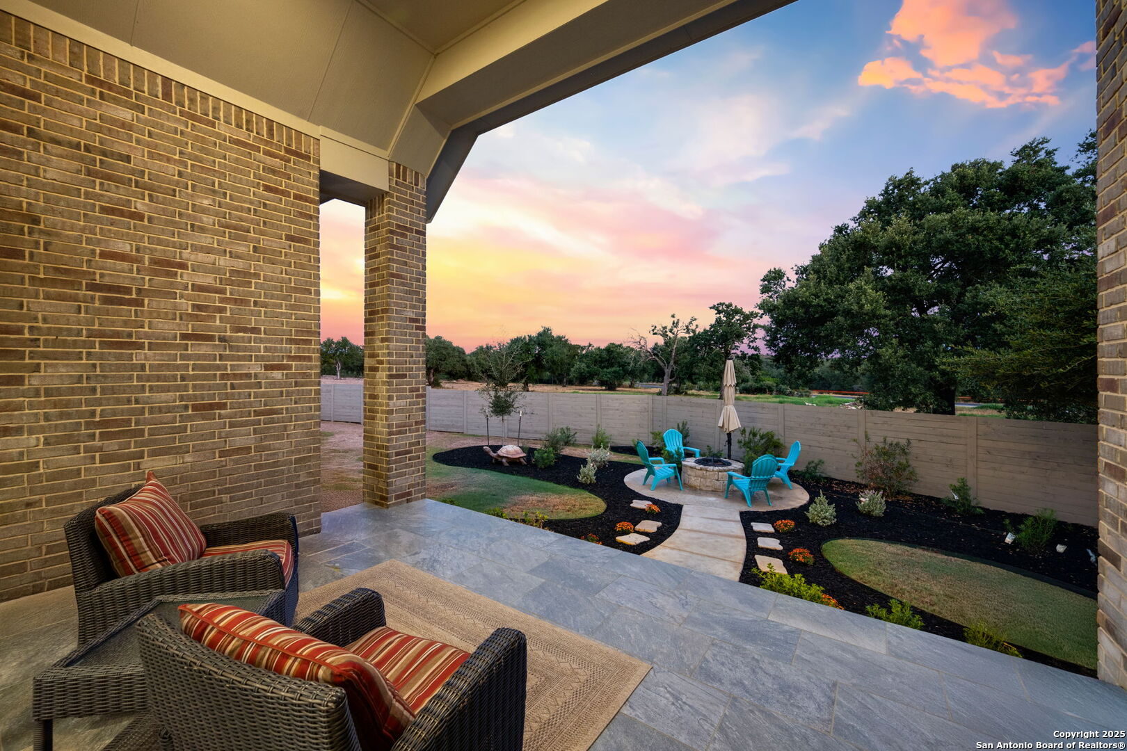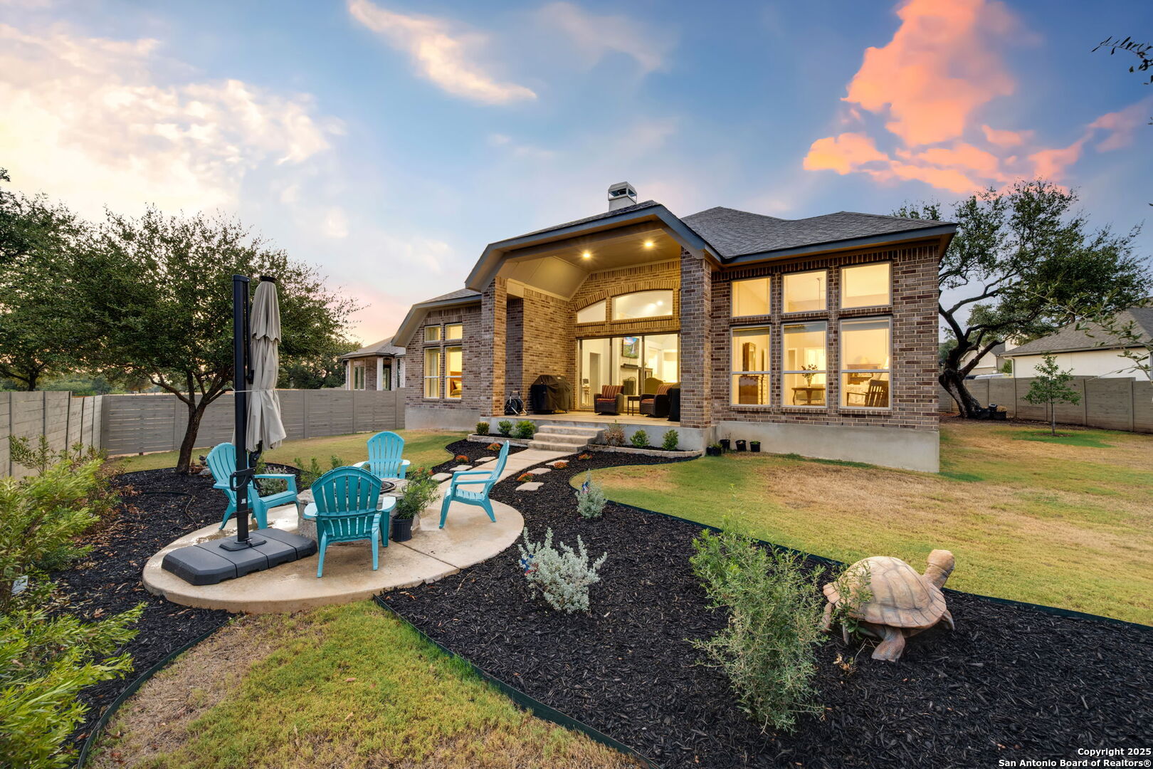 Located in the highly sought-after Grove section of Vintage Oaks, this 2017 Perry Home offers 3,491 square feet of thoughtfully designed living space with 4 bedrooms, 3 bathrooms, and exceptional finishes throughout. Step inside to an open-concept layout that effortlessly connects the well-appointed kitchen, dining, and living areas. The gourmet kitchen features a large center island with bar seating, abundant cabinet space, and sleek finishes - perfect for entertaining or everyday living. The spacious living room is highlighted by oversized windows that flood the space with natural light and frame peaceful backyard views. The home also includes a separate formal dining room for hosting gatherings, as well as a dedicated office that's ideal for working from home. The generous primary suite is a private retreat with a luxurious bath featuring a soaking tub, separate shower, dual vanities, and a walk-in closet. Step outside to your backyard oasis, complete with mature trees, a built-in firepit, and a full sprinkler system - an inviting space to enjoy Hill Country evenings. Enjoy all the incredible amenities Vintage Oaks has to offer, including multiple pools, walking trails, fitness center, clubhouse, and more.