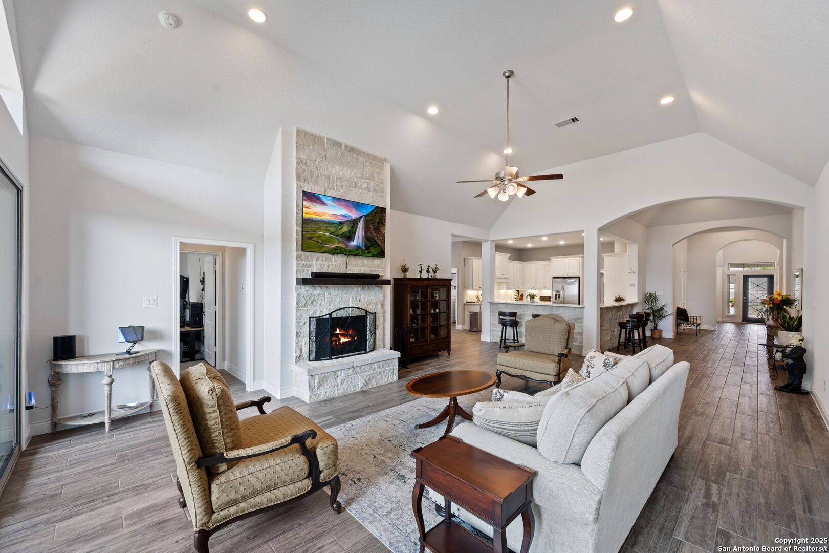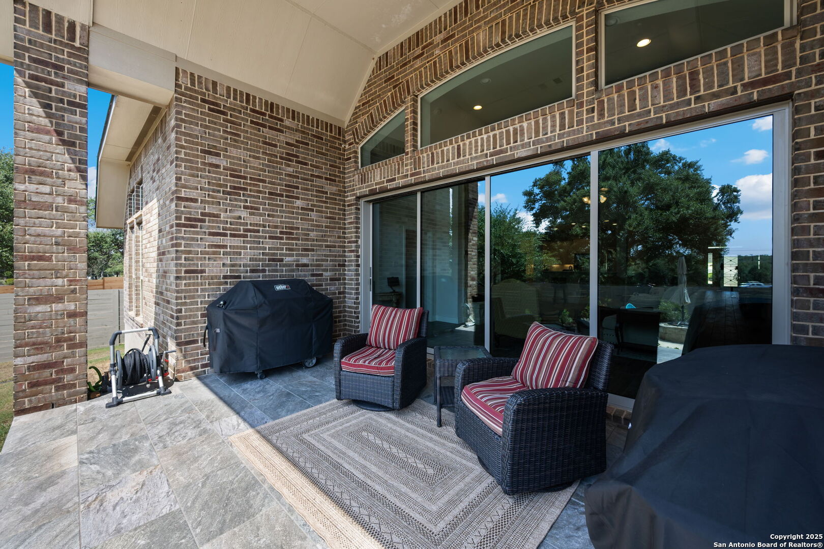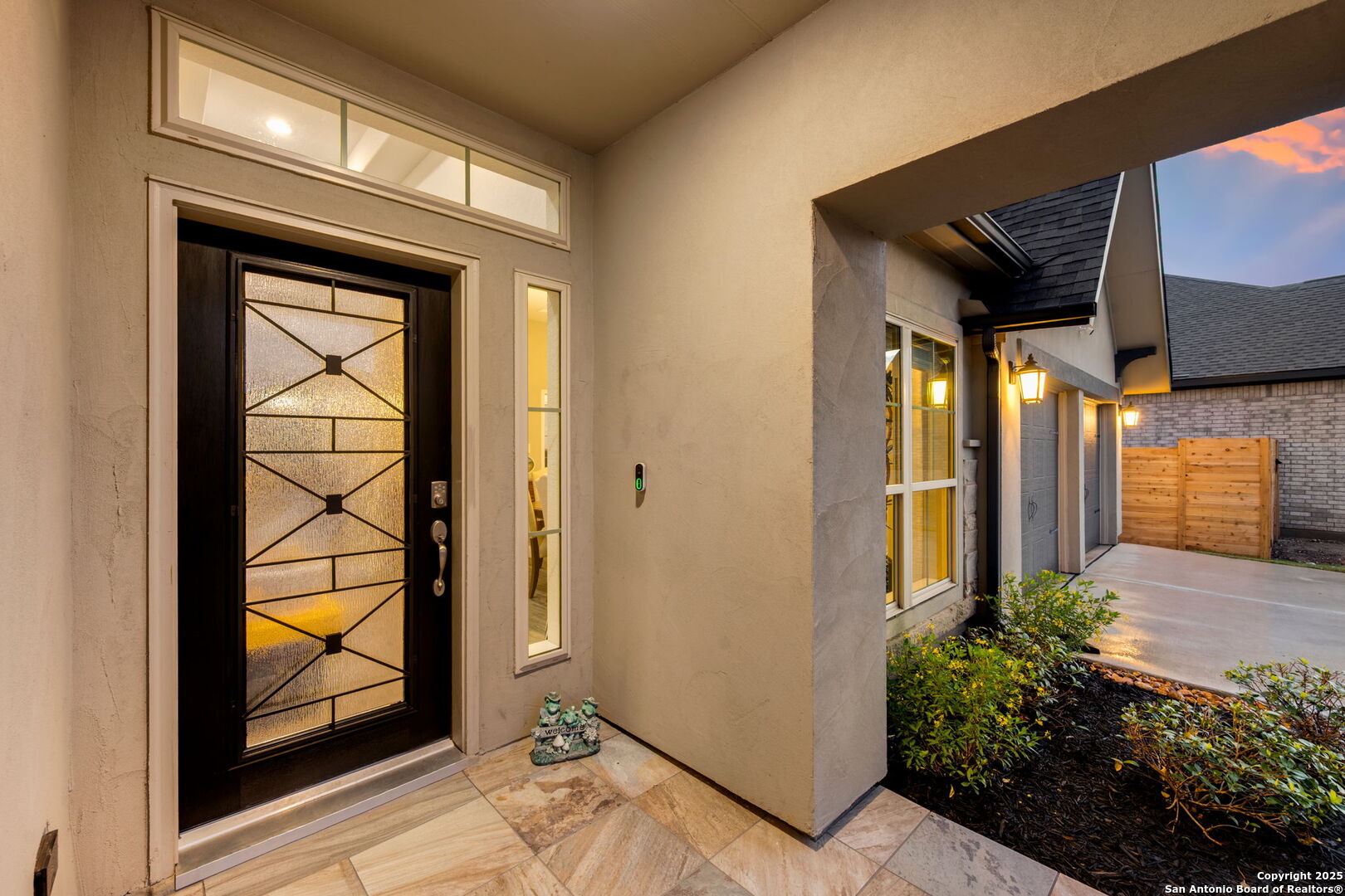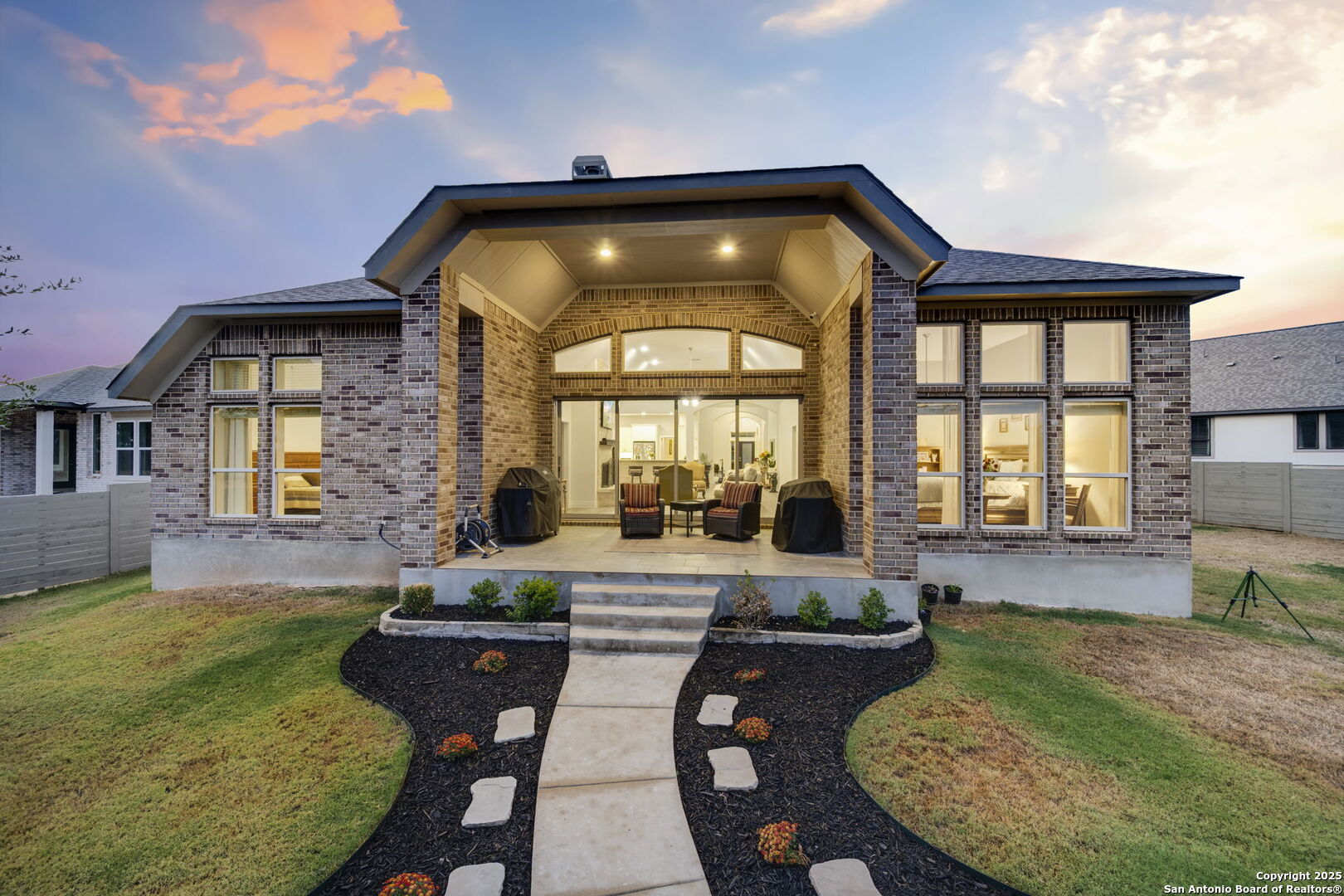 Located in the highly sought-after Grove section of Vintage Oaks, this 2017 Perry Home offers 3,491 square feet of thoughtfully designed living space with 4 bedrooms, 3 bathrooms, and exceptional finishes throughout. Step inside to an open-concept layout that effortlessly connects the well-appointed kitchen, dining, and living areas. The gourmet kitchen features a large center island with bar seating, abundant cabinet space, and sleek finishes - perfect for entertaining or everyday living. The spacious living room is highlighted by oversized windows that flood the space with natural light and frame peaceful backyard views. The home also includes a separate formal dining room for hosting gatherings, as well as a dedicated office that's ideal for working from home. The generous primary suite is a private retreat with a luxurious bath featuring a soaking tub, separate shower, dual vanities, and a walk-in closet. Step outside to your backyard oasis, complete with mature trees, a built-in firepit, and a full sprinkler system - an inviting space to enjoy Hill Country evenings. Enjoy all the incredible amenities Vintage Oaks has to offer, including multiple pools, walking trails, fitness center, clubhouse, and more.
