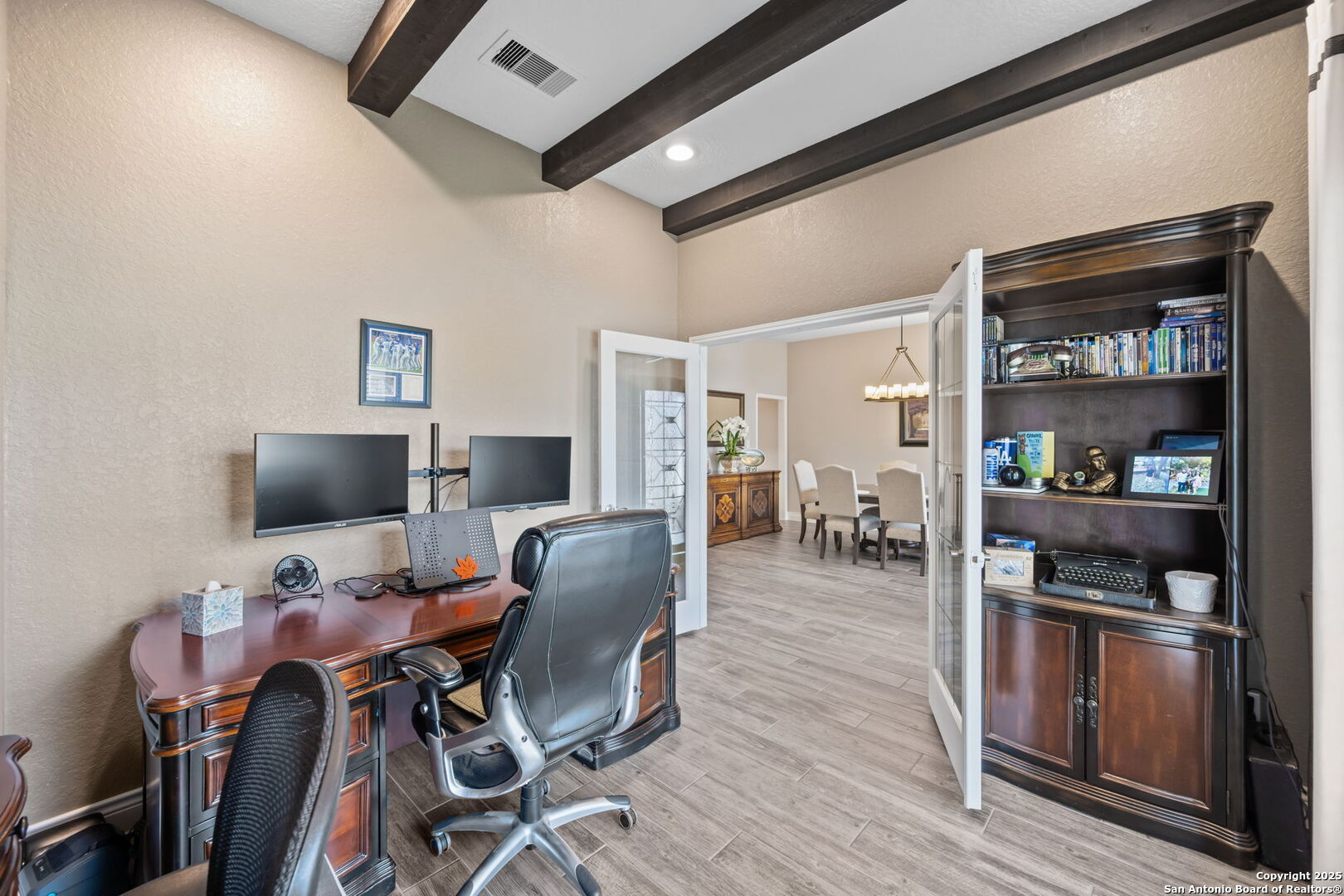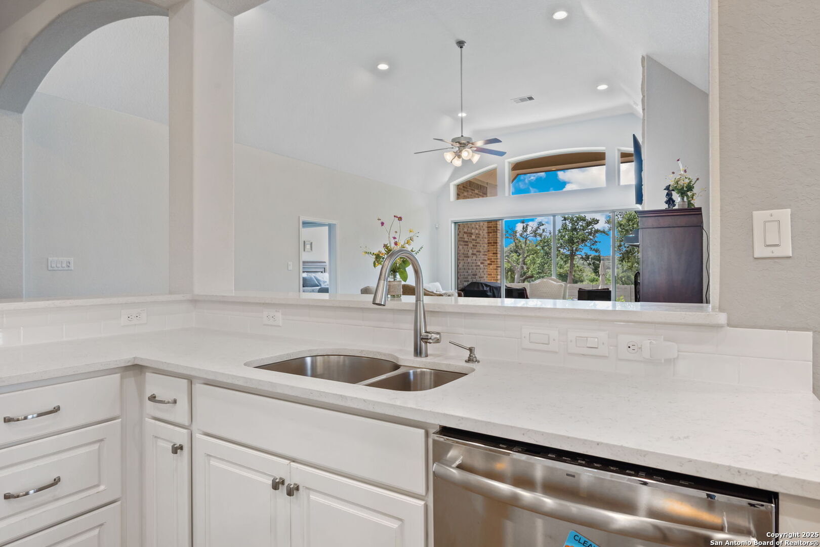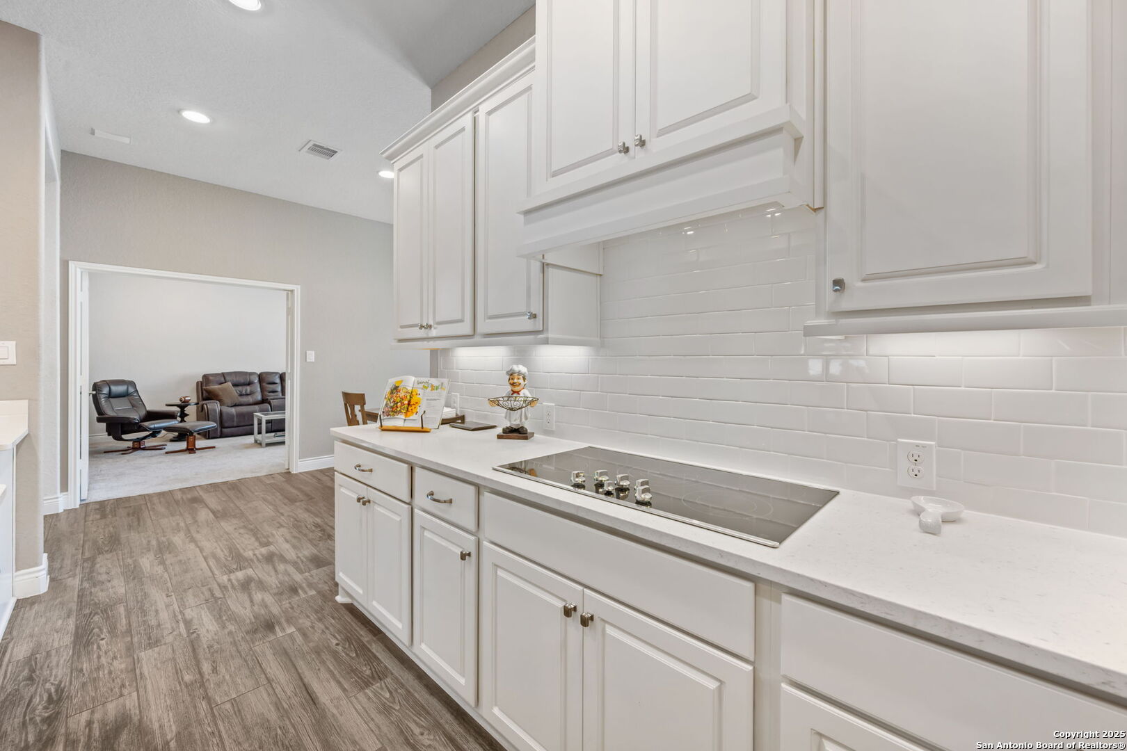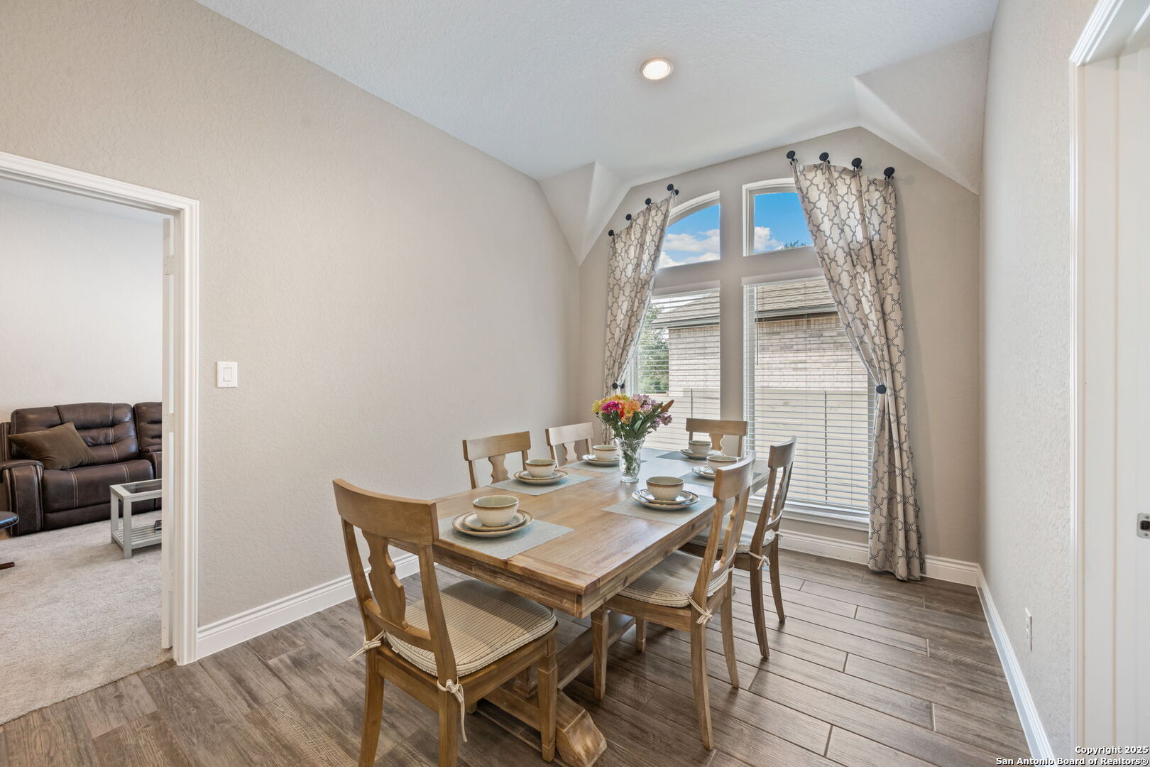 Located in the highly sought-after Grove section of Vintage Oaks, this 2017 Perry Home offers 3,491 square feet of thoughtfully designed living space with 4 bedrooms, 3 bathrooms, and exceptional finishes throughout. Step inside to an open-concept layout that effortlessly connects the well-appointed kitchen, dining, and living areas. The gourmet kitchen features a large center island with bar seating, abundant cabinet space, and sleek finishes - perfect for entertaining or everyday living. The spacious living room is highlighted by oversized windows that flood the space with natural light and frame peaceful backyard views. The home also includes a separate formal dining room for hosting gatherings, as well as a dedicated office that's ideal for working from home. The generous primary suite is a private retreat with a luxurious bath featuring a soaking tub, separate shower, dual vanities, and a walk-in closet. Step outside to your backyard oasis, complete with mature trees, a built-in firepit, and a full sprinkler system - an inviting space to enjoy Hill Country evenings. Enjoy all the incredible amenities Vintage Oaks has to offer, including multiple pools, walking trails, fitness center, clubhouse, and more.