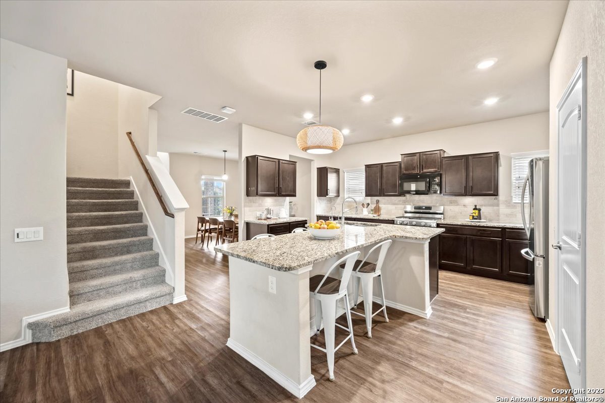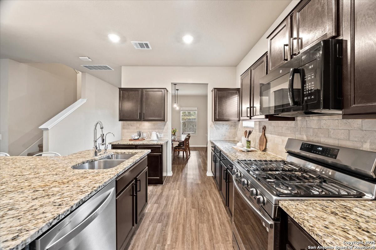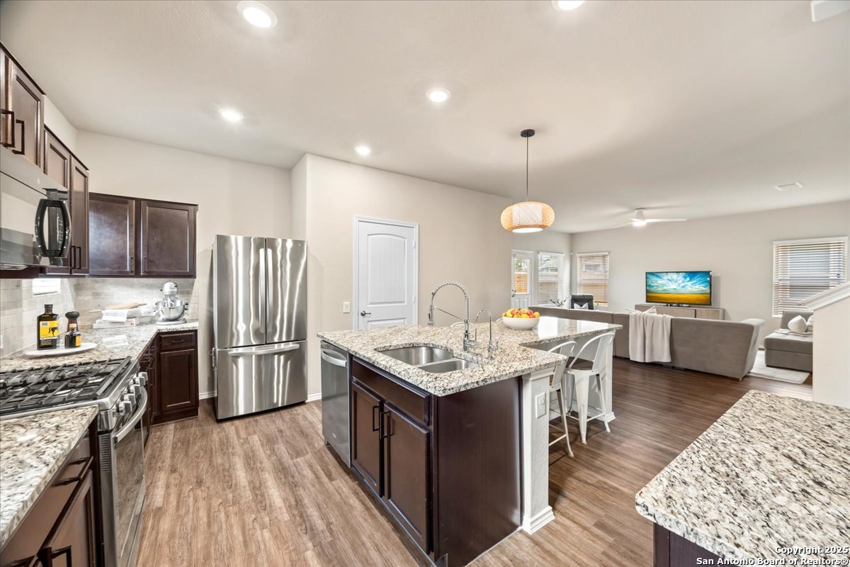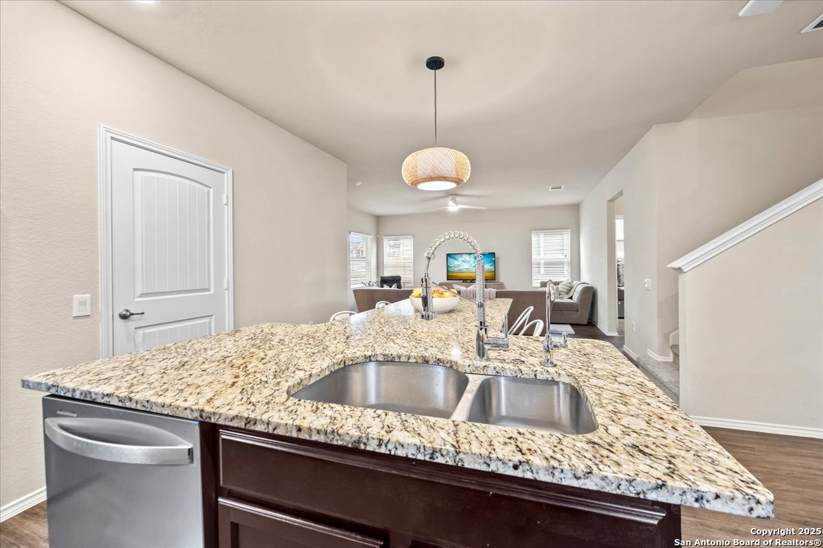 Assumable loan at 3.125!!! Welcome to a truly one-of-a-kind 5-bedroom, 3.5-bathroom home offered at a dream price. This beautiful residence blends comfort, style, and space in a way that feels just right for both everyday living and special moments. The primary bedroom is thoughtfully located on the main level, offering homeowners a private retreat away from the activity of the rest of the home. Step into the heart of the house-an inviting kitchen designed for gatherings of all sizes. With an upgraded gas stove (exactly what you have been looking for) and an upgraded dishwasher you will be able to enjoy having the family over! The kitchen features a spacious and unique island that offers plenty of room for cooking, entertaining, or simply enjoying time with family and friends. Throughout the home, you'll notice stylish upgrades, from modern light fixtures to sleek ceiling fans, giving each space a polished, upscale feel. Upstairs, you'll find the rest of the secondary bedrooms and bathrooms, providing comfortable and well-sized spaces for family or guests. A large loft area also awaits your personal touch. Whether you dream of a home gym, a cozy TV room, a quiet office or study space, or even a fun game room, this flexible space is ready to fit your lifestyle. Located in a highly convenient area, this home sits just minutes from the main roads of San Antonio, offering easy access to shopping, dining, and everyday essentials. Fort Sam Houston and Randolph Air Force Base are both nearby, making this a perfect location for those connected to the bases or looking for a quick commute. Don't miss this opportunity to make it yours, welcome home!