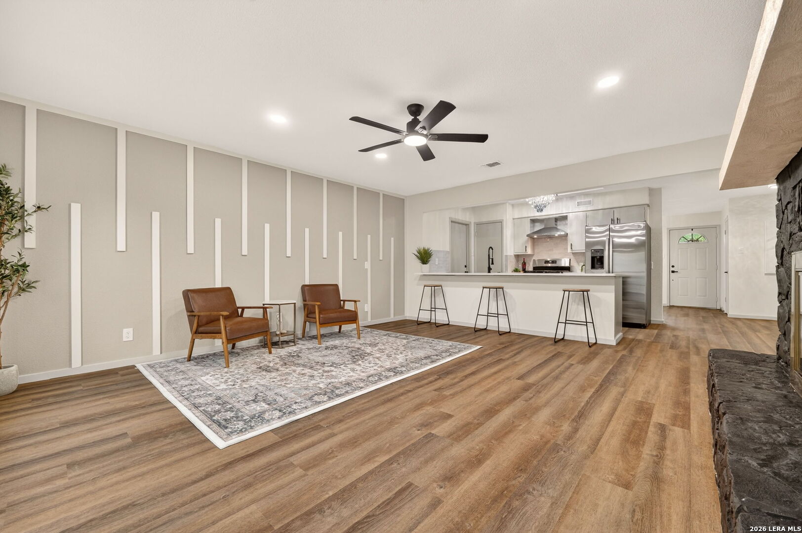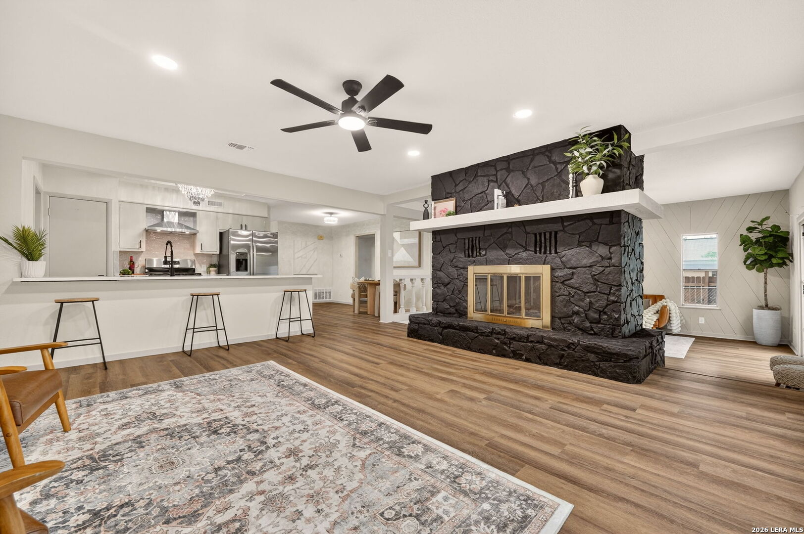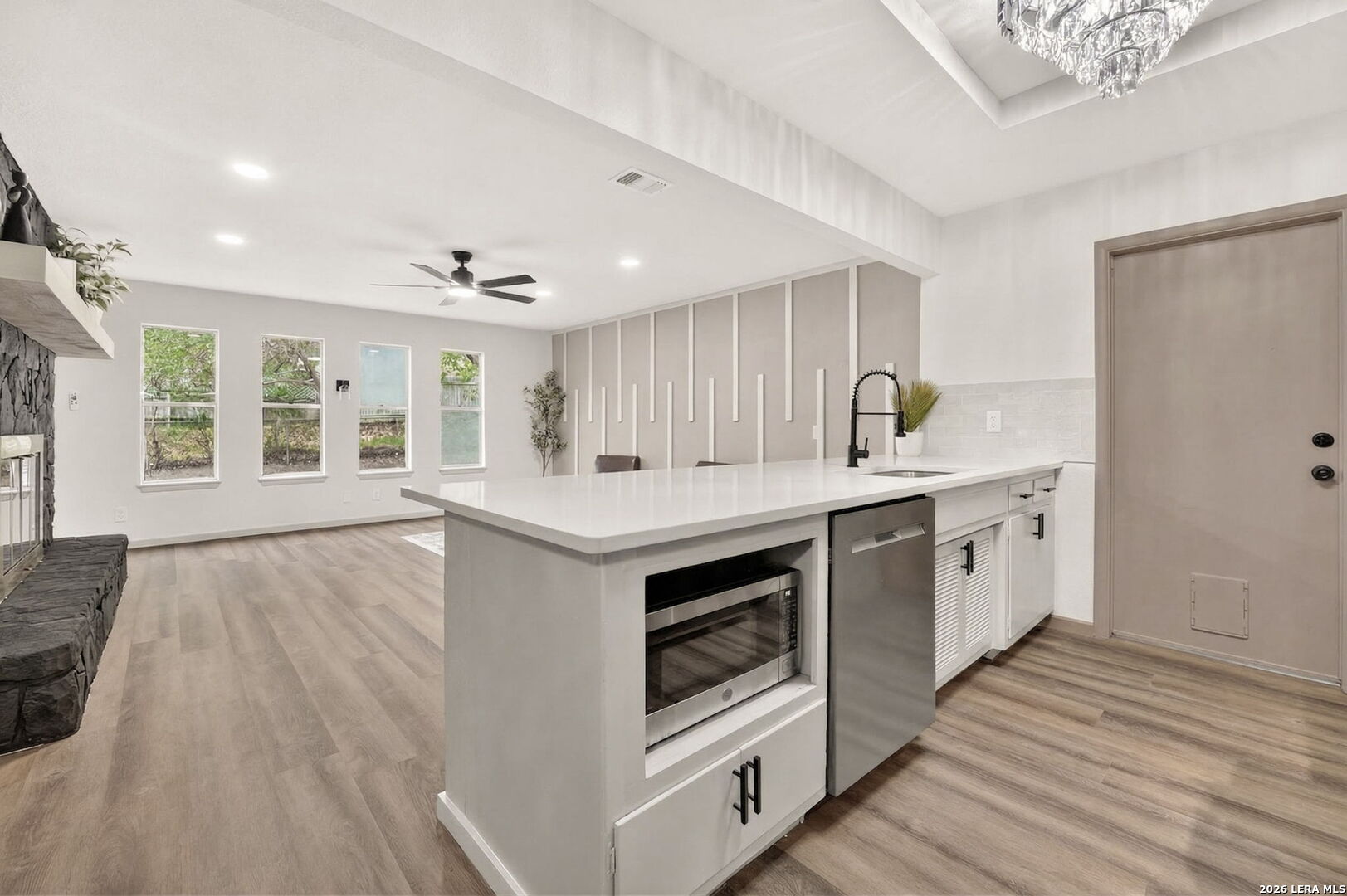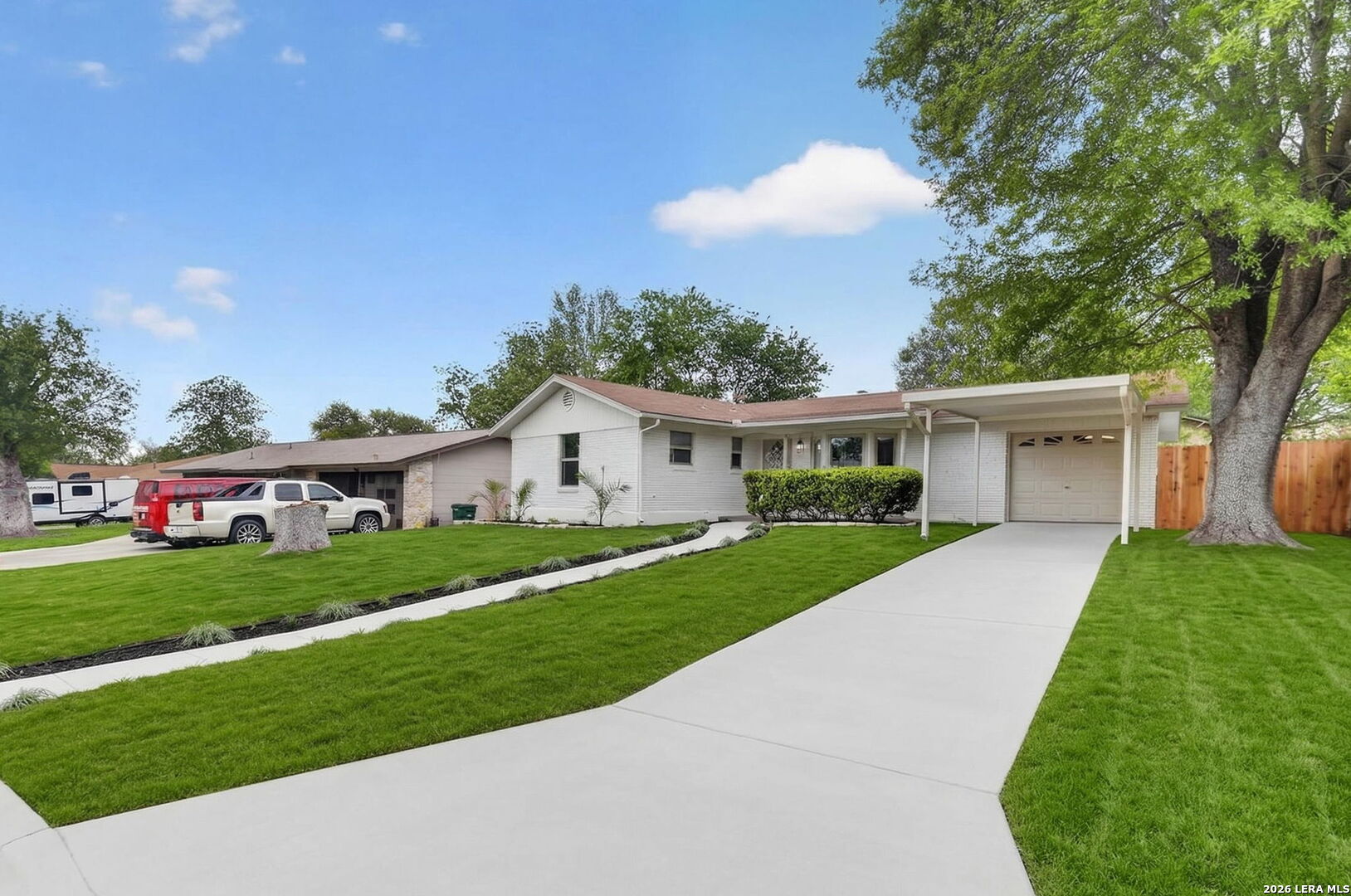Welcome to this beautifully updated home, perfectly situated on an expansive lot just shy of a quarter acre. Thoughtfully improved and well maintained, this property offers the ideal blend of comfort, functionality, and location. Inside, you'll find new flooring throughout and a cozy fireplace that creates a warm and inviting living space. The kitchen has been tastefully updated with new quartz countertops, new appliances, and modern finishes, complemented by stylish accent walls and updated light fixtures that add a contemporary touch throughout the home. Step outside to enjoy the newly installed custom landscaping, designed to enhance both curb appeal and outdoor enjoyment. The spacious backyard also features an oversized shed on a slab, providing excellent storage or workspace potential. Additional features include a convenient carport and a one-car garage, offering ample parking and flexibility. Ideally located just minutes from the Medical Center, La Cantera, and Downtown San Antonio, this home provides easy access to shopping, dining, and major highways while still offering plenty of space to spread out. Don't miss the opportunity to own a well-updated home in a prime location with room to grow.