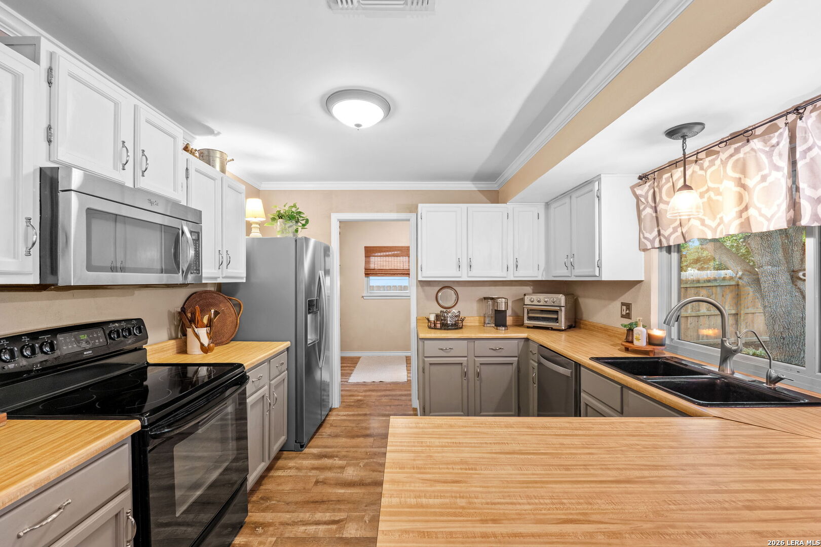 Beautifully maintained and thoughtfully updated, this 3 bedroom, 2 bath home offers the perfect blend of comfort, functionality, and outdoor living in an established San Antonio neighborhood. With strong curb appeal, mature trees, manicured landscaping, attractive stone and Hardie Plank siding, and updated double-pane Champion windows throughout, this home stands out from the moment you arrive. Inside, the semi-open floor plan creates an easy flow between the entry, dining, living, and kitchen spaces. The spacious living room features a striking shiplap accent wall, stone fireplace, and plenty of room to gather with family and friends. The oversized primary suite offers a peaceful retreat with dual closets and an updated en suite bath featuring a large standing shower and updated vanity. The kitchen includes stainless steel appliances, pantry storage, and a utility room with additional cabinetry for extra functionality. Throughout the home, updated flooring, tasteful improvements, and major system upgrades make this property move-in ready while still offering room for a buyer to personalize. The backyard is designed for entertaining and everyday enjoyment with a covered patio, wrap-around walkway, mature landscaping, and a resurfaced pool with updated tile and equipment completed in 2022. Additional updates include roof replacement in 2015 with Owens Corning 25-year shingles, Hardie Plank siding added in 2017, new HVAC system and furnace installed in 2021 with added attic insulation, water softener refreshed in 2025, and a new garage door opener replaced in 2025. Whether you are looking for a family home, a place to entertain, or a property with long-term value thanks to extensive system updates, this home offers an exceptional opportunity in a convenient San Antonio location.