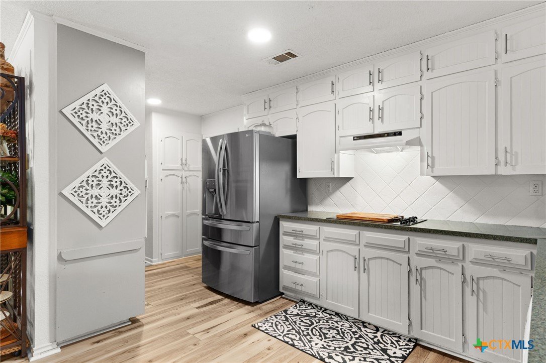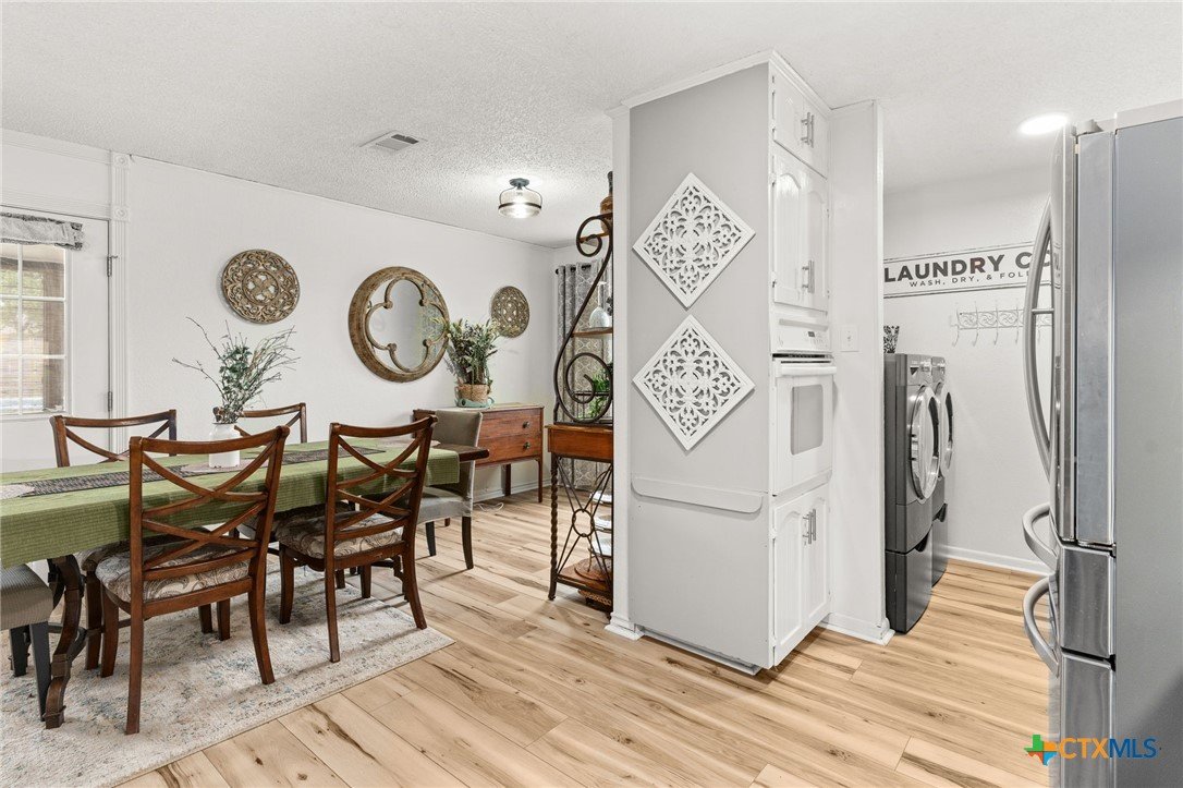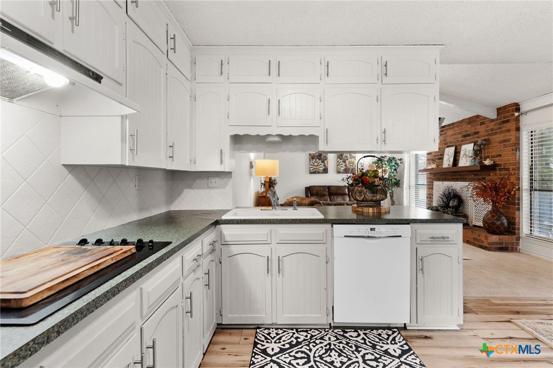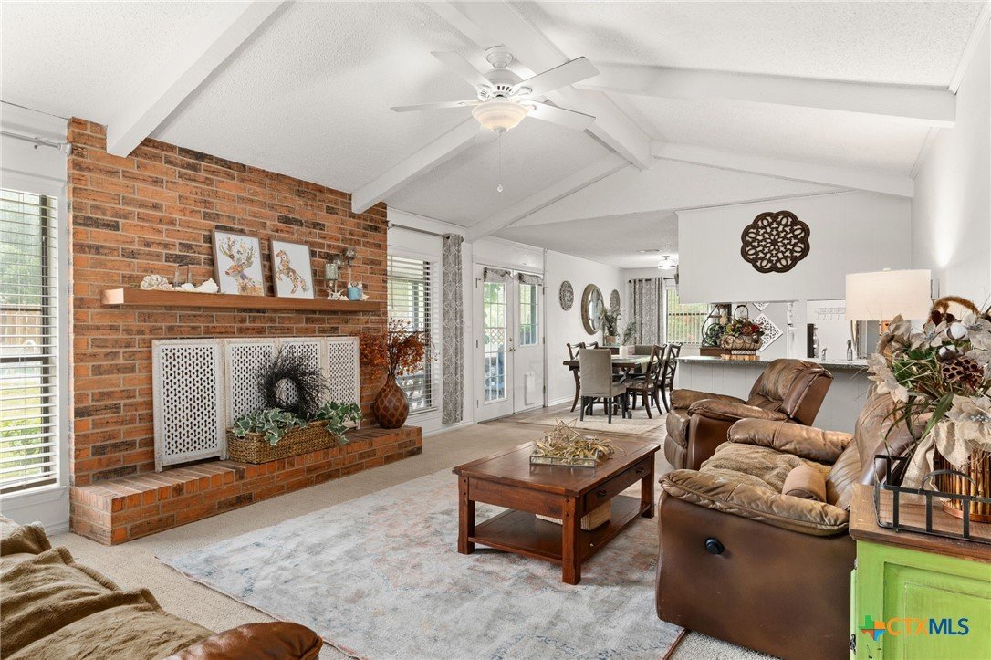 Enjoy country living centrally located between Lampasas and Fort Cavazos in this charming well-maintained home on over an acre. Located on a spacious corner lot, it features a large fenced backyard, mature trees, and an inviting in-ground pool. Relax on the screened-in porch or make use of the 10x12 portable building—perfect for a She Shed, Man Cave, or extra storage. Inside, fresh flooring, cathedral beam ceilings, and built-in storage add character. The open living area with a wood-burning fireplace flows into the kitchen and dining space, ideal for entertaining. You'll find three spacious bedrooms with walk-in closets and a versatile bonus room perfect for an office or workout space. This hidden gem won’t last long—schedule your private showing today!