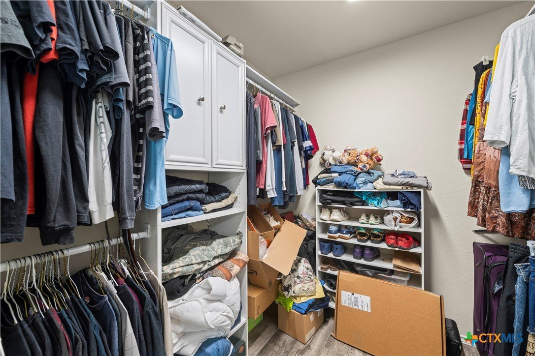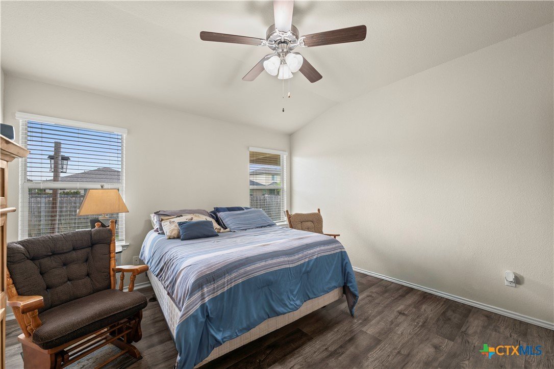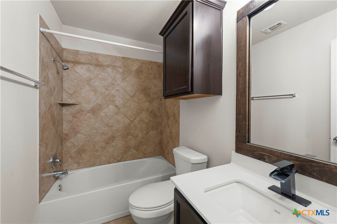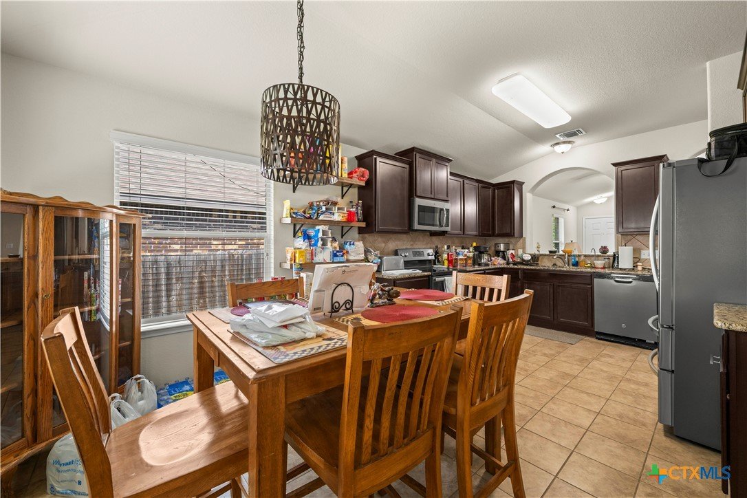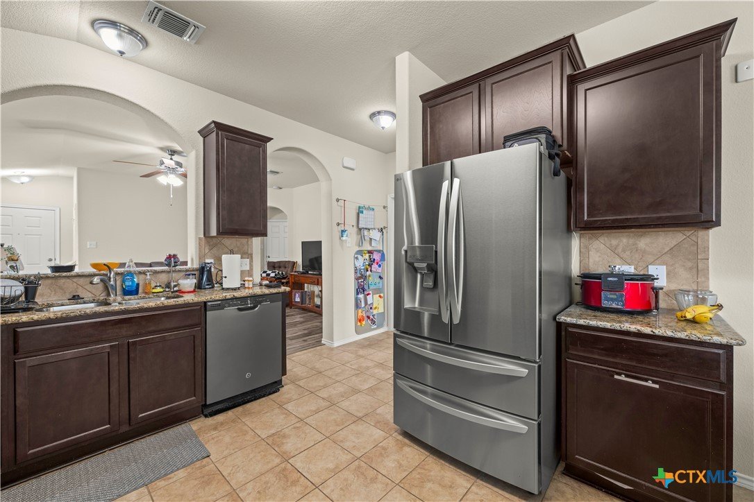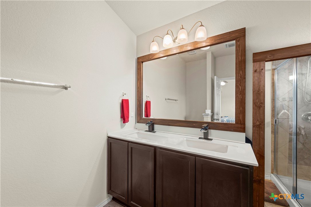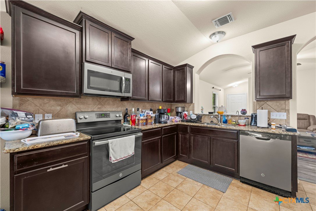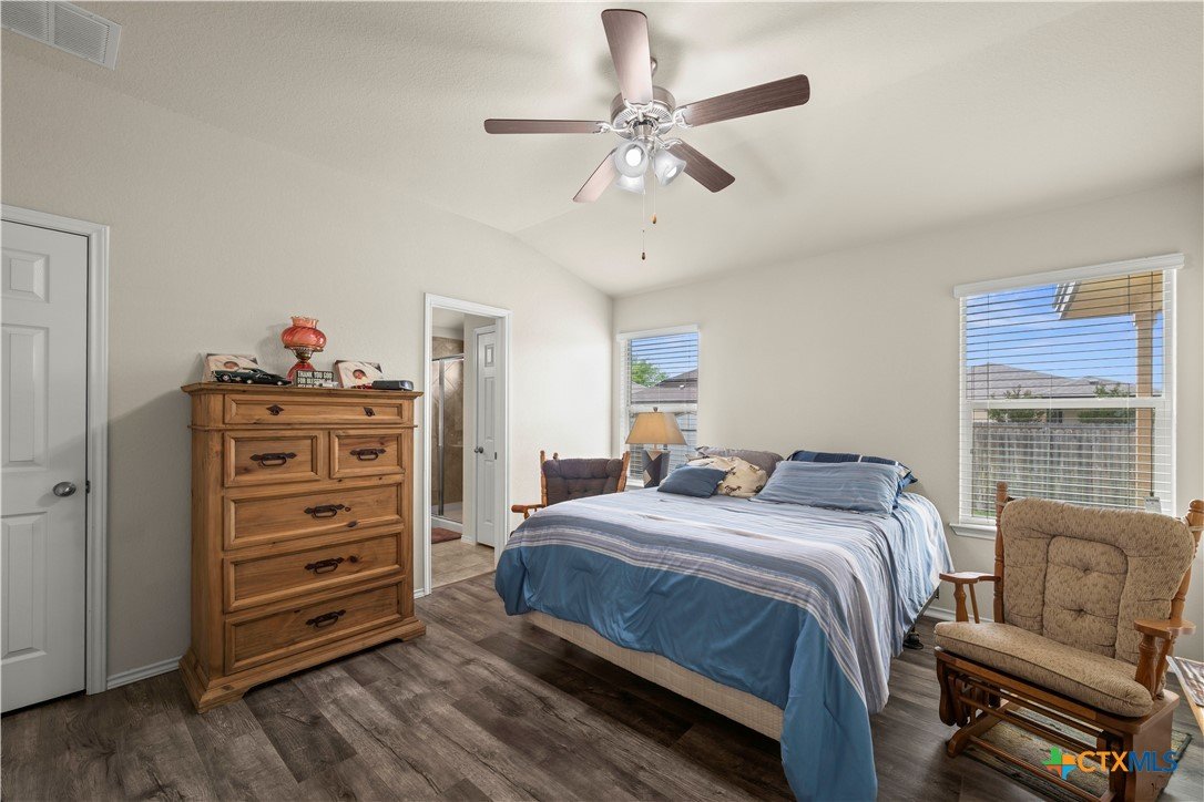 Beautiful home located in Academy ISD featuring a welcoming oversized front porch and an extended covered patio overlooking a private, fenced backyard—perfect for outdoor enjoyment and entertaining. The open-concept floor plan offers an eat-in kitchen that flows seamlessly into the living area, creating a functional space for everyday living and gatherings. The kitchen provides ample cabinet and counter space along with a comfortable dining area. The primary bedroom includes a walk-in closet, double sinks, and a walk-in shower. Additional highlights include durable LVT flooring in the main living areas and a garage equipped with a professionally installed mini-split A/C system, offering flexible space for a workshop, gym, hobby area, or future conversion. Well-maintained and move-in ready, this home combines comfort, functionality, and added upgrades. Schedule your showing today!
