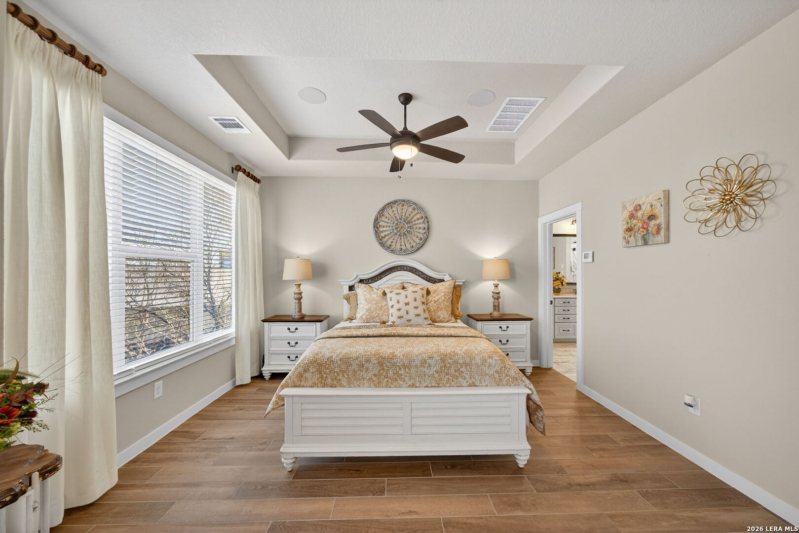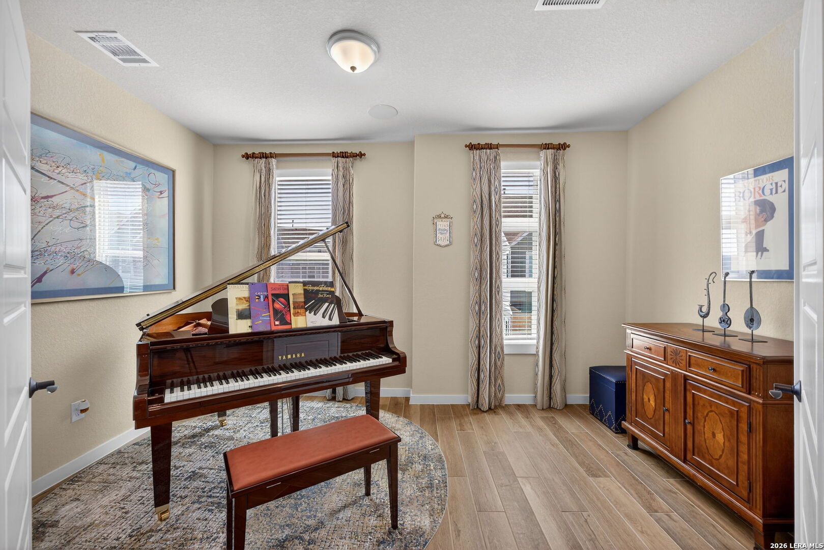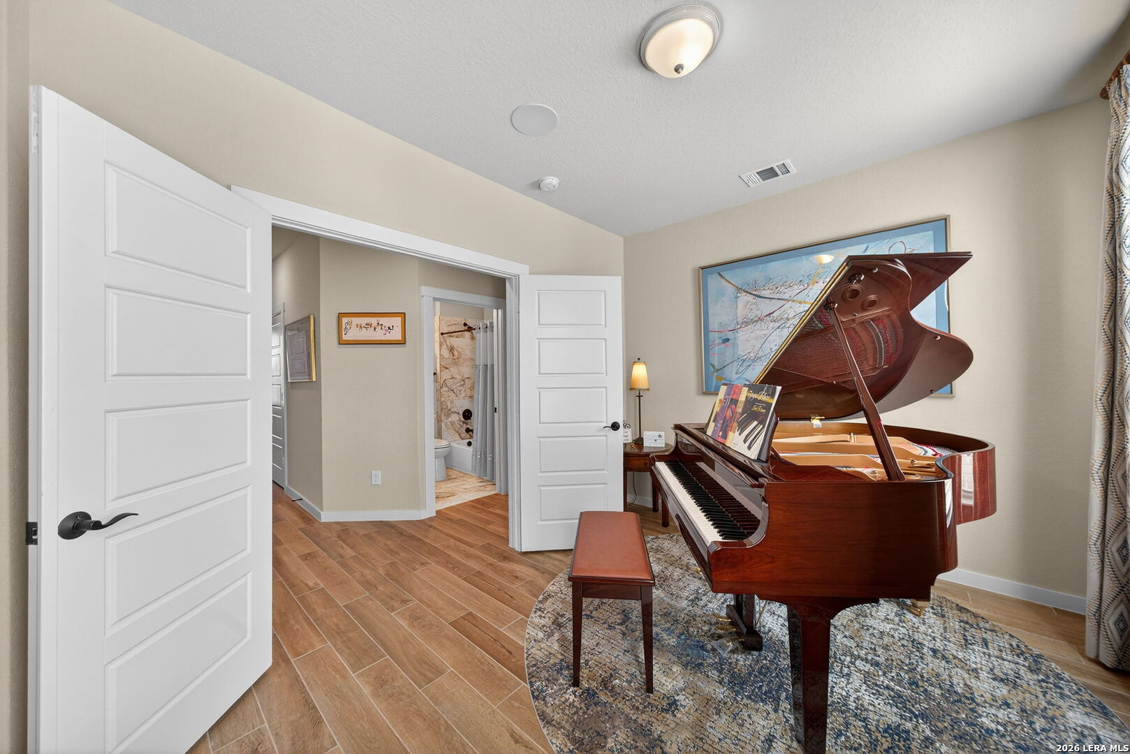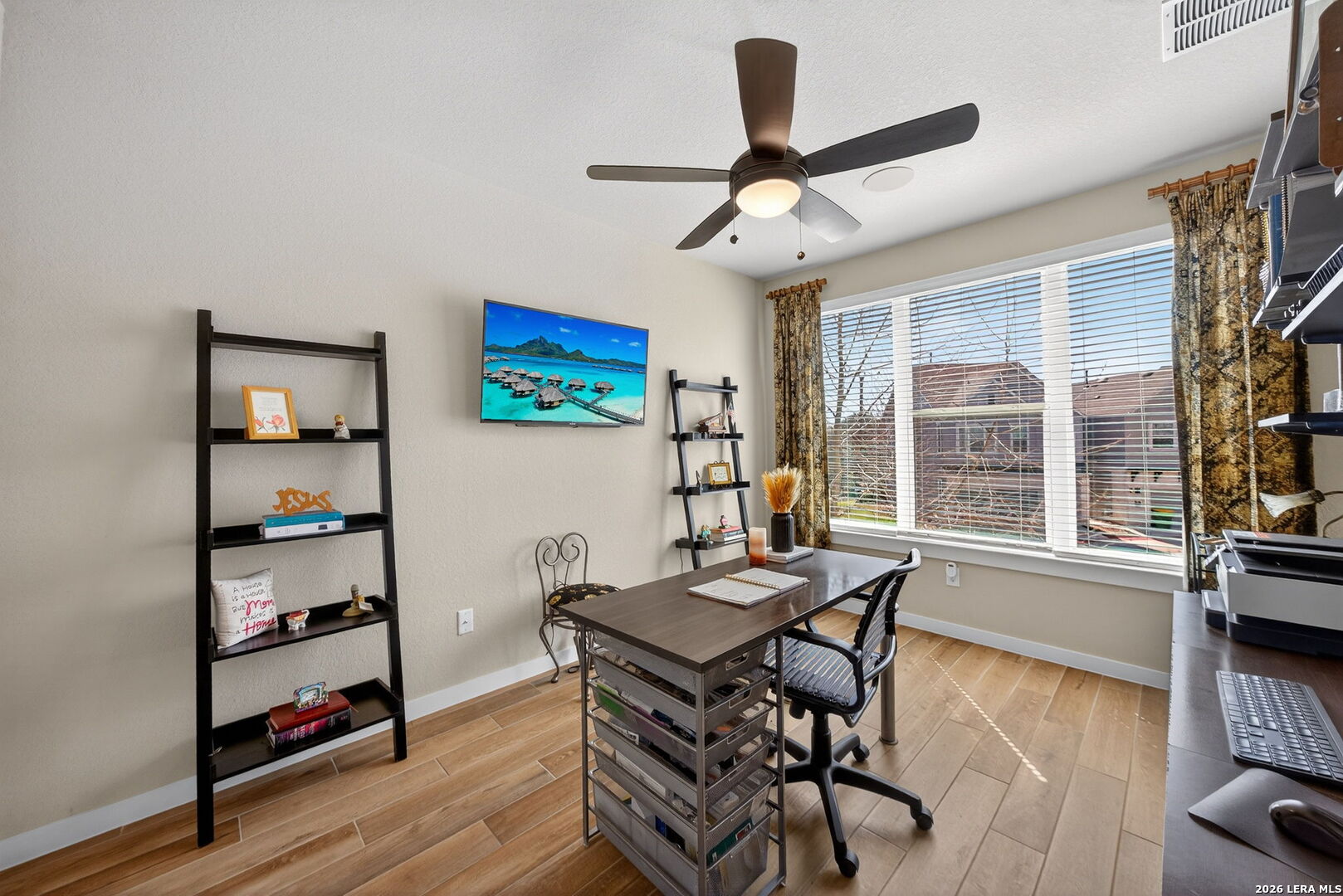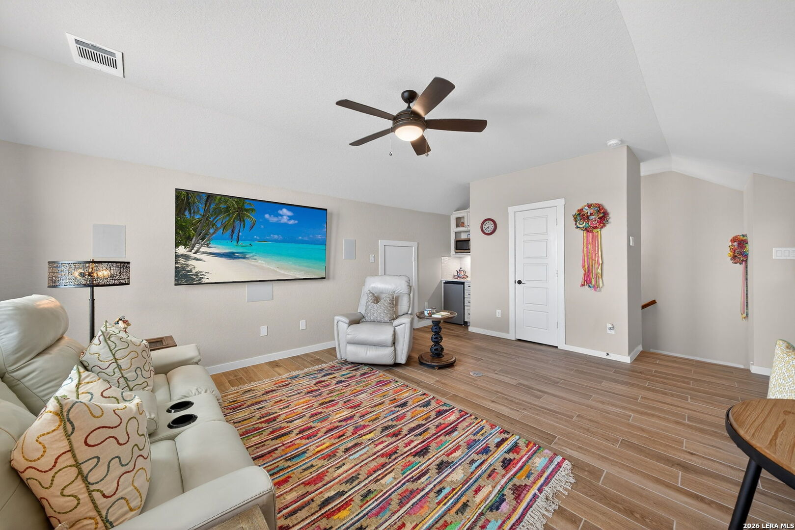 Located directly beside the serene HOA park, this impeccably upgraded modern home offers the very best in low-maintenance living. Designed with both comfort and style in mind, the residence features ceramic wood-look tile throughout all three levels-no carpet anywhere-creating a cohesive and sophisticated feel. Thoughtful upgrades abound, including a tankless water heater, remote-controlled power blinds, whole-home sound system, custom drapery, and premium kitchen finishes. The chef's kitchen is beautifully appointed with high-end countertops, upgraded appliances, custom cabinetry, and convenient roll-out drawers for effortless organization. The main level welcomes you with an inviting entry and an open-concept layout that seamlessly connects the kitchen and family room, all overlooking the private backyard. Outdoors, the xeriscaped yard offers a tranquil, low-maintenance retreat with thoughtfully selected plantings-perfect for relaxing or entertaining. On the second level, you'll find the spacious primary suite, a secondary bedroom, and a versatile flex space currently used as a music room-ideal as an additional bedroom, home office, or creative studio. The third level provides a generous bonus room complete with a kitchenette, making it the perfect media room, game room, guest retreat, or private escape. Modern luxury, functional design, and an unbeatable location next to open green space-this home truly has it all.
