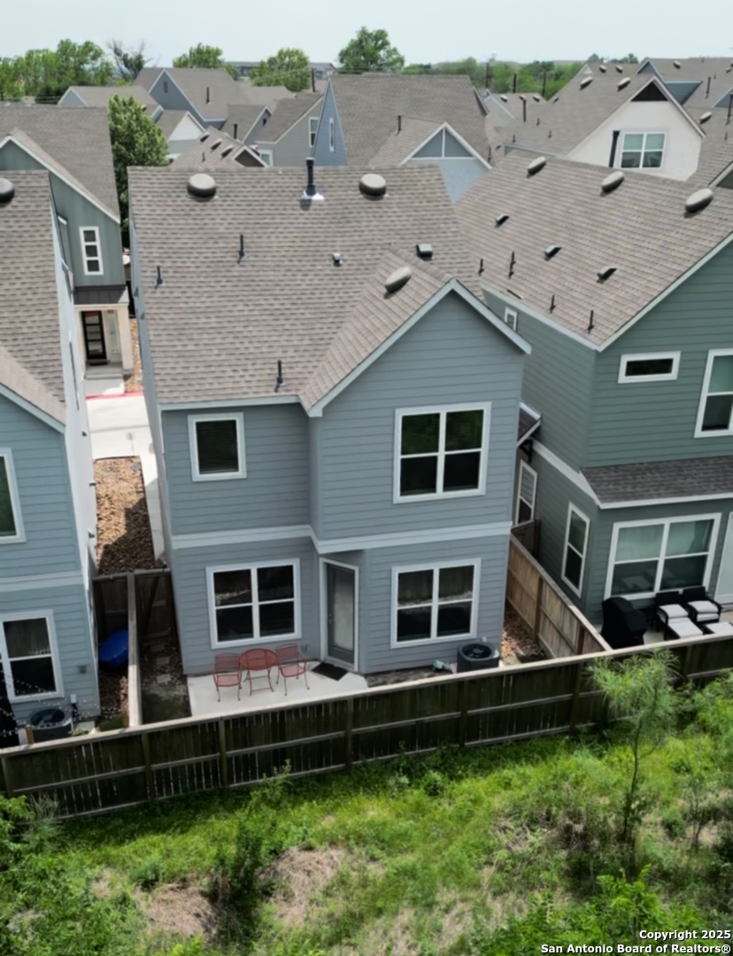 The Enclave At Whitby is a stunning gated community in a prime location near the Medical Center. 2 story, 3 bedroom 2.5 bath floor plan and it's available on a GREENBELT!! This gorgeous garden home has all 3 bedrooms and utility room located on the second floor with the primary bedroom split for your privacy. Upon entering you'll find engineered wood floors on the first floor and the stairs with metal spindles and Spanish oak stain. The kitchen offers straight edge 3CM Silestone Miami Vena Suede with Mosaic Wall backsplash using run vertical pattern, 42" kitchen cabinets with Barnet Duraform Espresso finish, all GE Energy Efficiency SS appliances with 30" Gas cooktop, water filter system installed at kitchen sink with spout and pre-plumb for water softener. Owner's bath shower floor and floor with mosaic shower octagon with black dot and royal bath brazos 60x41 white garden tub. Cordless capri window blinds throughout, ranch style insulated steel garage door, garage door opener, whole home/ audio & video 1.5" flex conduit with power outlet for wall mount TV. The community features a dog park, a pergola area that includes picnic tables, a bbq pit, corn hole and a small area with Adirondack chairs to relax... that as well as weekly yard maintenance, controlled access, Spectrum internet and exterior paint touch up are all covered by your HOA fee (included in rent). H-E-B conveniently located minutes from your front door. Short drive to South Texas Medical Center, close to major employers, including USAA, University of Texas at San Antonio; Proximity to shopping, dining and entertainment at Huebner Oaks and IH-10. Refrigerator included.