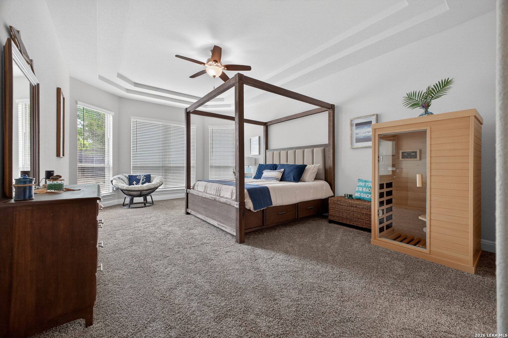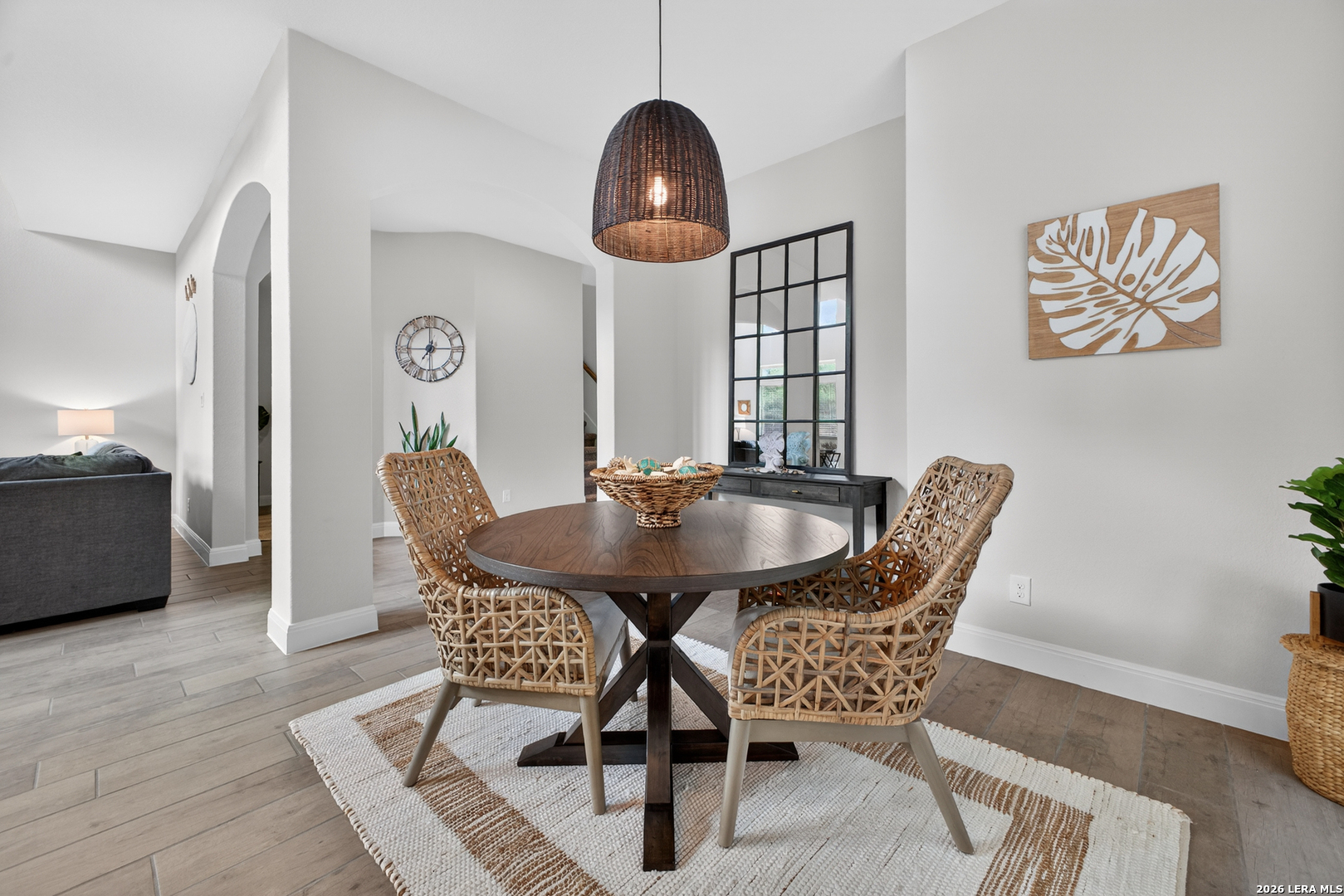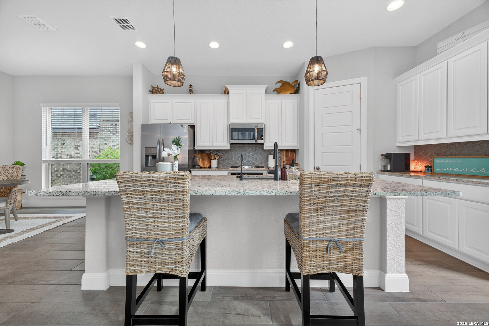 Experience elevated living in this exquisite DR Horton Emerald Series home located in Alamo Ranch. Designed with both style and functionality in mind, this home features soaring ceilings, expansive windows, and a bright open-concept layout that immediately sets it apart. The kitchen is a true centerpiece, offering an oversized island, granite countertops and stainless steel appliances all flowing seamlessly into the main living and dining areas. The first floor includes a spacious primary suite and a secondary bedroom with full bath, ideal for guests or a private office, along with a conveniently located laundry room. Upstairs, you'll find a versatile loft/game room and a dedicated media room complete with theater lighting and pre-wiring for sound and entertainment, with potential to convert into a 5th bedroom. The primary suite offers dual walk-in closets, while thoughtful details like a window in the upstairs closet provide natural light in unexpected spaces. Step outside to enjoy a covered front porch and a spacious backyard with a covered patio perfect for relaxing or entertaining. Additional features include modern double front doors, 8-foot interior doors, upgraded fixtures, blinds throughout, a finished garage, water softener, programmable sprinkler system, and multiple attic storage areas. Conveniently located near shopping, dining, and entertainment, including H-E-B, Costco, and the Santikos Casa Blanca Theater, with nearby parks and easy access to major highways. From its elevated design to its functional layout and standout upgrades, this home is truly a step above the rest.