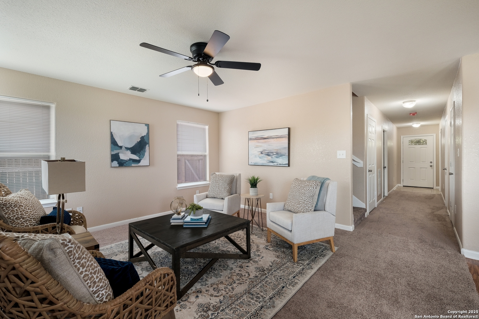 Welcome to this beautifully updated 4-bedroom, 2.5-bath home located in the desirable Canyon Crossing subdivision. With convenient access to Highway 90 and Loop 1604, commuting is a breeze. This home features brand new carpet throughout, fresh interior paint, and new kitchen appliances. The spacious open floor plan offers the private primary suite on the main level, while the three additional bedrooms are upstairs along with a large loft area-perfect for a game room, home office, or secondary living space. Don't miss this move-in-ready home with modern updates and an ideal location!