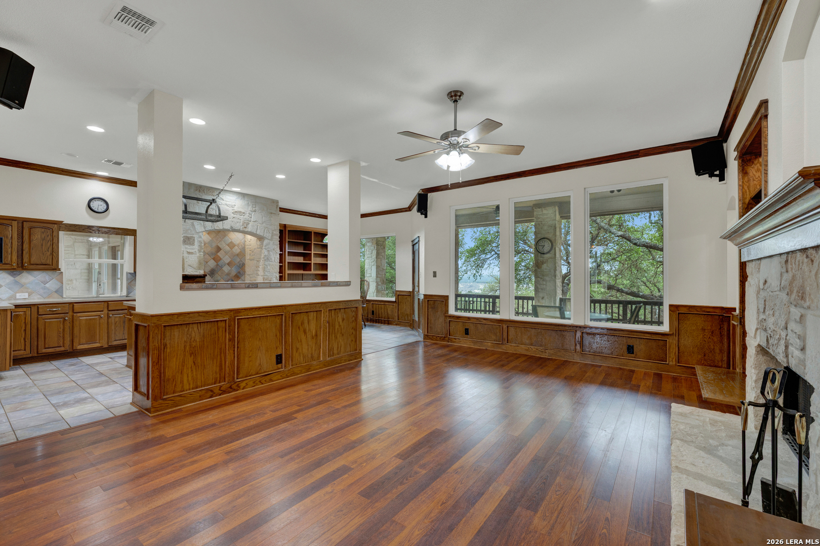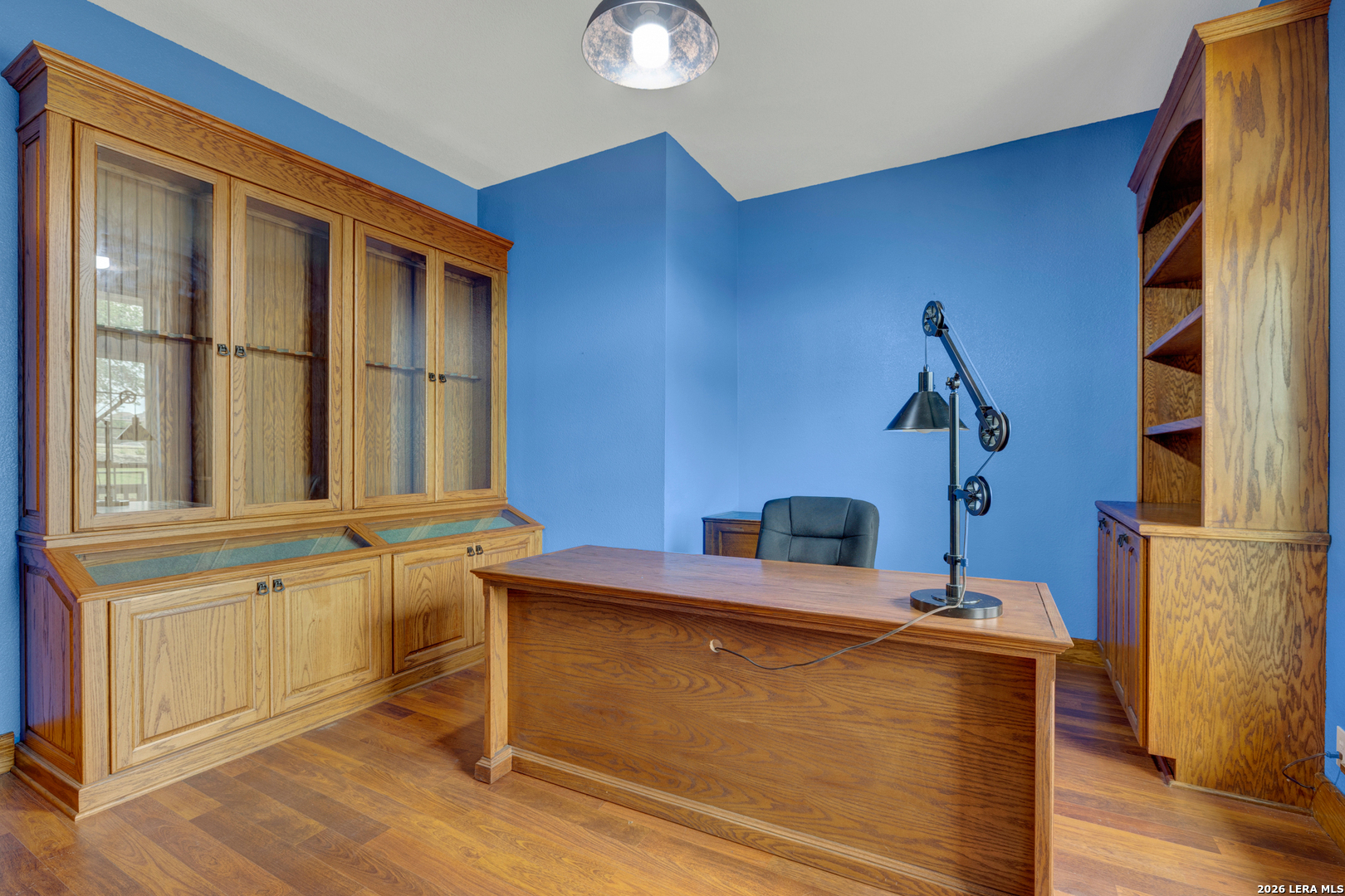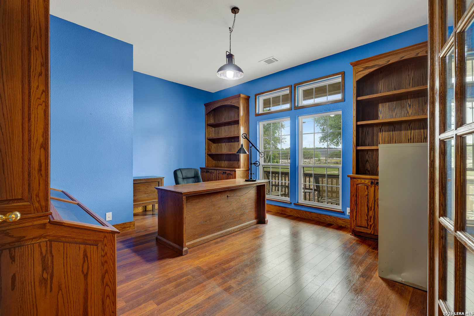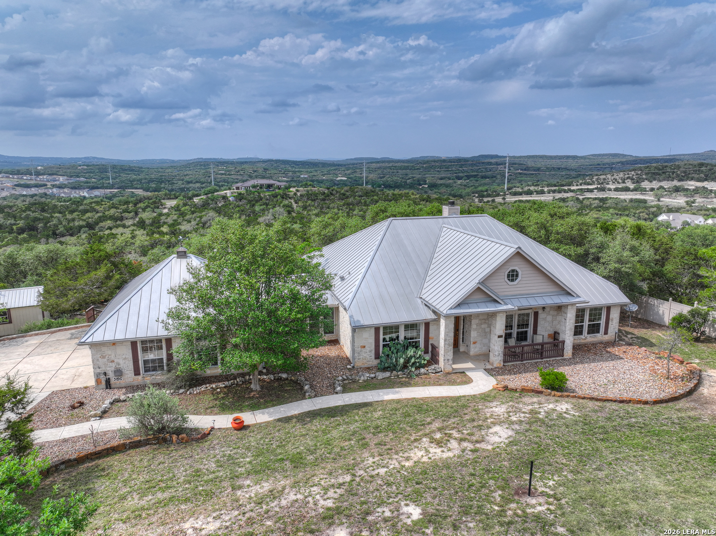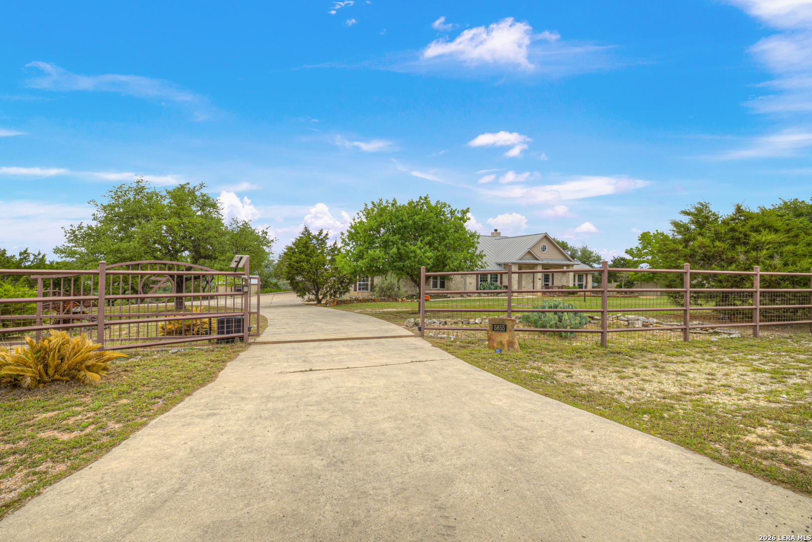 Stunning White Stone Home Sitting on 2.62 Acres of Hill Country Views! You will enjoy the breath taking views throughout the Home with an abundance of windows providing wonderful natural light. Enter the fully fenced property through the Electric Gate as you sink into peace, quiet and tranquility the property offers. This Home has 3 Bedrooms and a large Office with French Doors. The Wood Flooring and No carpeting in the Home is a big plus! Open floor plan with a Lovely White Stone Fireplace in Great Room in the Heart of the Home. Large covered patio and outdoor Fireplace perfect for outdoor Entertaining and Evening relaxation of Sunsets and Beautiful Views of Texas. Continue down the long Path to the Elaborate Workshop or drive down the private concrete Road . This property is truly Unique and extremely well priced. Call today and schedule a visit!