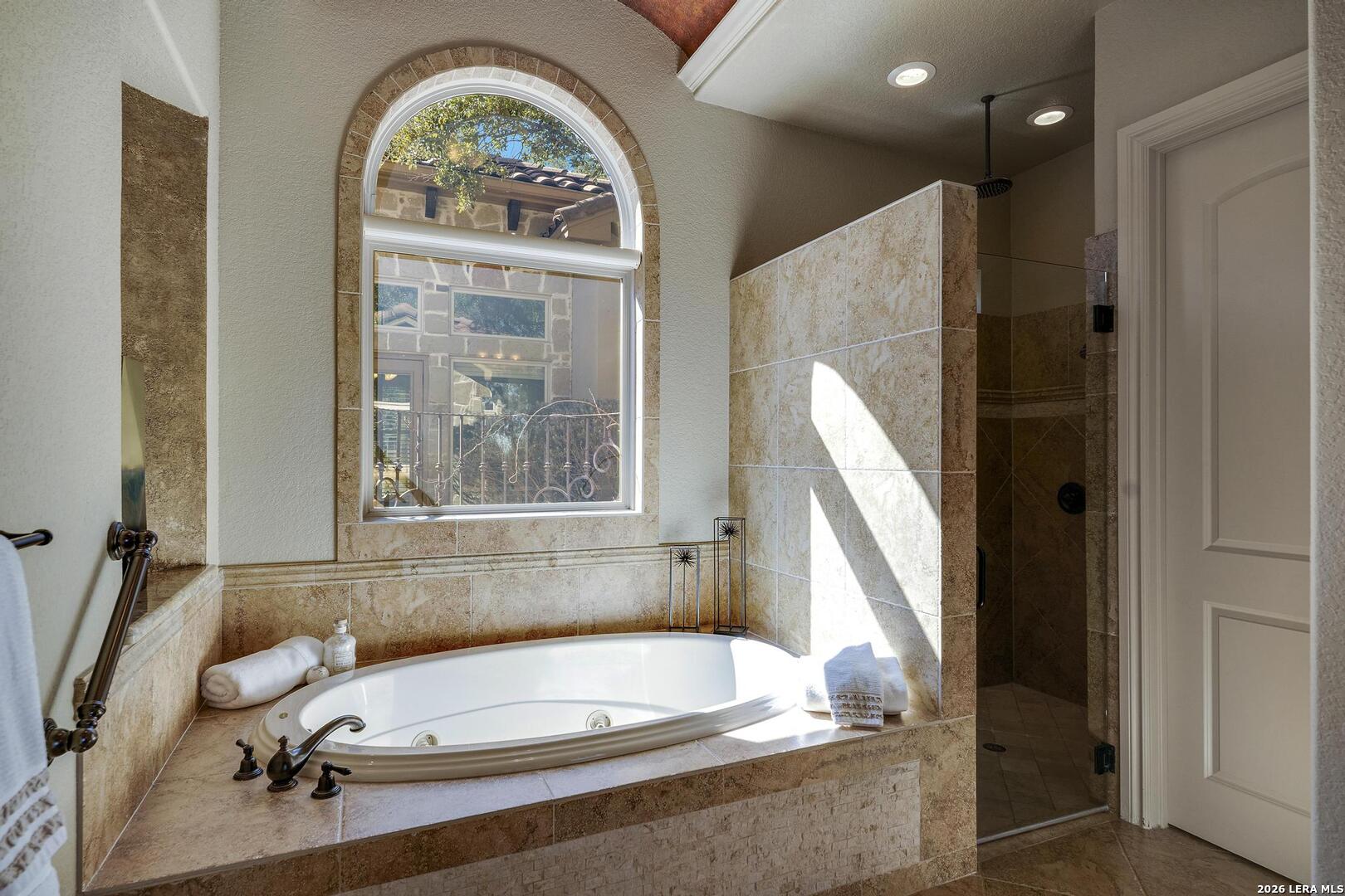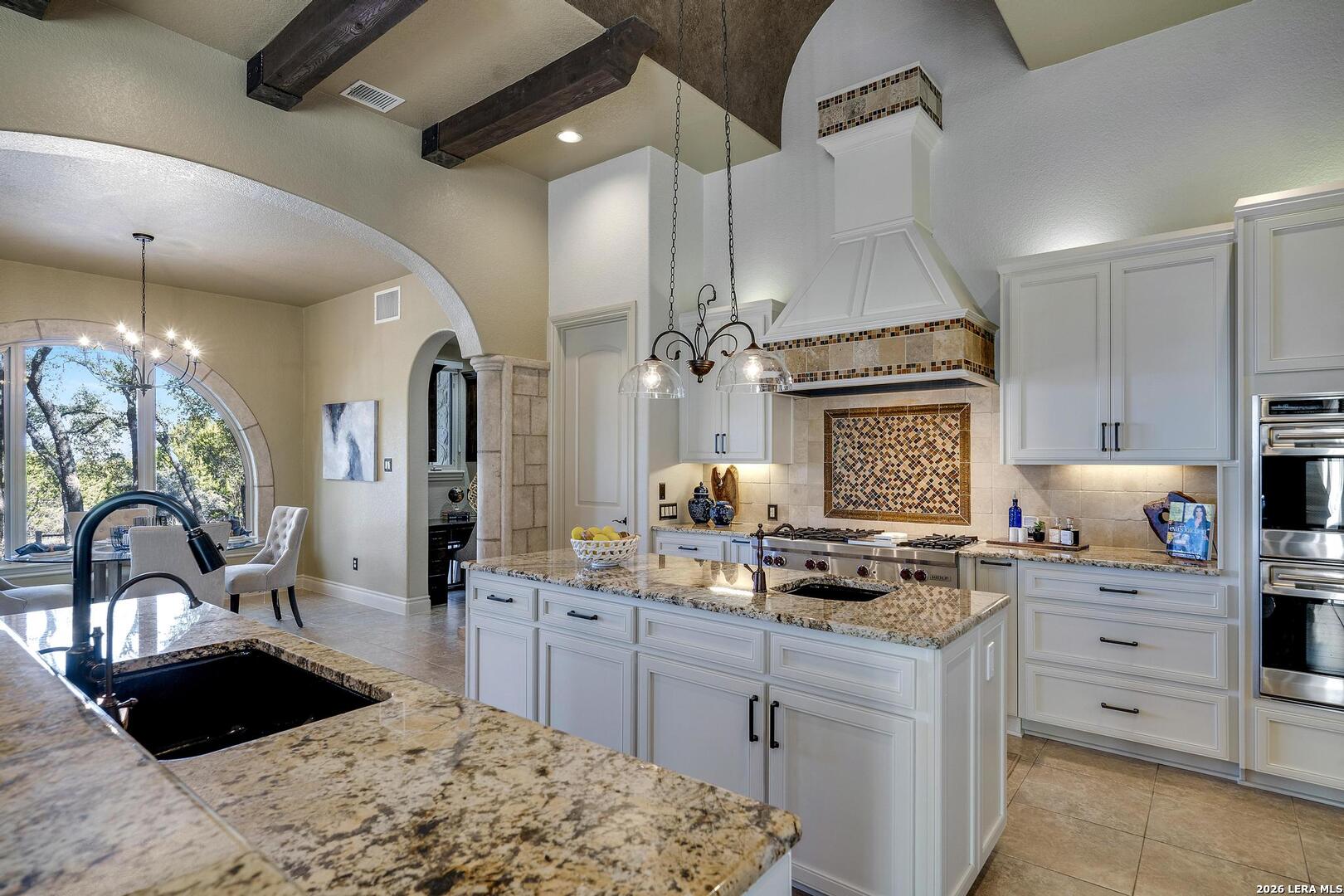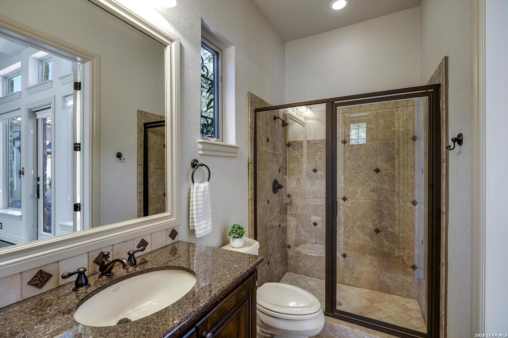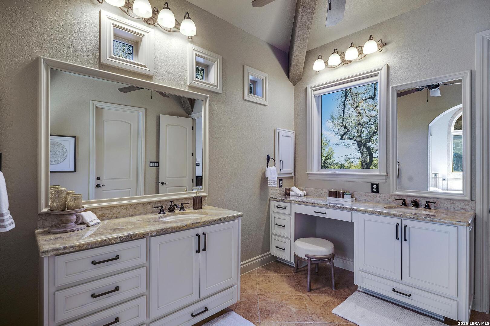 Master Golf Membership available for purchase. Perfectly positioned on 1.07 acres within the highly coveted Clubs Village of Cordillera Ranch, this elegant Hill Country retreat offers exceptional privacy and the convenience of a short golf cart ride to the clubhouse and championship golf course. A pair of striking iron doors opens to a grand entry, where serene courtyard views frame a tranquil koi pond and waterfall-an inviting setting for morning coffee or quiet reflection. The formal living or sitting room is ideally proportioned to accommodate a grand piano, creating a refined space for music-filled evenings conversation, while the dining room provides an elegant backdrop for memorable dinners and celebrations. The heart of the home is a beautifully appointed chef's kitchen featuring custom cabinetry, double ovens, an 8-burner WOLF gas cooktop, double ovens, Sub-Zero refrigeration, and a generous walk-in pantry. A large central island anchors the space, flowing seamlessly into both the breakfast room and family room-ideal for everyday living and effortless entertaining. The grand family room, centered around a warm fireplace, overlooks the covered patio and resort-style pool, creating a welcoming backdrop for gatherings, movie nights, or relaxed evenings at home. The owner's suite is a true sanctuary, showcasing hardwood floors and a spa-inspired bath with soaking tub, walk-in shower, dual vanities, and an expansive custom wardrobe room. Guests are well accommodated with a private main-level suite near the courtyard, while two additional upstairs bedrooms each offer ensuite baths. A dedicated study with built-in desk and shelving provides a quiet, functional work-from-home space. Fabulous views of the Twin Sisters grace the outdoor space providing a year-round oasis with a covered patio, built-in outdoor kitchen, and multiple areas for lounging or dining, all overlooking a sparkling negative-edge pool and spa with outdoor shower. Completing the home is a GENERAC propane generator, an attached three-car garage and abundant storage. Experience refined Hill Country living at its finest in one of Cordillera Ranch's most desirable settings.