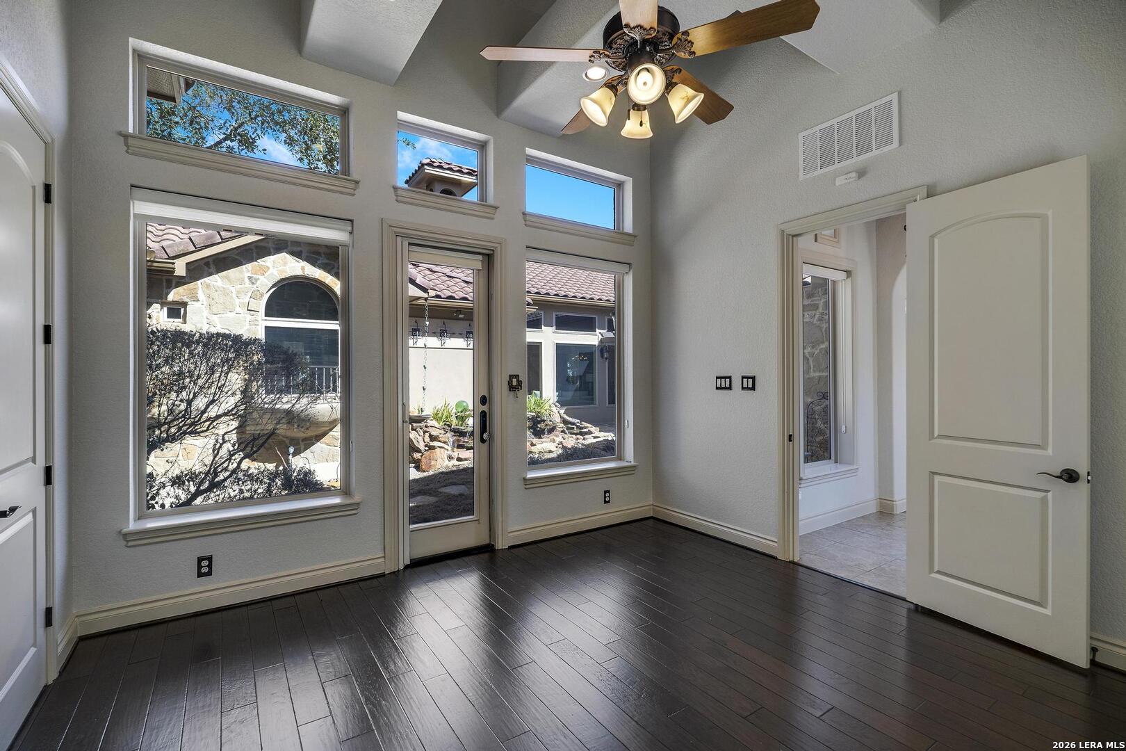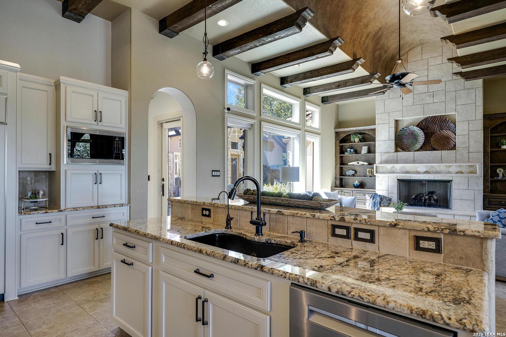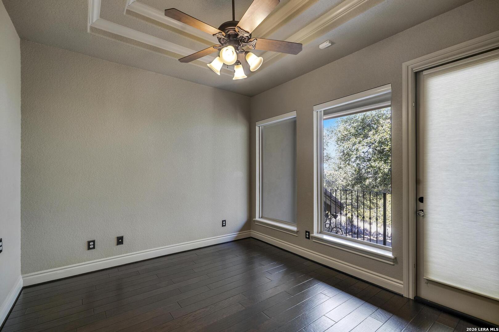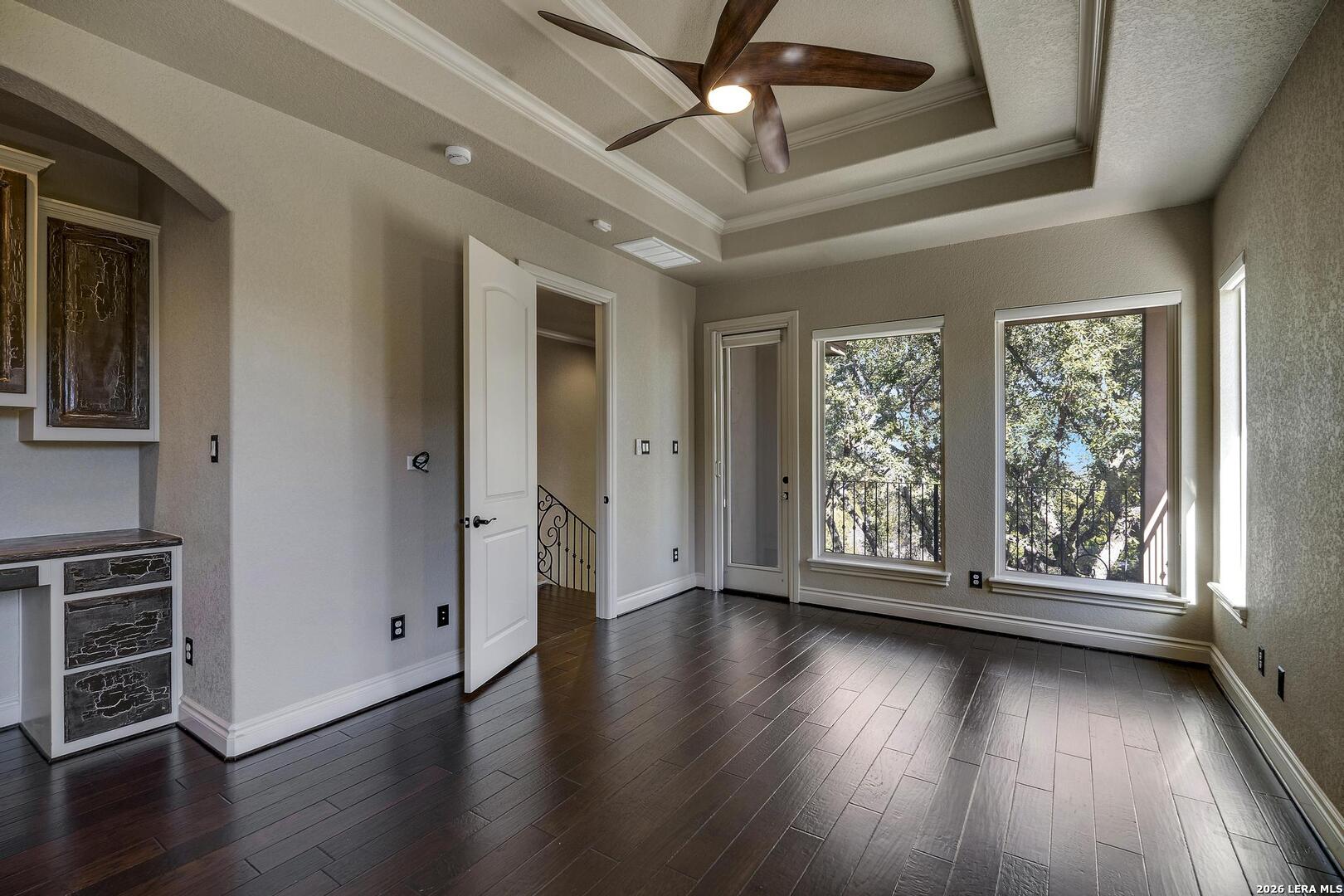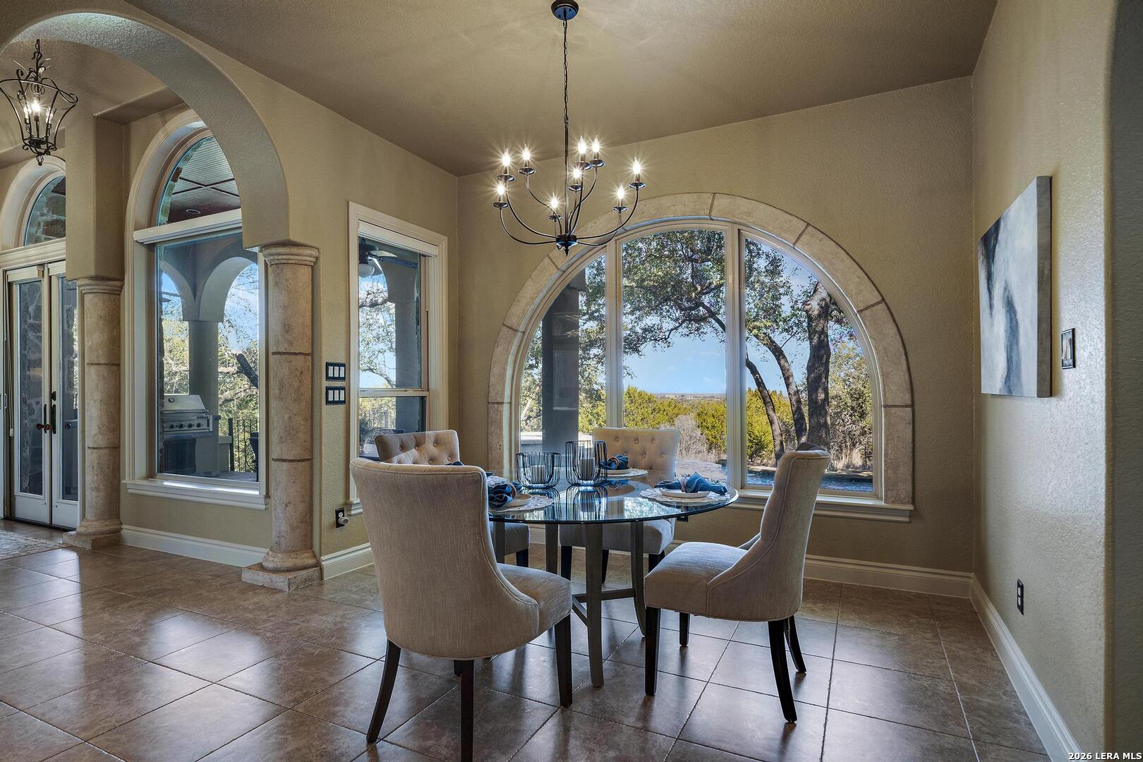 Master Golf Membership available for purchase. Perfectly positioned on 1.07 acres within the highly coveted Clubs Village of Cordillera Ranch, this elegant Hill Country retreat offers exceptional privacy and the convenience of a short golf cart ride to the clubhouse and championship golf course. A pair of striking iron doors opens to a grand entry, where serene courtyard views frame a tranquil koi pond and waterfall-an inviting setting for morning coffee or quiet reflection. The formal living or sitting room is ideally proportioned to accommodate a grand piano, creating a refined space for music-filled evenings conversation, while the dining room provides an elegant backdrop for memorable dinners and celebrations. The heart of the home is a beautifully appointed chef's kitchen featuring custom cabinetry, double ovens, an 8-burner WOLF gas cooktop, double ovens, Sub-Zero refrigeration, and a generous walk-in pantry. A large central island anchors the space, flowing seamlessly into both the breakfast room and family room-ideal for everyday living and effortless entertaining. The grand family room, centered around a warm fireplace, overlooks the covered patio and resort-style pool, creating a welcoming backdrop for gatherings, movie nights, or relaxed evenings at home. The owner's suite is a true sanctuary, showcasing hardwood floors and a spa-inspired bath with soaking tub, walk-in shower, dual vanities, and an expansive custom wardrobe room. Guests are well accommodated with a private main-level suite near the courtyard, while two additional upstairs bedrooms each offer ensuite baths. A dedicated study with built-in desk and shelving provides a quiet, functional work-from-home space. Fabulous views of the Twin Sisters grace the outdoor space providing a year-round oasis with a covered patio, built-in outdoor kitchen, and multiple areas for lounging or dining, all overlooking a sparkling negative-edge pool and spa with outdoor shower. Completing the home is a GENERAC propane generator, an attached three-car garage and abundant storage. Experience refined Hill Country living at its finest in one of Cordillera Ranch's most desirable settings.