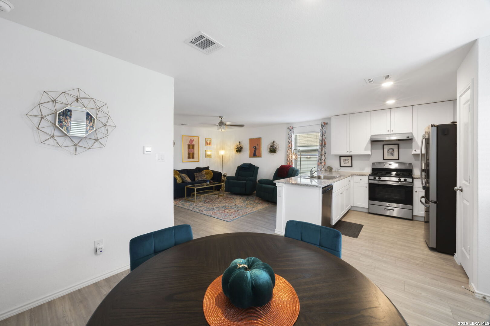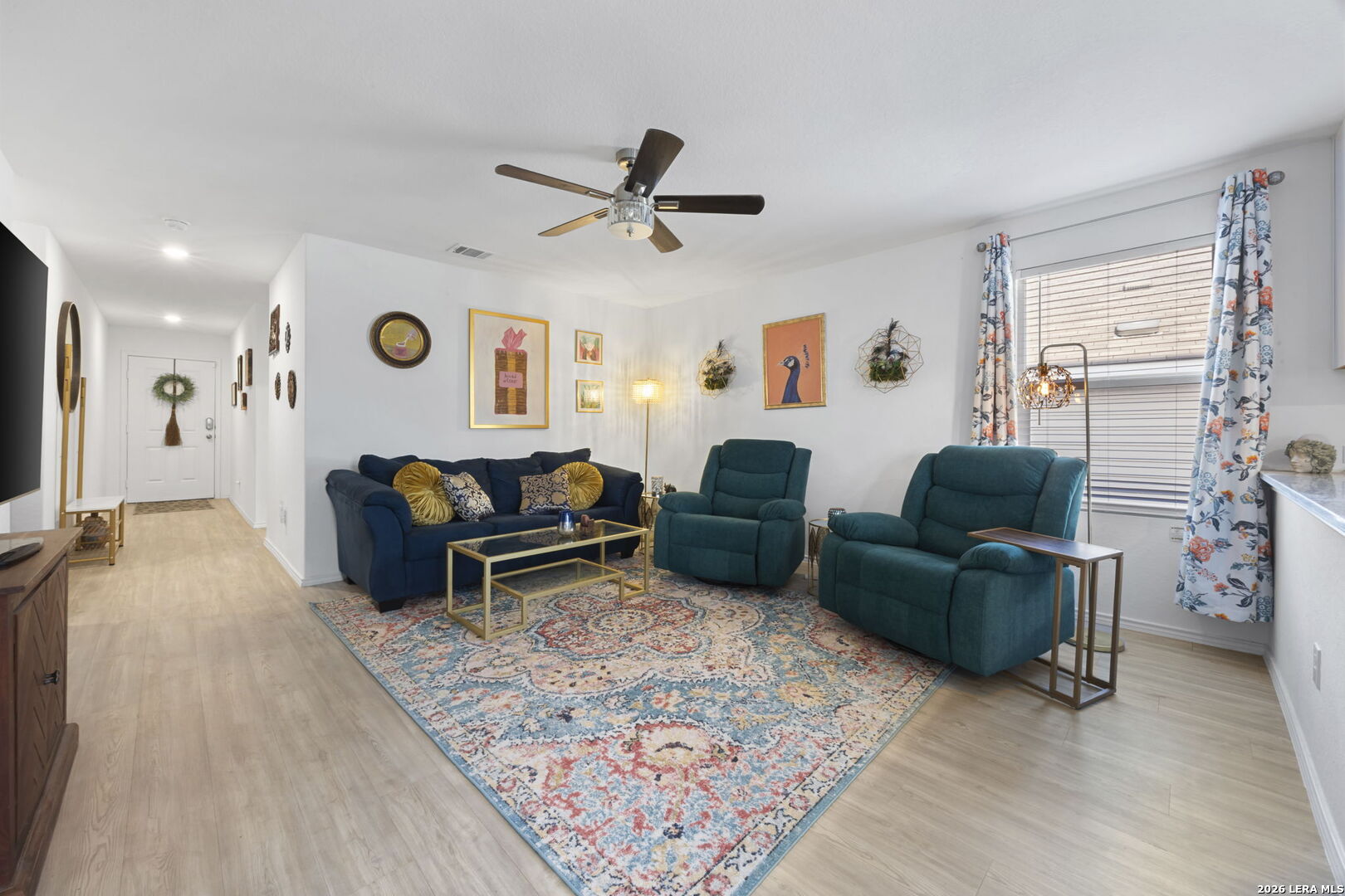 Nicely laid out 3 bedroom, 2 bath residence offering a functional and comfortable layout for any family. Enjoy open concept living, kitchen and dining room combo that offers great flow for entertaining, family time and daily living. The kitchen features granite counter tops, gas cooking and SS appliances. The bedrooms are thoughtfully tucked away to the side of the home, while the primary suite is privately located off the dining area. You will be blown away with the space available in the backyard. Well taken care of lawn and ready to make it your own. Nestled in a safe, family friendly community with walking trails, basketball court, two parks for the littles, catch and release fishing pond, cluster mailboxes, friendly neighbors and much more provided with your HOA. Lower taxes for Comal County. Few short miles from shopping and restaurants. Short drive to some of the most quaint and sought after hill country towns. You must visit this neighborhood to see just how great it is.