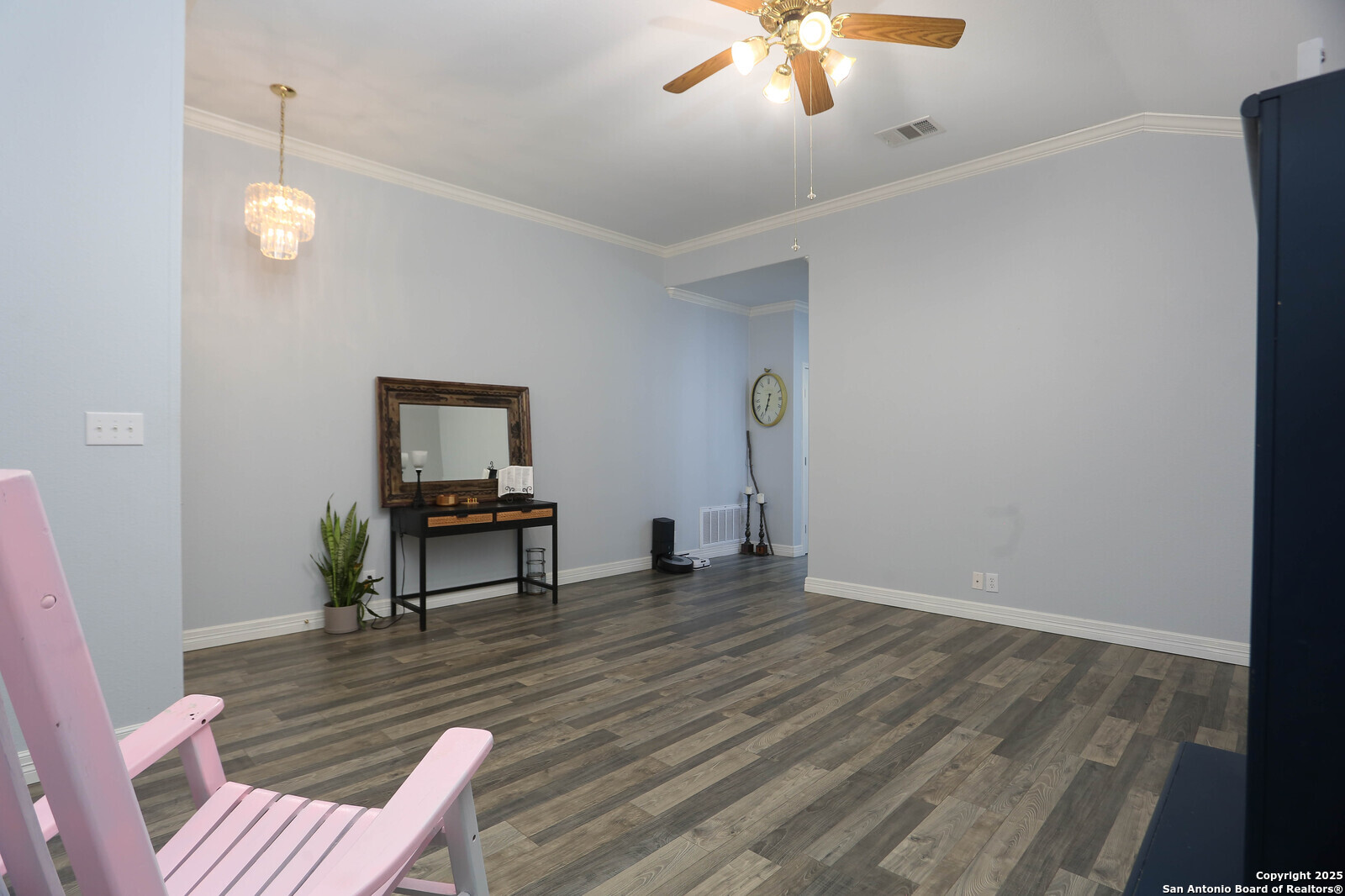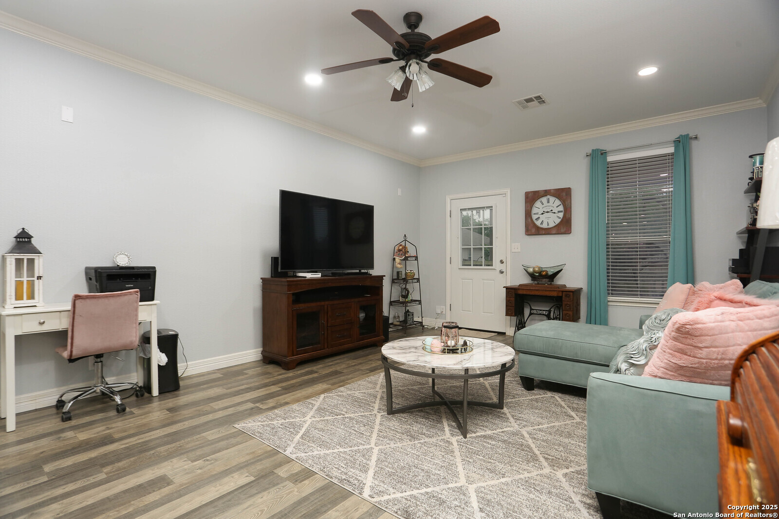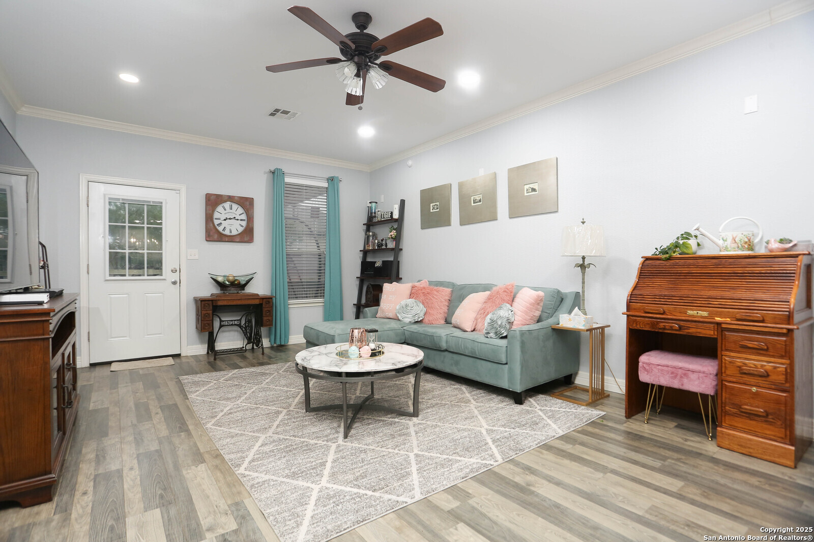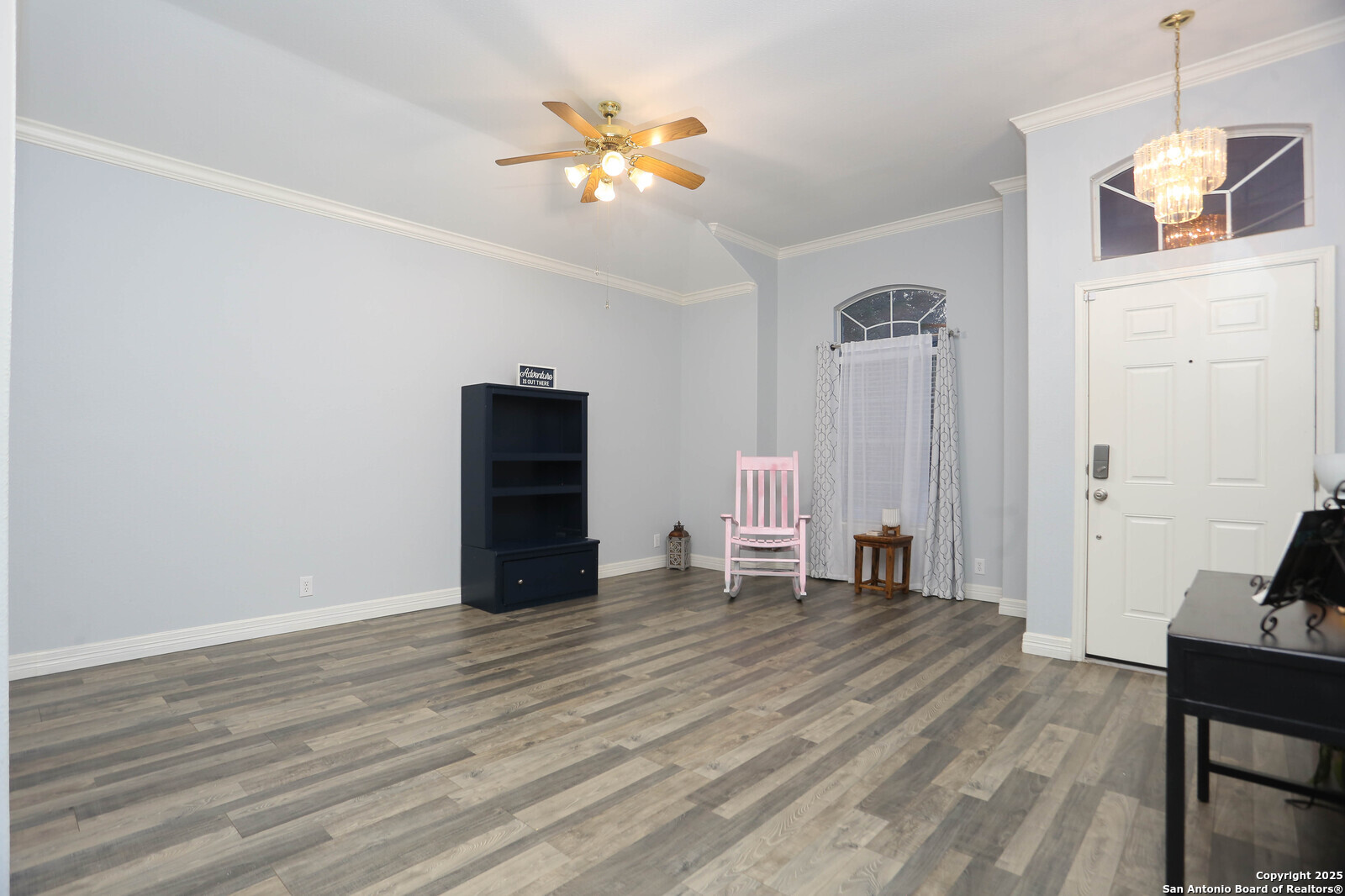 DUENO A DUENO - SELLER FINANCE Step into comfort and convenience with this beautifully maintained single-story home in the desirable Blue Rock Springs subdivision. Built in 2006 by D.R. Horton, this 1,837 sq. ft. residence offers 3 bedrooms, 2 bathrooms, and a 2-car garage, all designed for comfortable living and entertaining. The open-concept layout is enhanced by crown molding throughout, providing a touch of elegance. Enjoy easy-to-maintain flooring with no carpeting, and a kitchen equipped with two pantries for ample storage. The master suite includes a quiet sitting area, a large walk-in closet, a stand-up shower, and a garden tub for relaxation. Outside, mature trees in the front yard offer privacy and shade, while the backyard is ready for your personal touch, with space for a storage shed to keep things organized. This home is offered with seller financing, making it an excellent opportunity for buyers looking to purchase directly from the homeowner without the need for traditional bank loans. The application process is straightforward, focusing on employment and income verification. Don't miss out on this chance to own a home in a well-established neighborhood with flexible financing options. Schedule a viewing and take the first step toward making this house your new home.