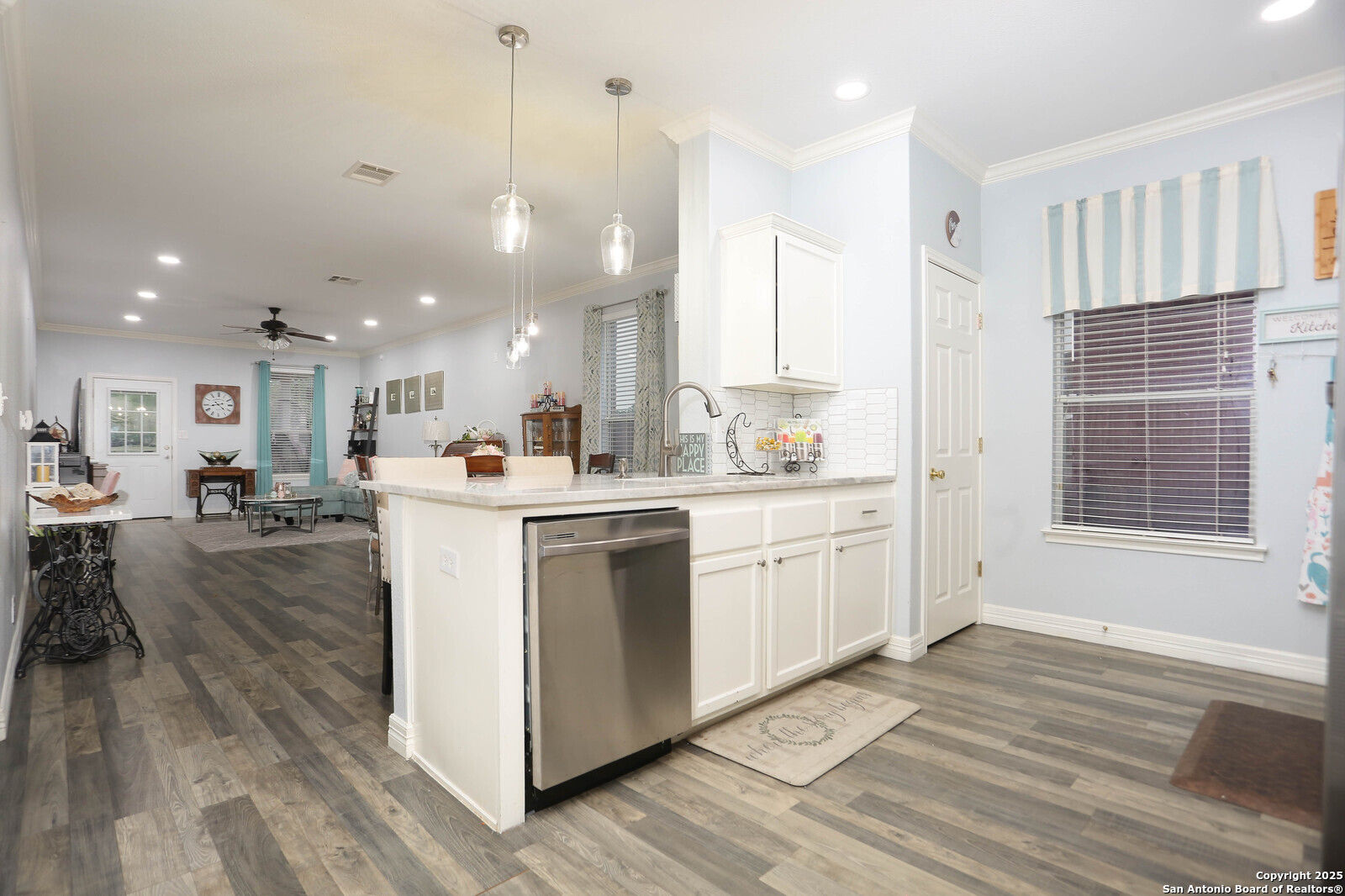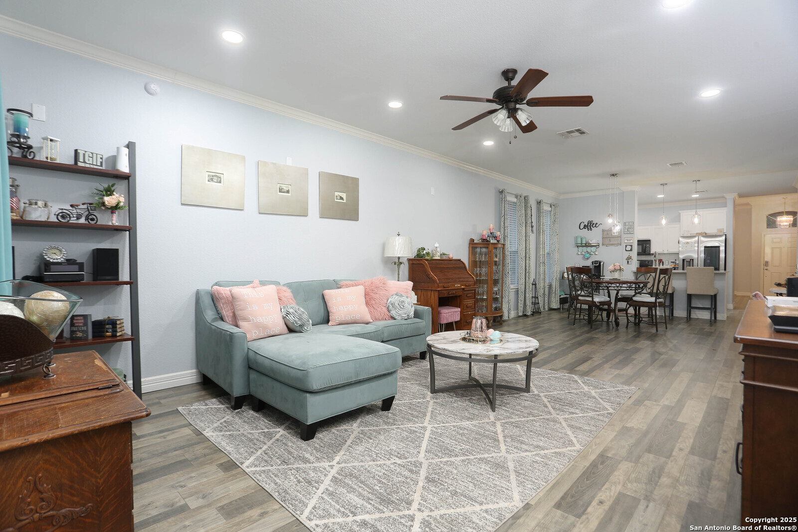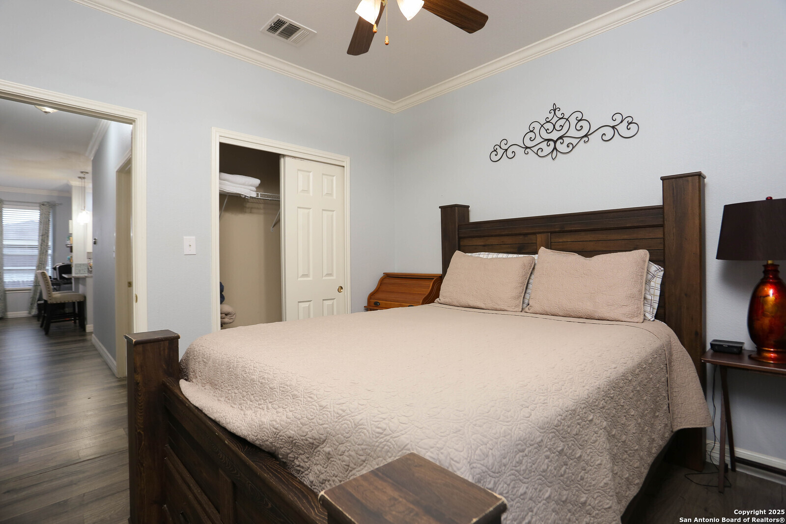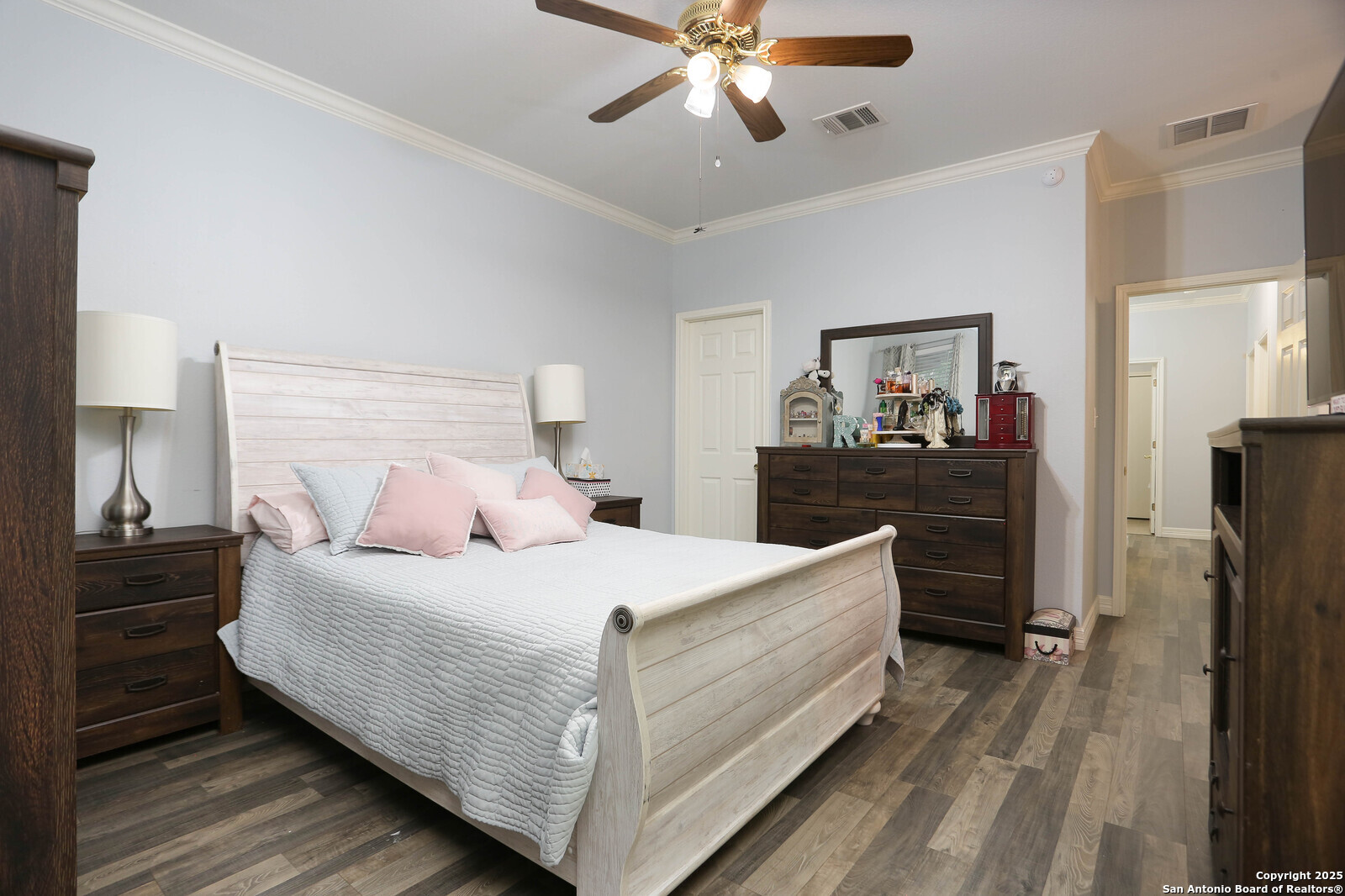 DUENO A DUENO - SELLER FINANCE Step into comfort and convenience with this beautifully maintained single-story home in the desirable Blue Rock Springs subdivision. Built in 2006 by D.R. Horton, this 1,837 sq. ft. residence offers 3 bedrooms, 2 bathrooms, and a 2-car garage, all designed for comfortable living and entertaining. The open-concept layout is enhanced by crown molding throughout, providing a touch of elegance. Enjoy easy-to-maintain flooring with no carpeting, and a kitchen equipped with two pantries for ample storage. The master suite includes a quiet sitting area, a large walk-in closet, a stand-up shower, and a garden tub for relaxation. Outside, mature trees in the front yard offer privacy and shade, while the backyard is ready for your personal touch, with space for a storage shed to keep things organized. This home is offered with seller financing, making it an excellent opportunity for buyers looking to purchase directly from the homeowner without the need for traditional bank loans. The application process is straightforward, focusing on employment and income verification. Don't miss out on this chance to own a home in a well-established neighborhood with flexible financing options. Schedule a viewing and take the first step toward making this house your new home.