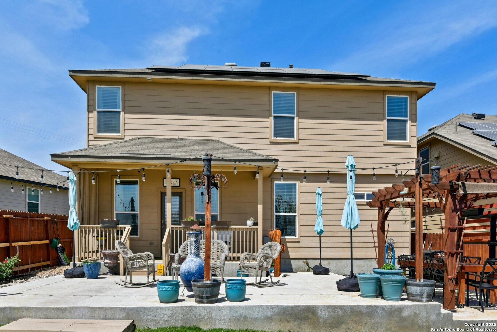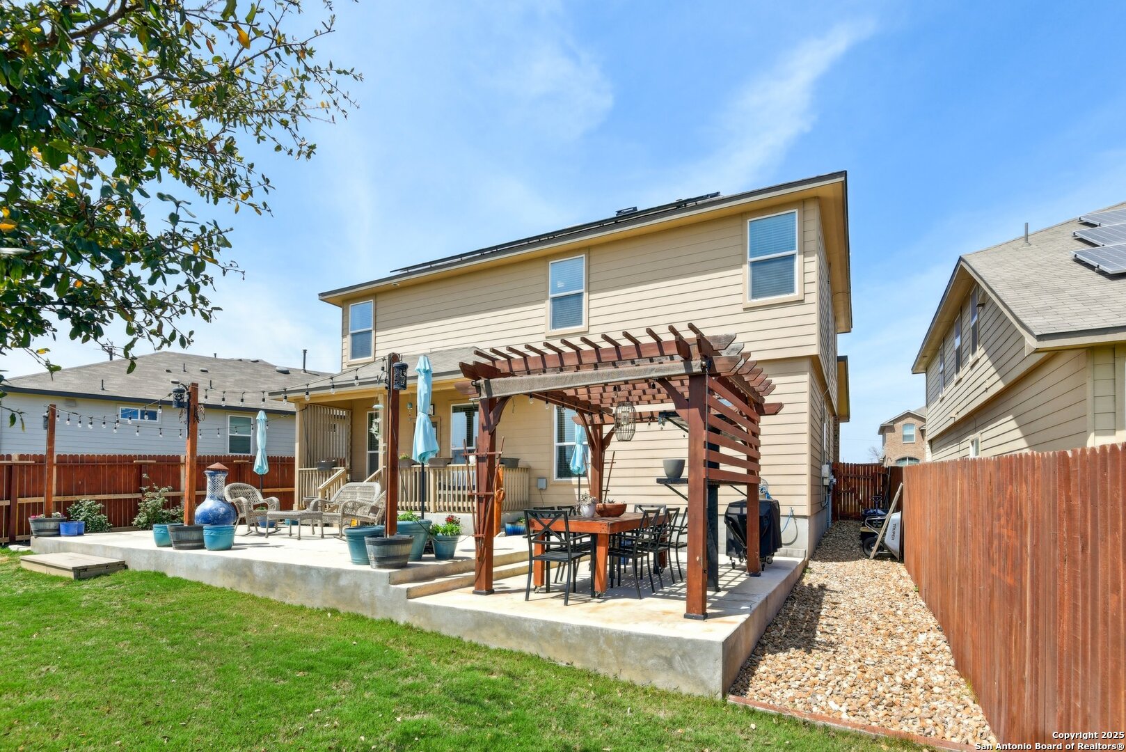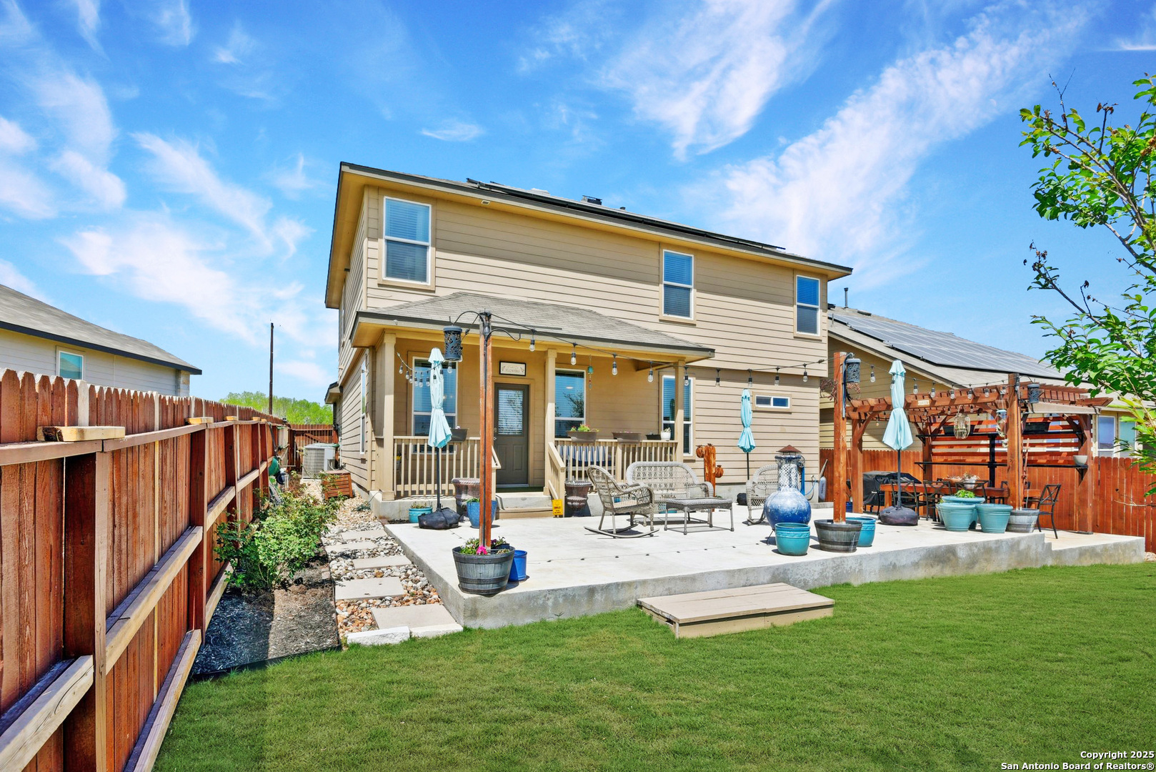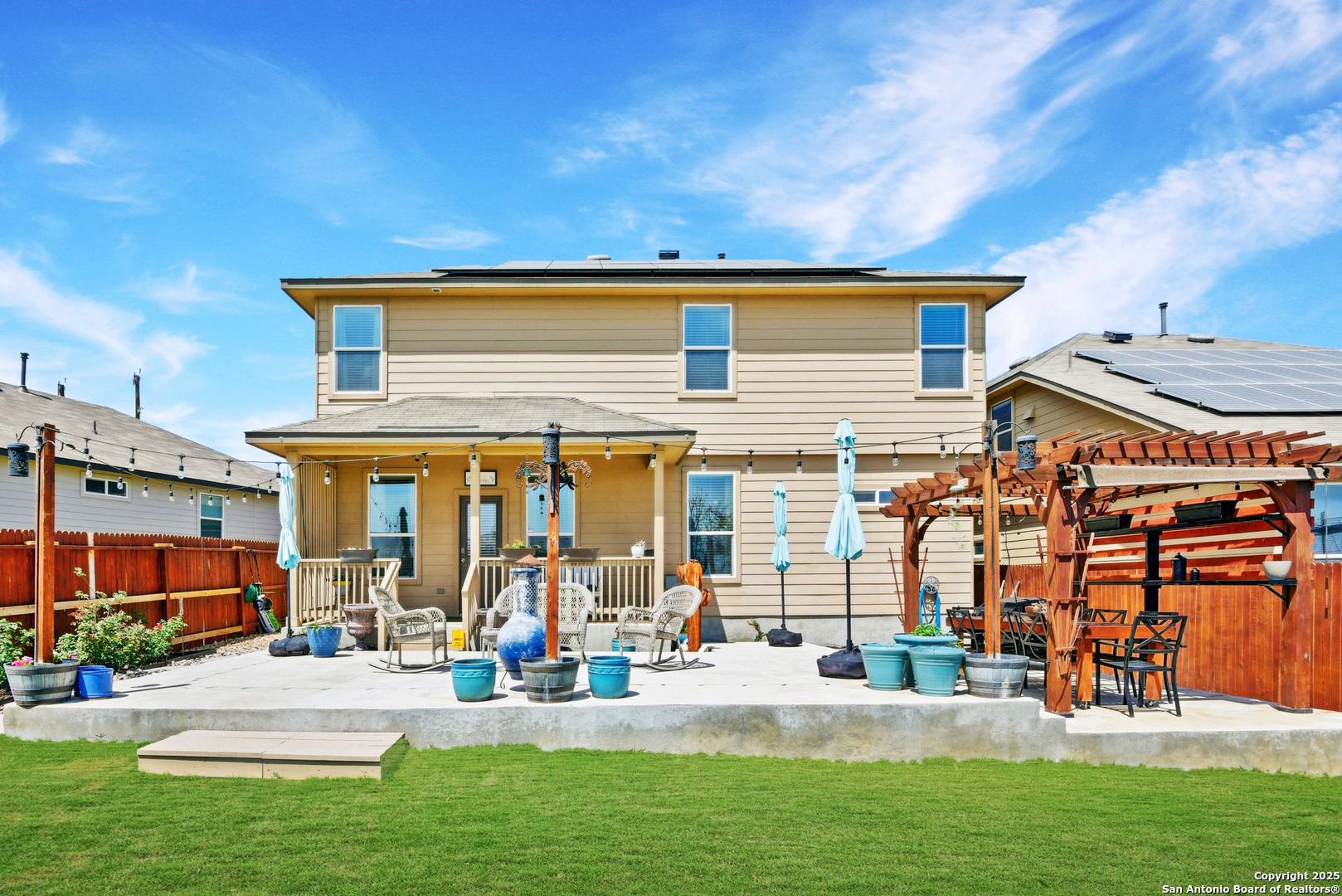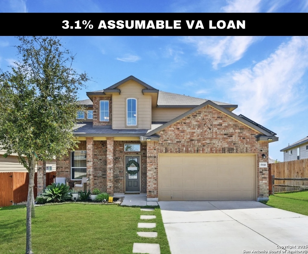 *3.1 ASSUMABLE VA LOAN*This beautifully maintained home features 5 bedrooms, 2.5 baths, and 2,555 sq ft of thoughtfully designed living space. From the moment you step into the soaring open-to-above entryway, you'll feel right at home. The spacious first-floor primary suite offers a private retreat with a cozy sitting area, a well-appointed bathroom, and a large walk-in closet. The open-concept living room flows seamlessly into the upgraded kitchen with stylish backsplash, modern finishes, and a separate dining area perfect for hosting. Just off the dining area, step out onto the extended concrete patio featuring a gorgeous pergola - the perfect spot for outdoor entertaining or quiet evenings under the stars. Upstairs, a generous loft offers flexible space for a game room, media area, or home office. This home is loaded with updates, including custom barn doors, accent walls, upgraded flooring, and more - and it shows like a model home. As an added extra, solar panels are included, reduce your energy bills. Situated in a resort-style community with incredible amenities: pool, splash pad, fitness center, basketball court, dog park, and more. Located off I-90 and close to Lackland AFB.