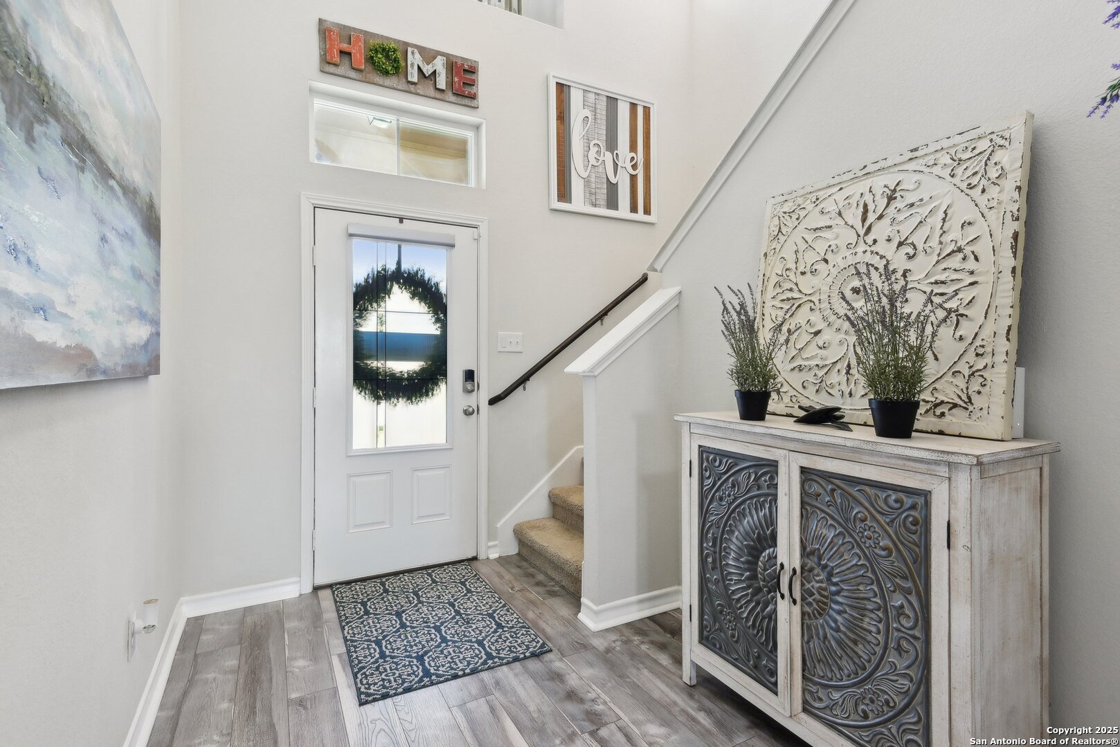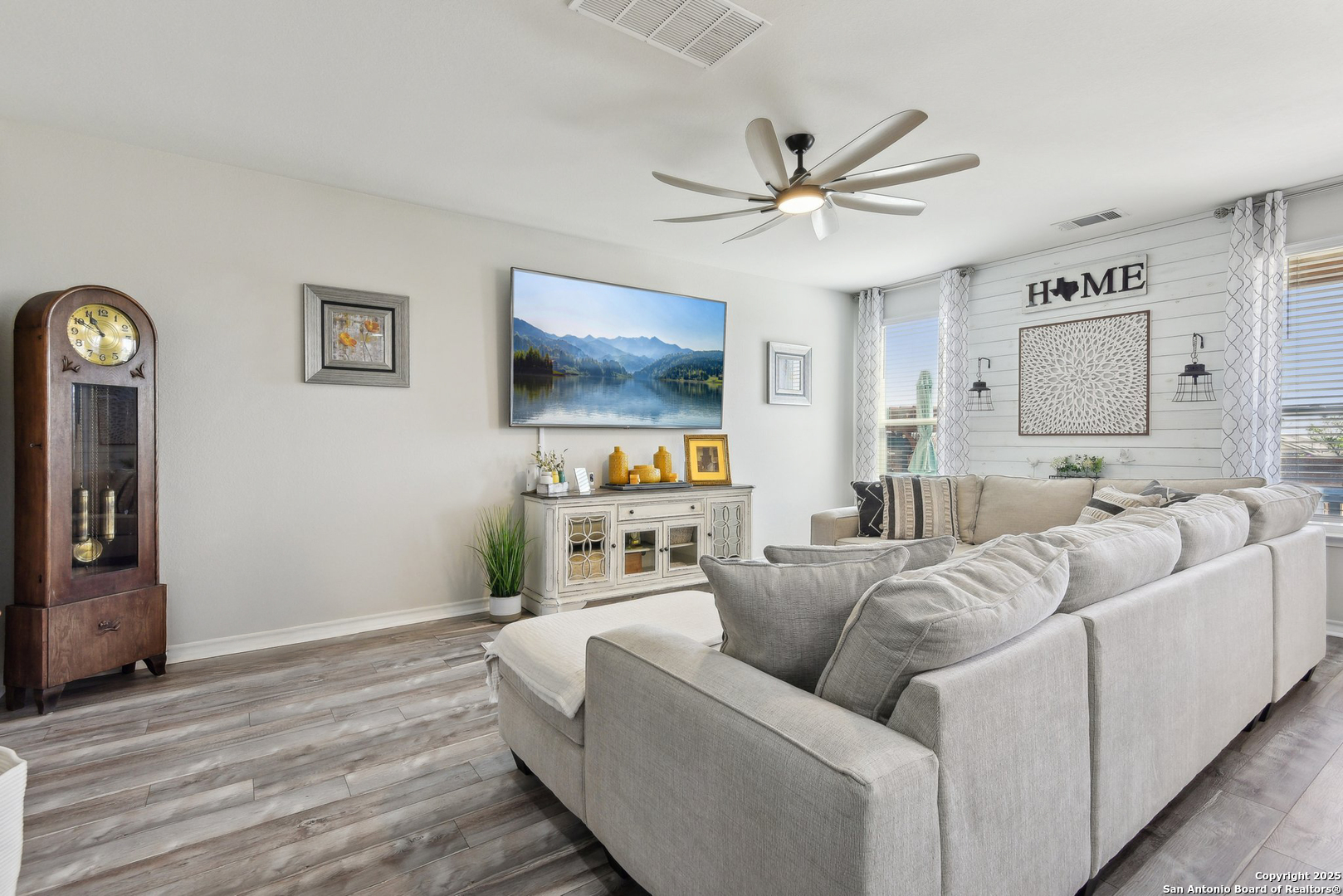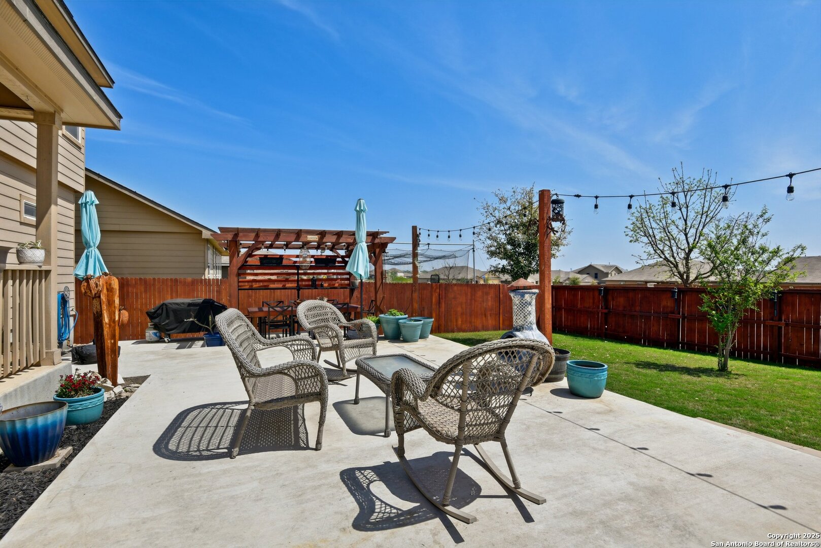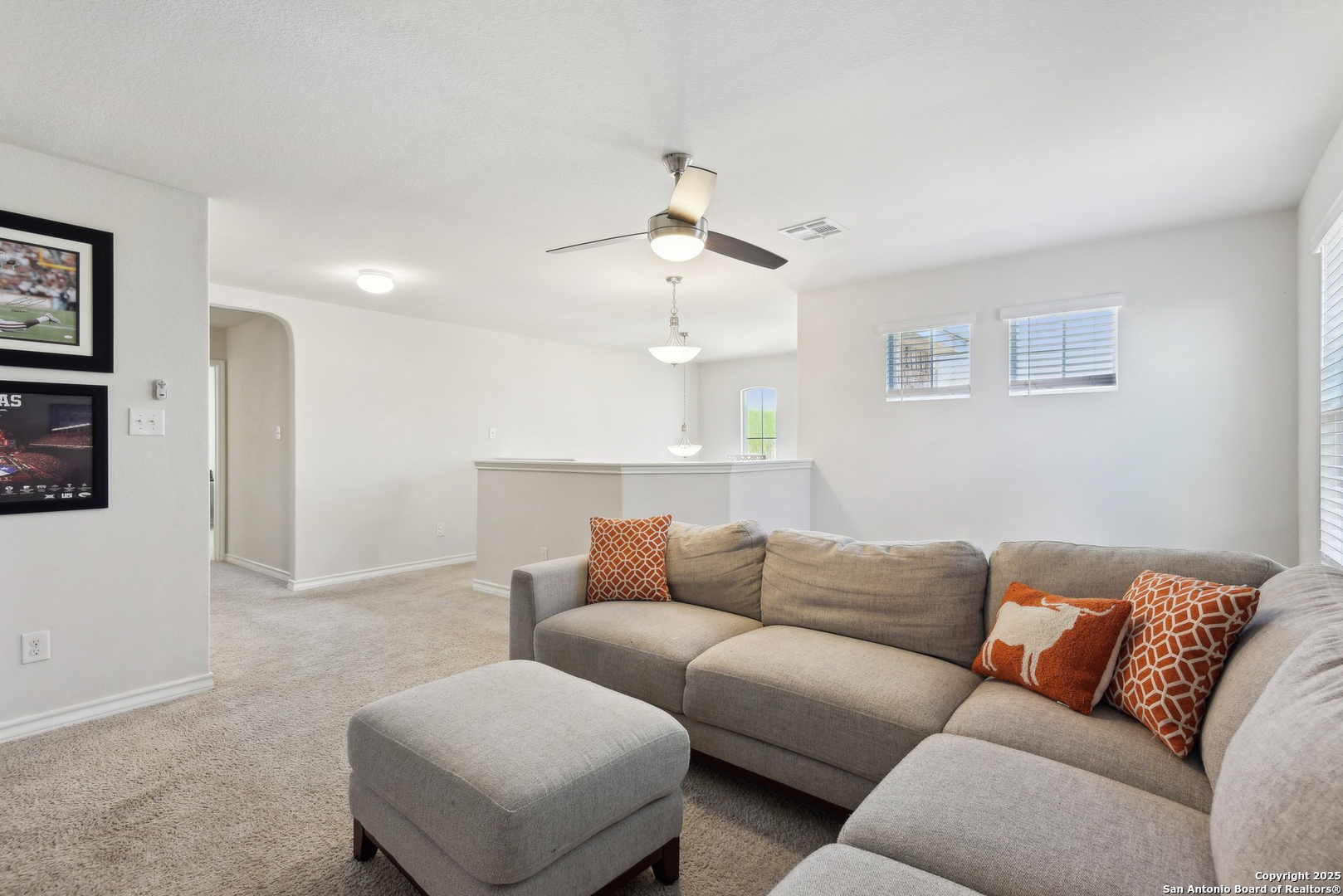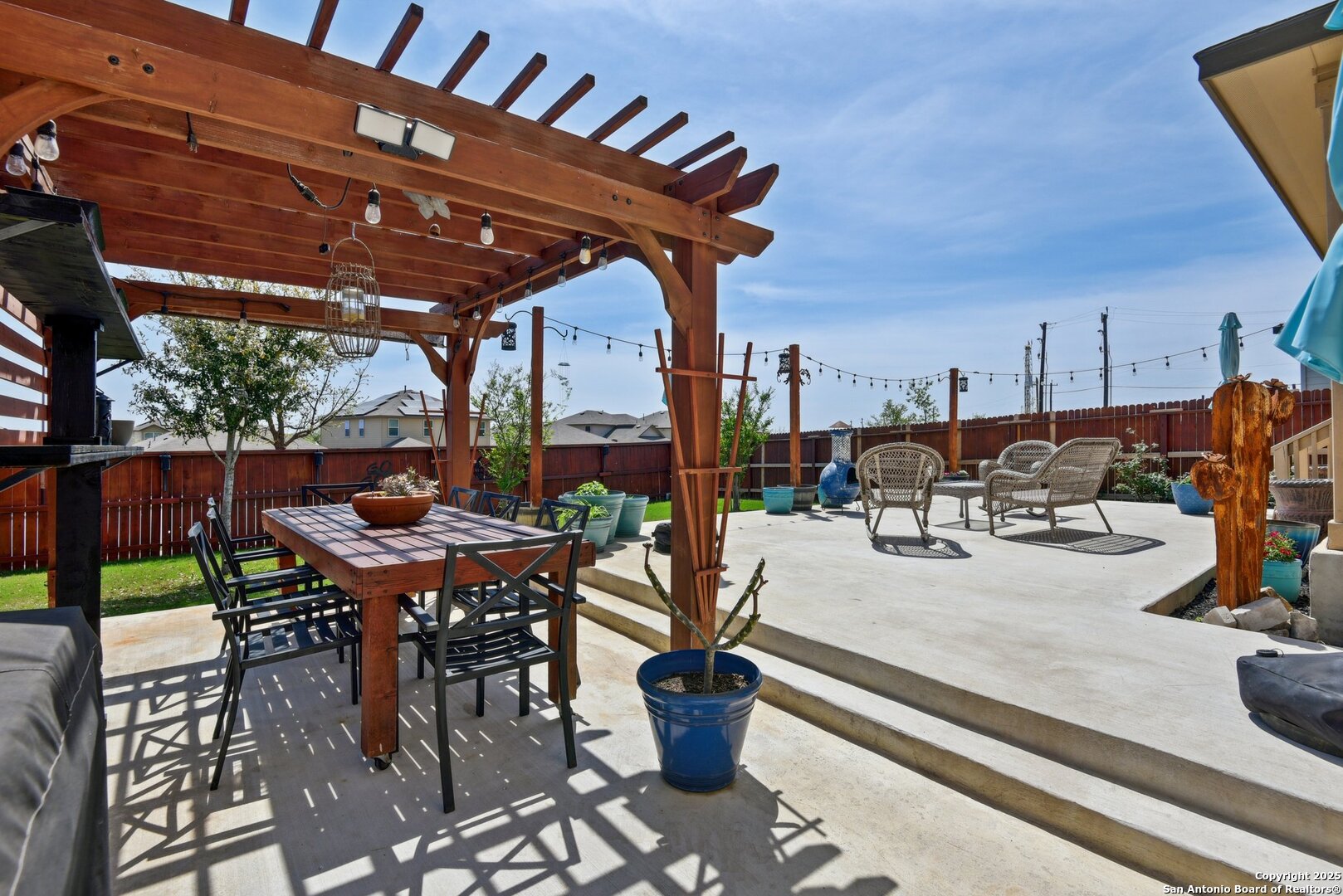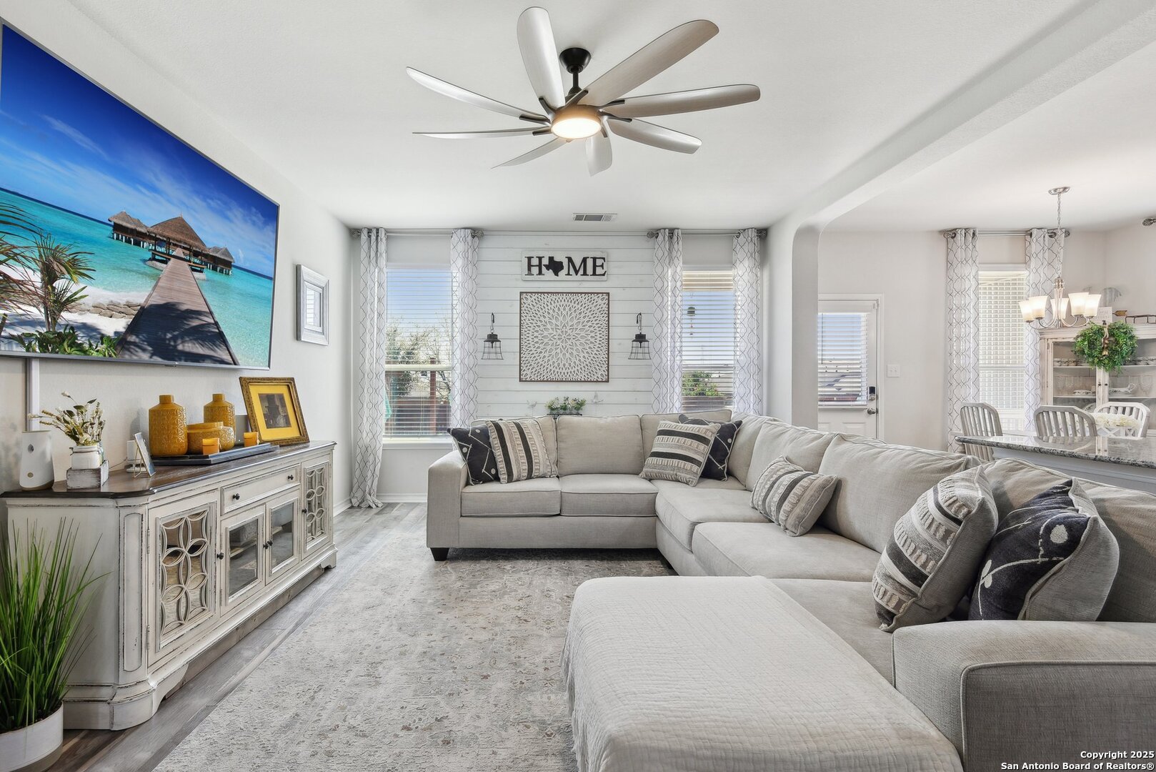 *3.1 ASSUMABLE VA LOAN*This beautifully maintained home features 5 bedrooms, 2.5 baths, and 2,555 sq ft of thoughtfully designed living space. From the moment you step into the soaring open-to-above entryway, you'll feel right at home. The spacious first-floor primary suite offers a private retreat with a cozy sitting area, a well-appointed bathroom, and a large walk-in closet. The open-concept living room flows seamlessly into the upgraded kitchen with stylish backsplash, modern finishes, and a separate dining area perfect for hosting. Just off the dining area, step out onto the extended concrete patio featuring a gorgeous pergola - the perfect spot for outdoor entertaining or quiet evenings under the stars. Upstairs, a generous loft offers flexible space for a game room, media area, or home office. This home is loaded with updates, including custom barn doors, accent walls, upgraded flooring, and more - and it shows like a model home. As an added extra, solar panels are included, reduce your energy bills. Situated in a resort-style community with incredible amenities: pool, splash pad, fitness center, basketball court, dog park, and more. Located off I-90 and close to Lackland AFB.
