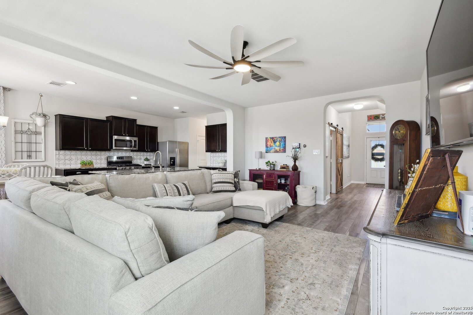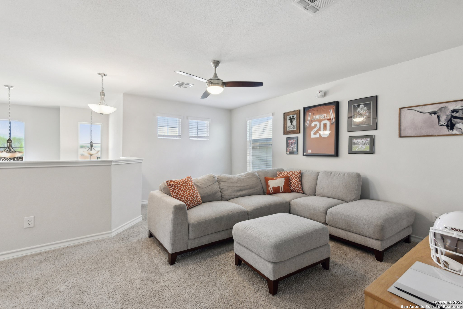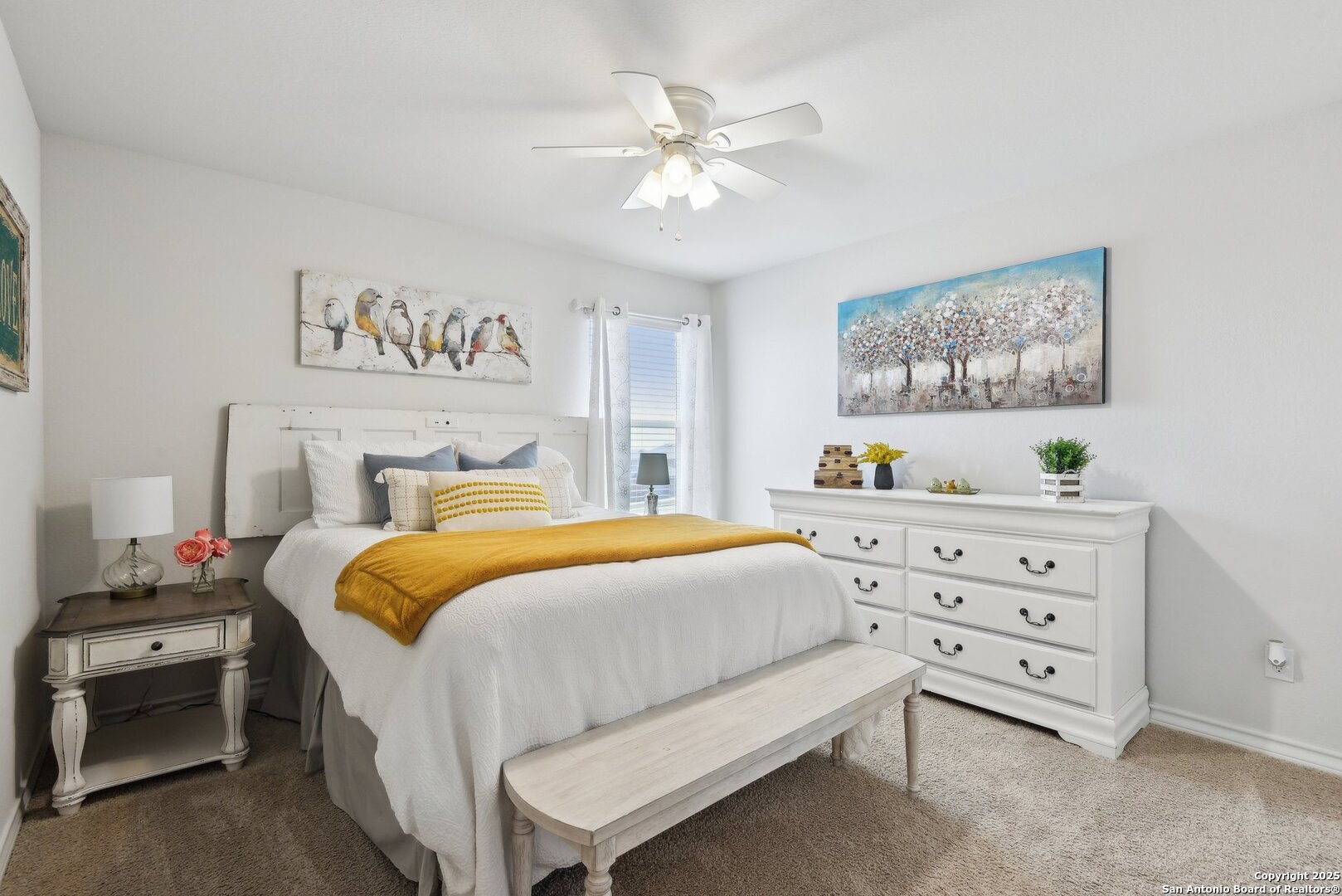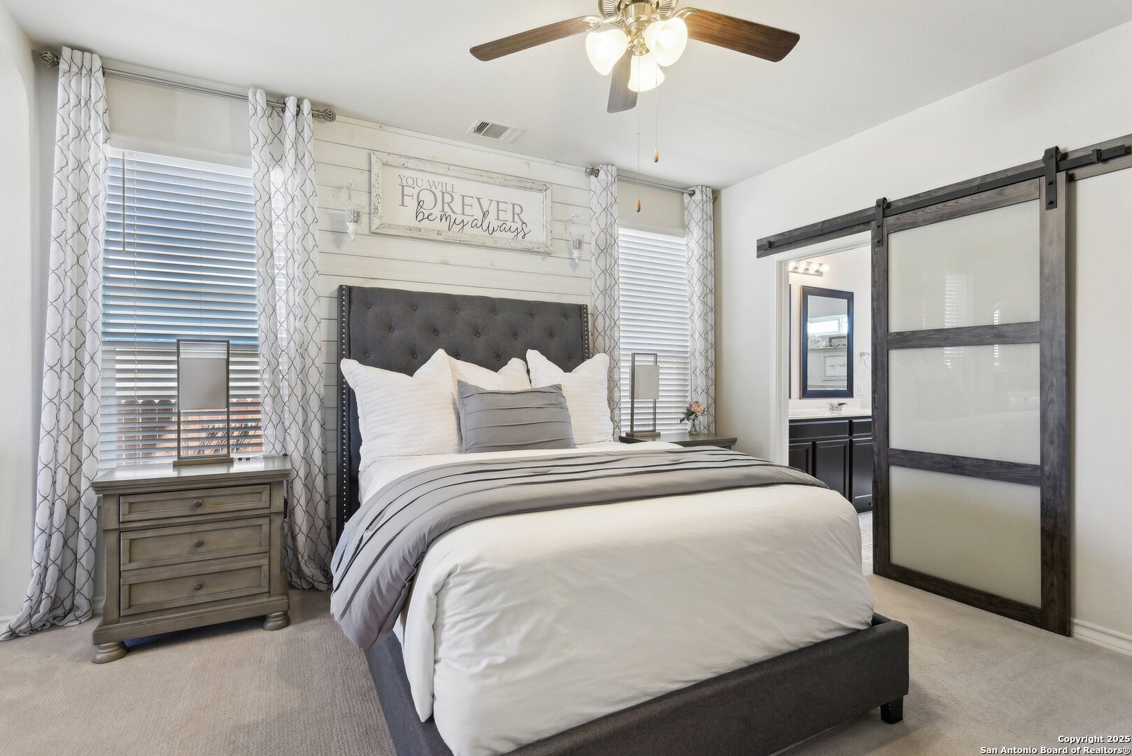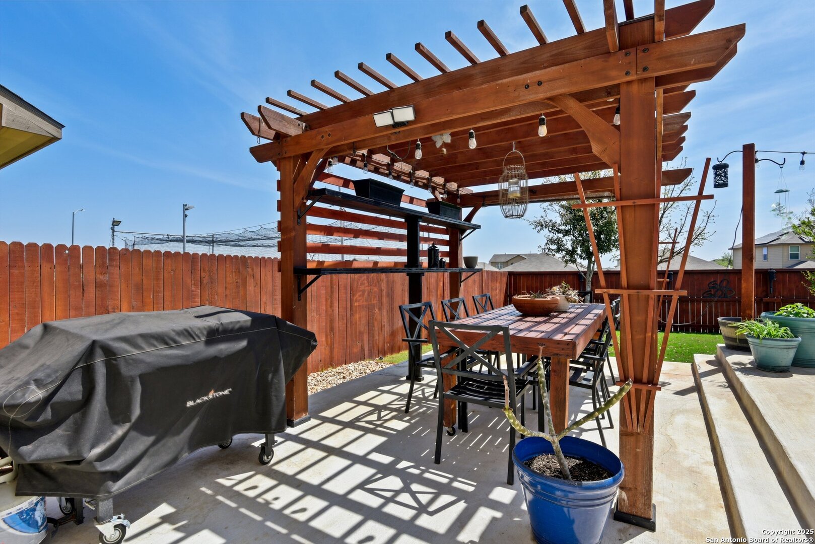 *3.1 ASSUMABLE VA LOAN*This beautifully maintained home features 5 bedrooms, 2.5 baths, and 2,555 sq ft of thoughtfully designed living space. From the moment you step into the soaring open-to-above entryway, you'll feel right at home. The spacious first-floor primary suite offers a private retreat with a cozy sitting area, a well-appointed bathroom, and a large walk-in closet. The open-concept living room flows seamlessly into the upgraded kitchen with stylish backsplash, modern finishes, and a separate dining area perfect for hosting. Just off the dining area, step out onto the extended concrete patio featuring a gorgeous pergola - the perfect spot for outdoor entertaining or quiet evenings under the stars. Upstairs, a generous loft offers flexible space for a game room, media area, or home office. This home is loaded with updates, including custom barn doors, accent walls, upgraded flooring, and more - and it shows like a model home. As an added extra, solar panels are included, reduce your energy bills. Situated in a resort-style community with incredible amenities: pool, splash pad, fitness center, basketball court, dog park, and more. Located off I-90 and close to Lackland AFB.