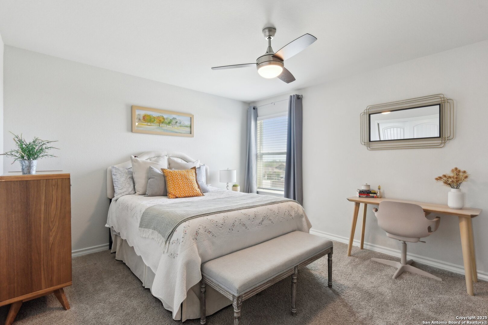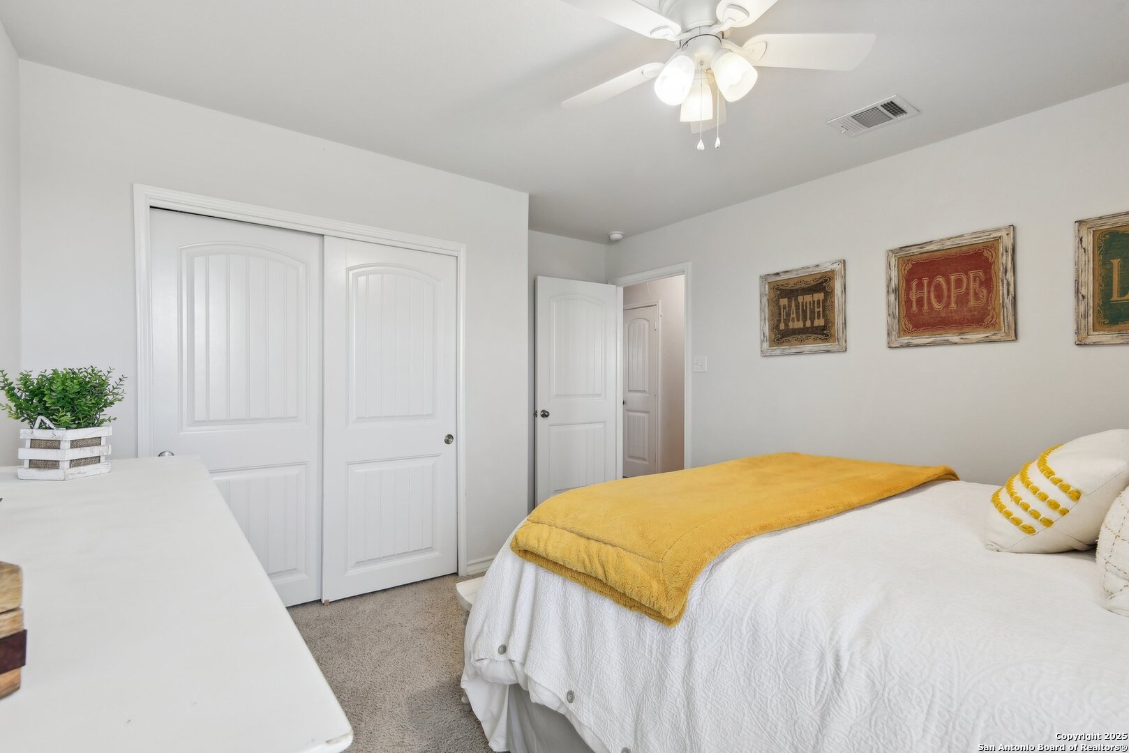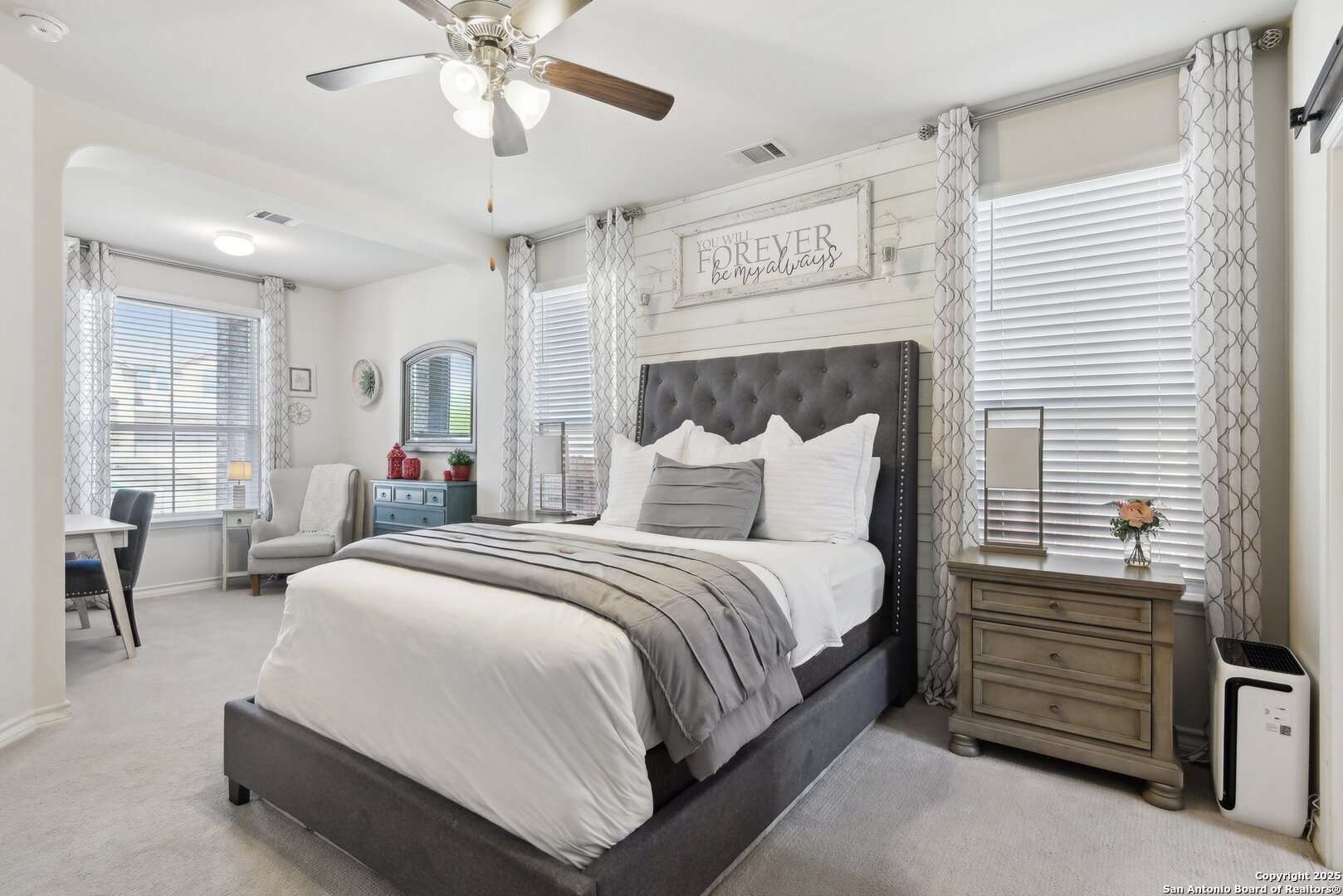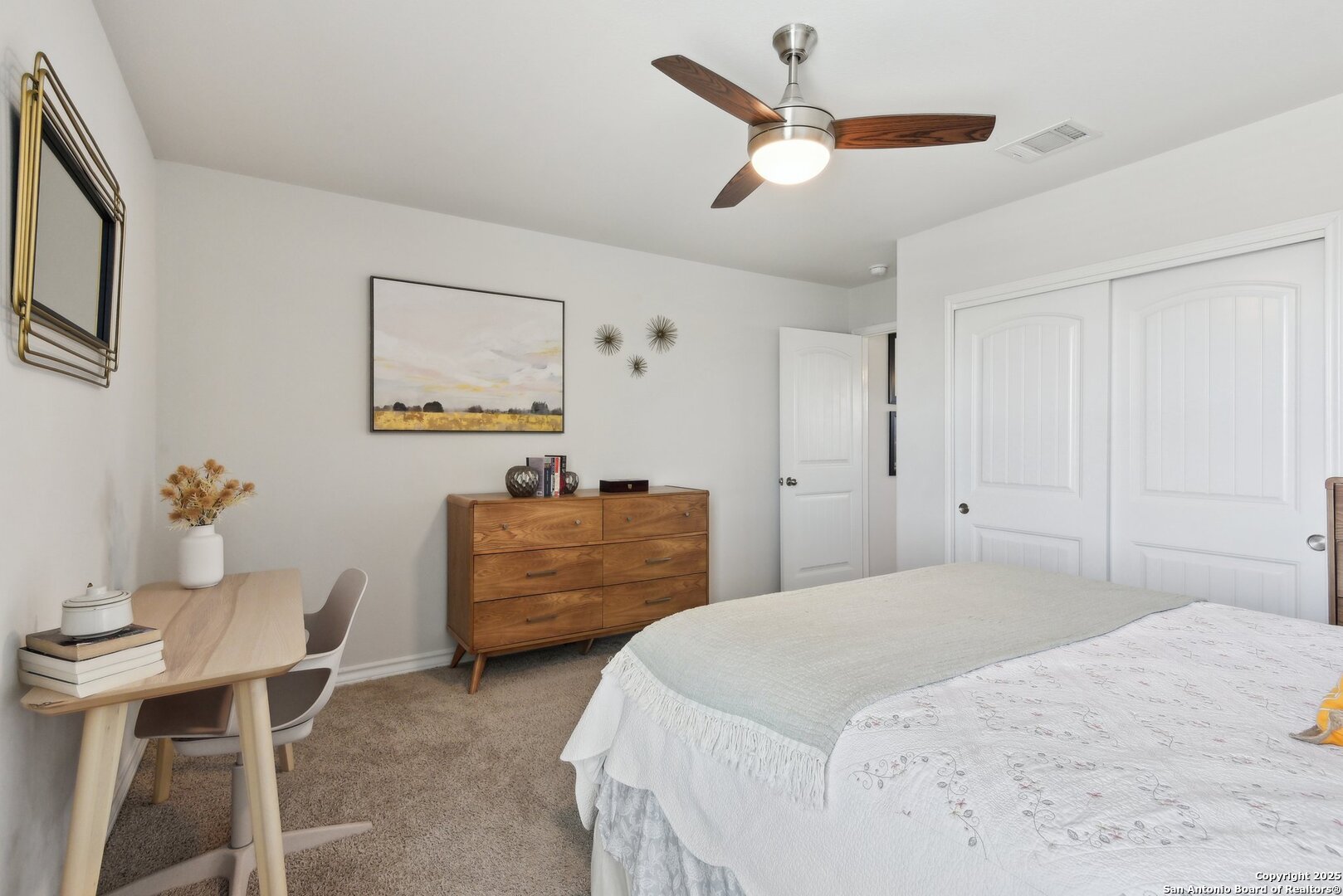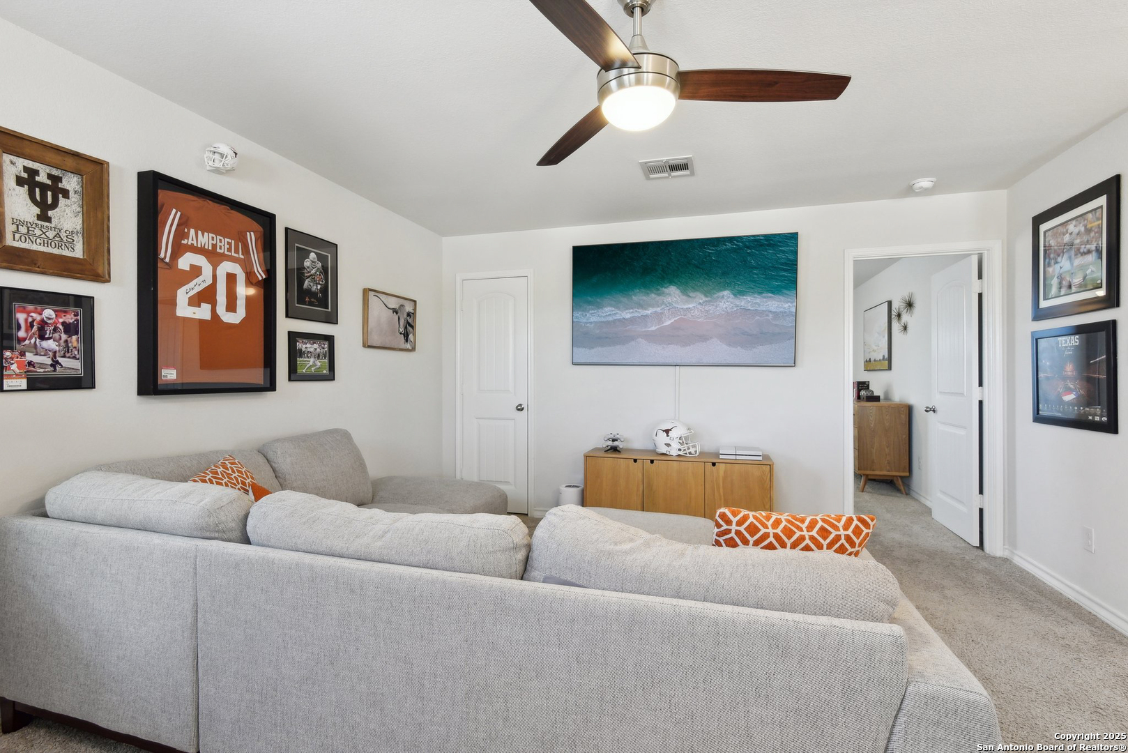 *3.1 ASSUMABLE VA LOAN*This beautifully maintained home features 5 bedrooms, 2.5 baths, and 2,555 sq ft of thoughtfully designed living space. From the moment you step into the soaring open-to-above entryway, you'll feel right at home. The spacious first-floor primary suite offers a private retreat with a cozy sitting area, a well-appointed bathroom, and a large walk-in closet. The open-concept living room flows seamlessly into the upgraded kitchen with stylish backsplash, modern finishes, and a separate dining area perfect for hosting. Just off the dining area, step out onto the extended concrete patio featuring a gorgeous pergola - the perfect spot for outdoor entertaining or quiet evenings under the stars. Upstairs, a generous loft offers flexible space for a game room, media area, or home office. This home is loaded with updates, including custom barn doors, accent walls, upgraded flooring, and more - and it shows like a model home. As an added extra, solar panels are included, reduce your energy bills. Situated in a resort-style community with incredible amenities: pool, splash pad, fitness center, basketball court, dog park, and more. Located off I-90 and close to Lackland AFB.