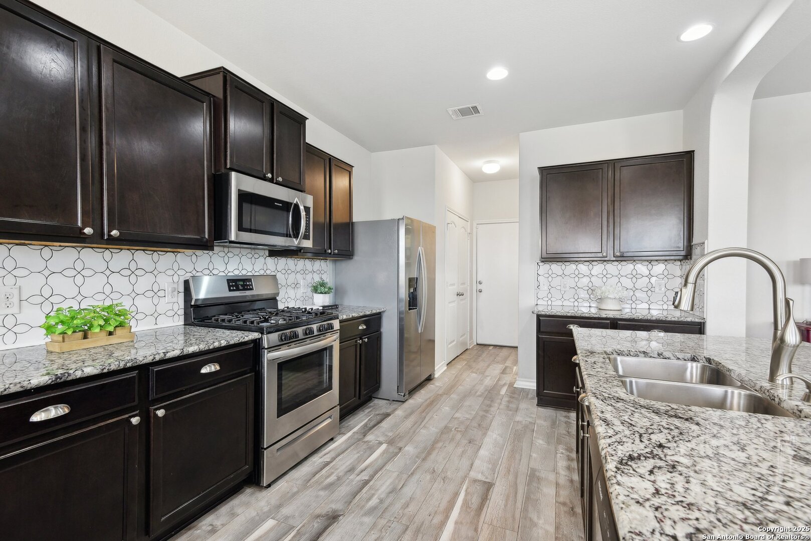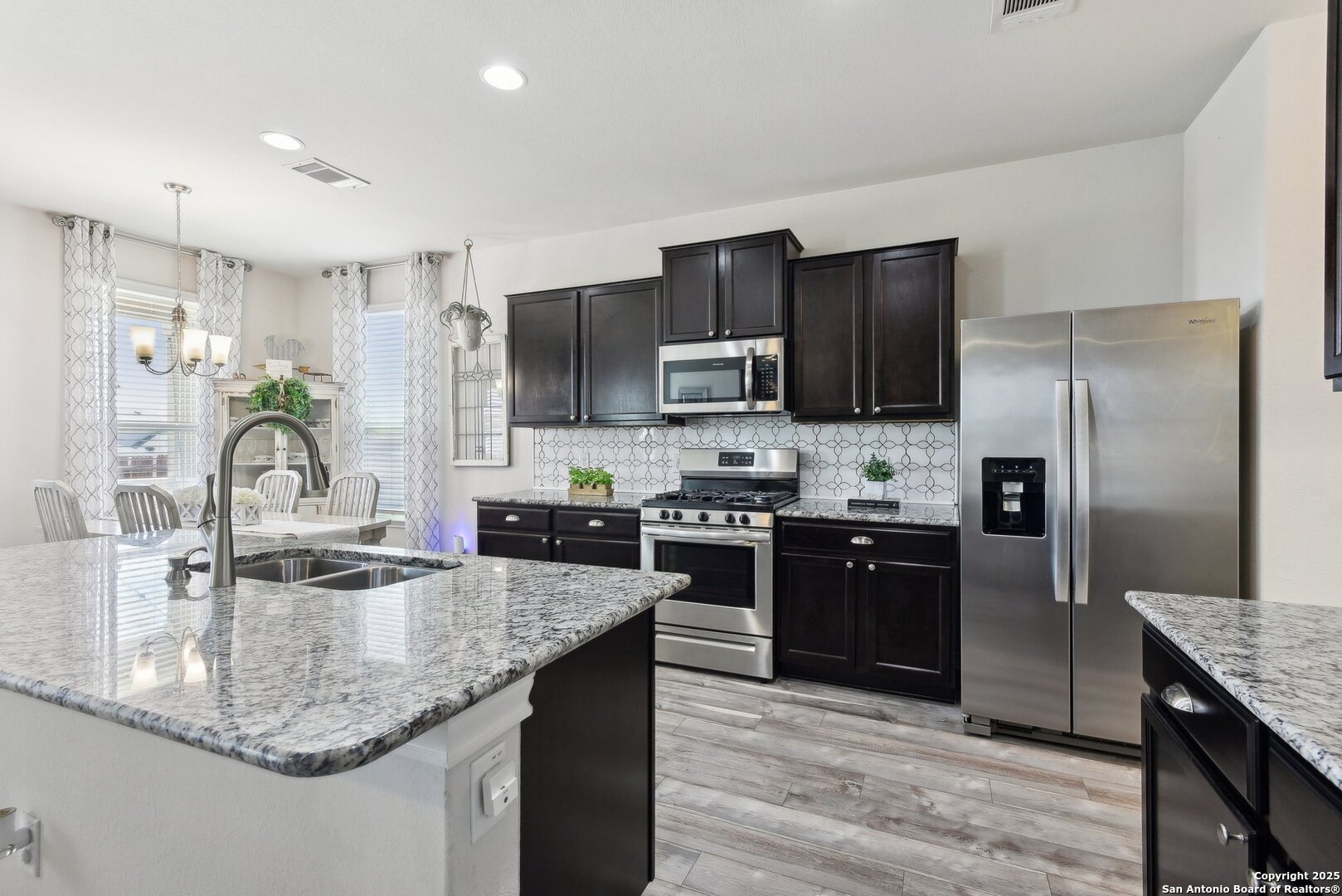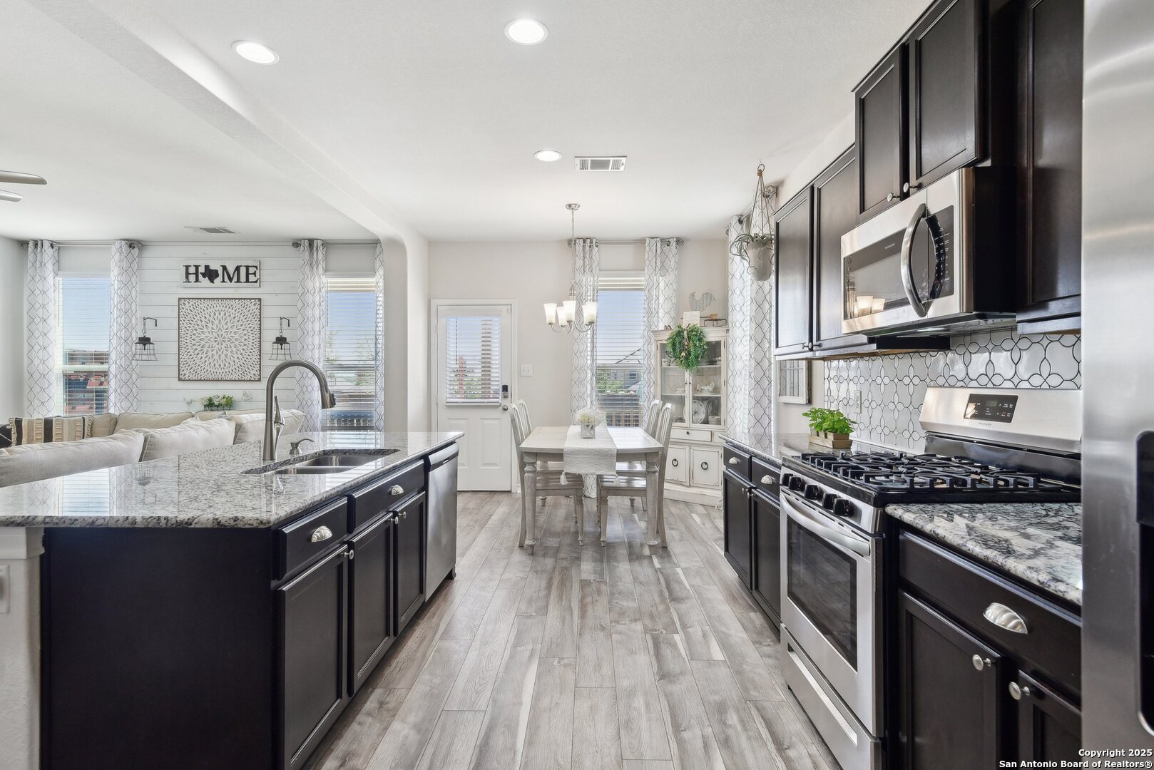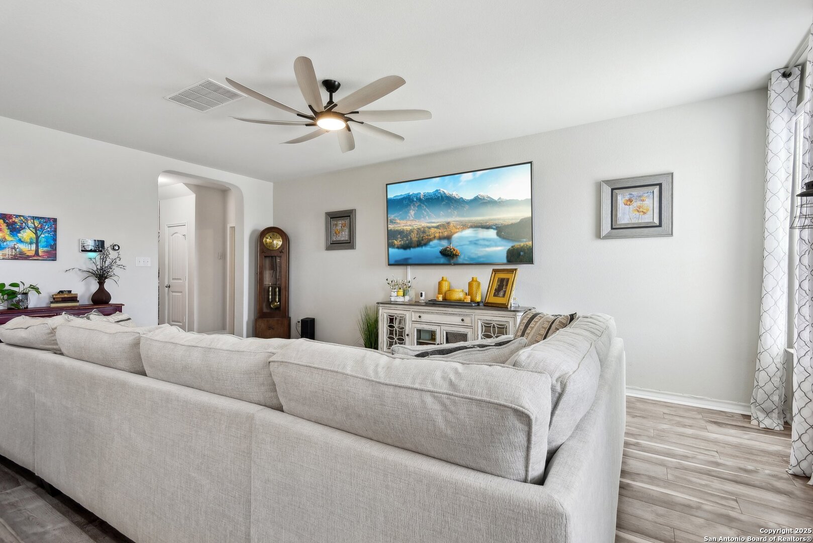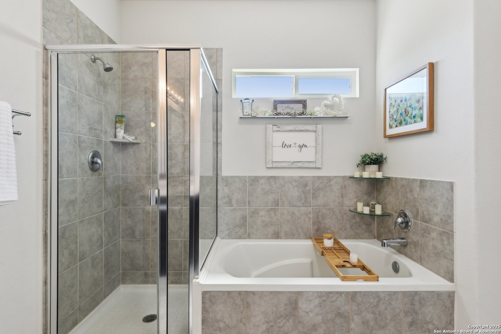 *3.1 ASSUMABLE VA LOAN*This beautifully maintained home features 5 bedrooms, 2.5 baths, and 2,555 sq ft of thoughtfully designed living space. From the moment you step into the soaring open-to-above entryway, you'll feel right at home. The spacious first-floor primary suite offers a private retreat with a cozy sitting area, a well-appointed bathroom, and a large walk-in closet. The open-concept living room flows seamlessly into the upgraded kitchen with stylish backsplash, modern finishes, and a separate dining area perfect for hosting. Just off the dining area, step out onto the extended concrete patio featuring a gorgeous pergola - the perfect spot for outdoor entertaining or quiet evenings under the stars. Upstairs, a generous loft offers flexible space for a game room, media area, or home office. This home is loaded with updates, including custom barn doors, accent walls, upgraded flooring, and more - and it shows like a model home. As an added extra, solar panels are included, reduce your energy bills. Situated in a resort-style community with incredible amenities: pool, splash pad, fitness center, basketball court, dog park, and more. Located off I-90 and close to Lackland AFB.
