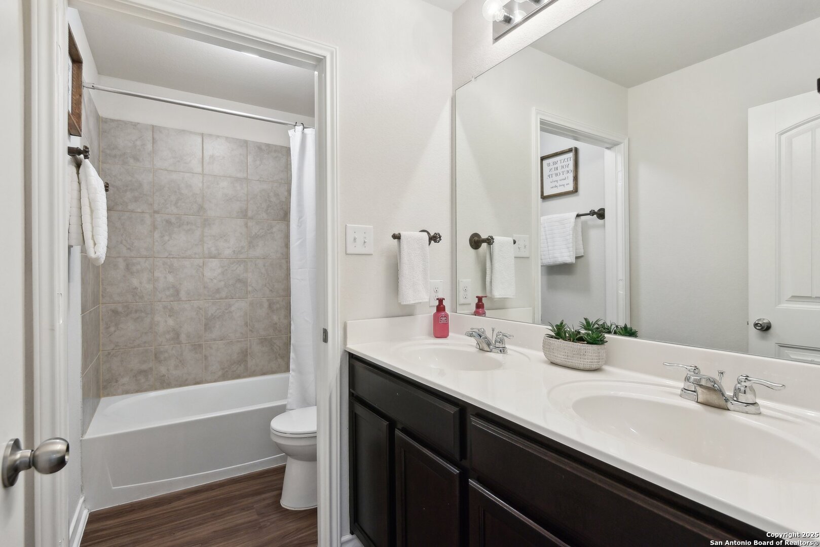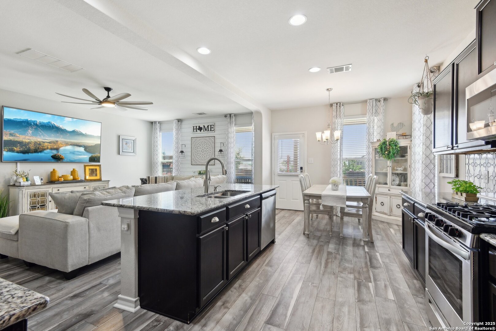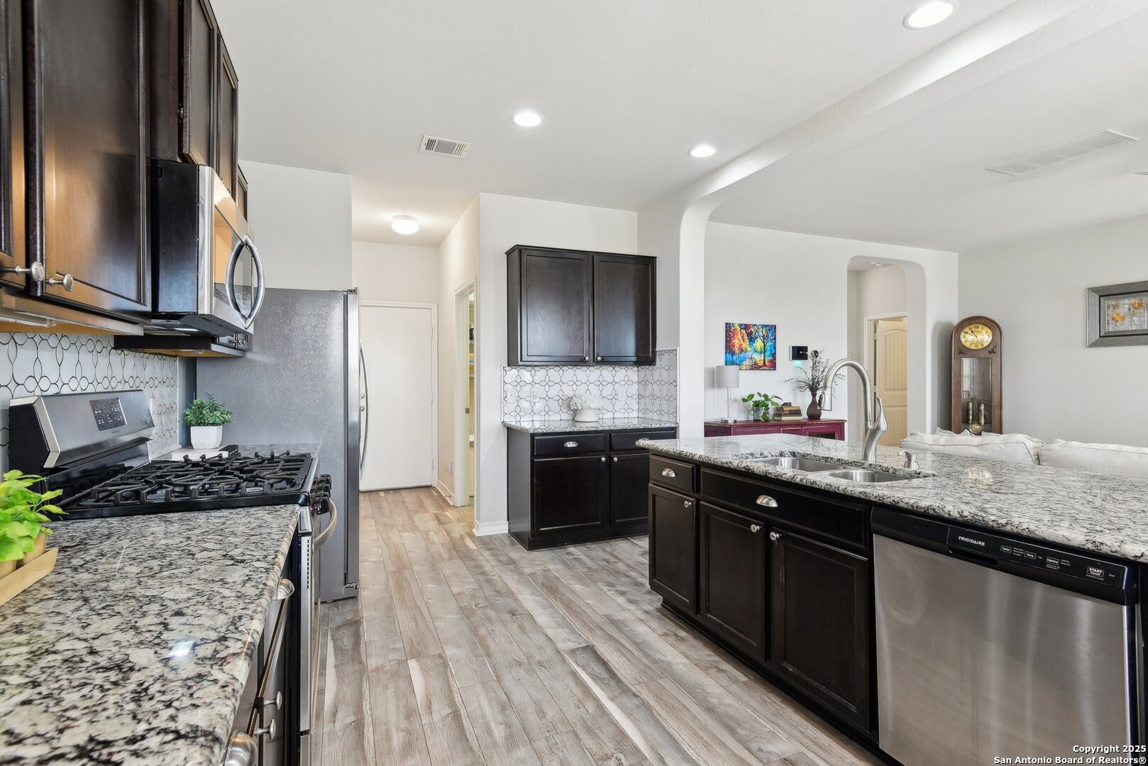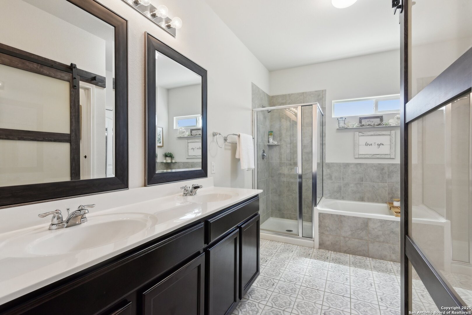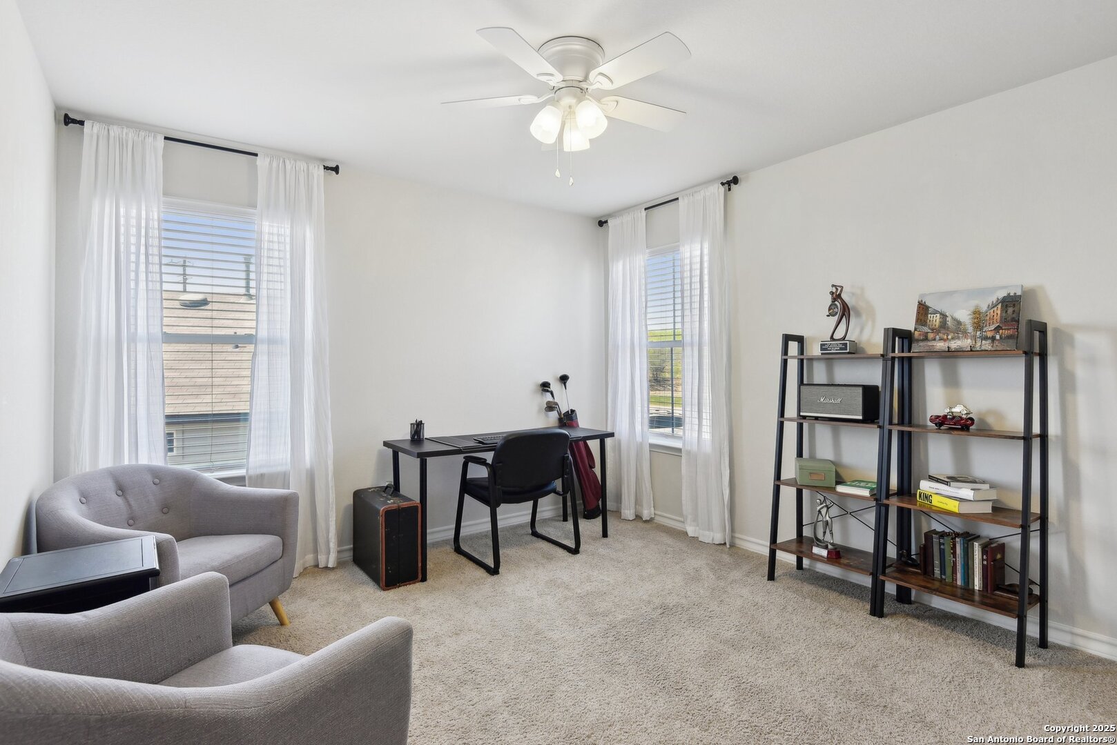 *3.1 ASSUMABLE VA LOAN*This beautifully maintained home features 5 bedrooms, 2.5 baths, and 2,555 sq ft of thoughtfully designed living space. From the moment you step into the soaring open-to-above entryway, you'll feel right at home. The spacious first-floor primary suite offers a private retreat with a cozy sitting area, a well-appointed bathroom, and a large walk-in closet. The open-concept living room flows seamlessly into the upgraded kitchen with stylish backsplash, modern finishes, and a separate dining area perfect for hosting. Just off the dining area, step out onto the extended concrete patio featuring a gorgeous pergola - the perfect spot for outdoor entertaining or quiet evenings under the stars. Upstairs, a generous loft offers flexible space for a game room, media area, or home office. This home is loaded with updates, including custom barn doors, accent walls, upgraded flooring, and more - and it shows like a model home. As an added extra, solar panels are included, reduce your energy bills. Situated in a resort-style community with incredible amenities: pool, splash pad, fitness center, basketball court, dog park, and more. Located off I-90 and close to Lackland AFB.