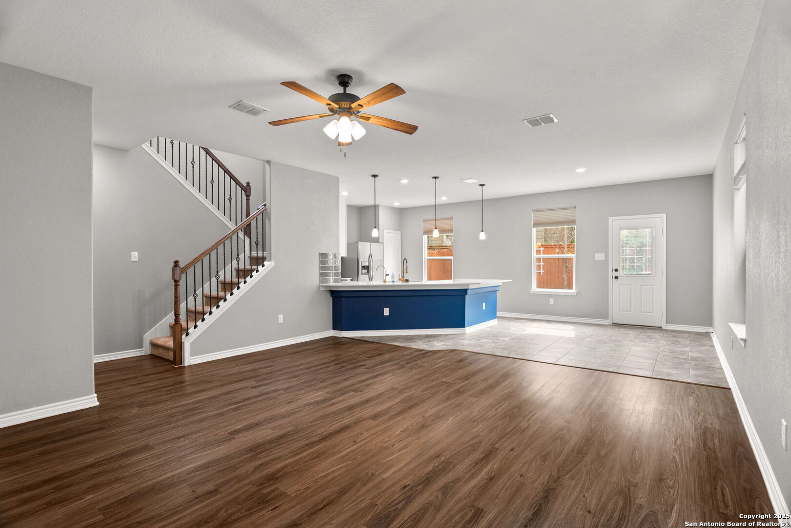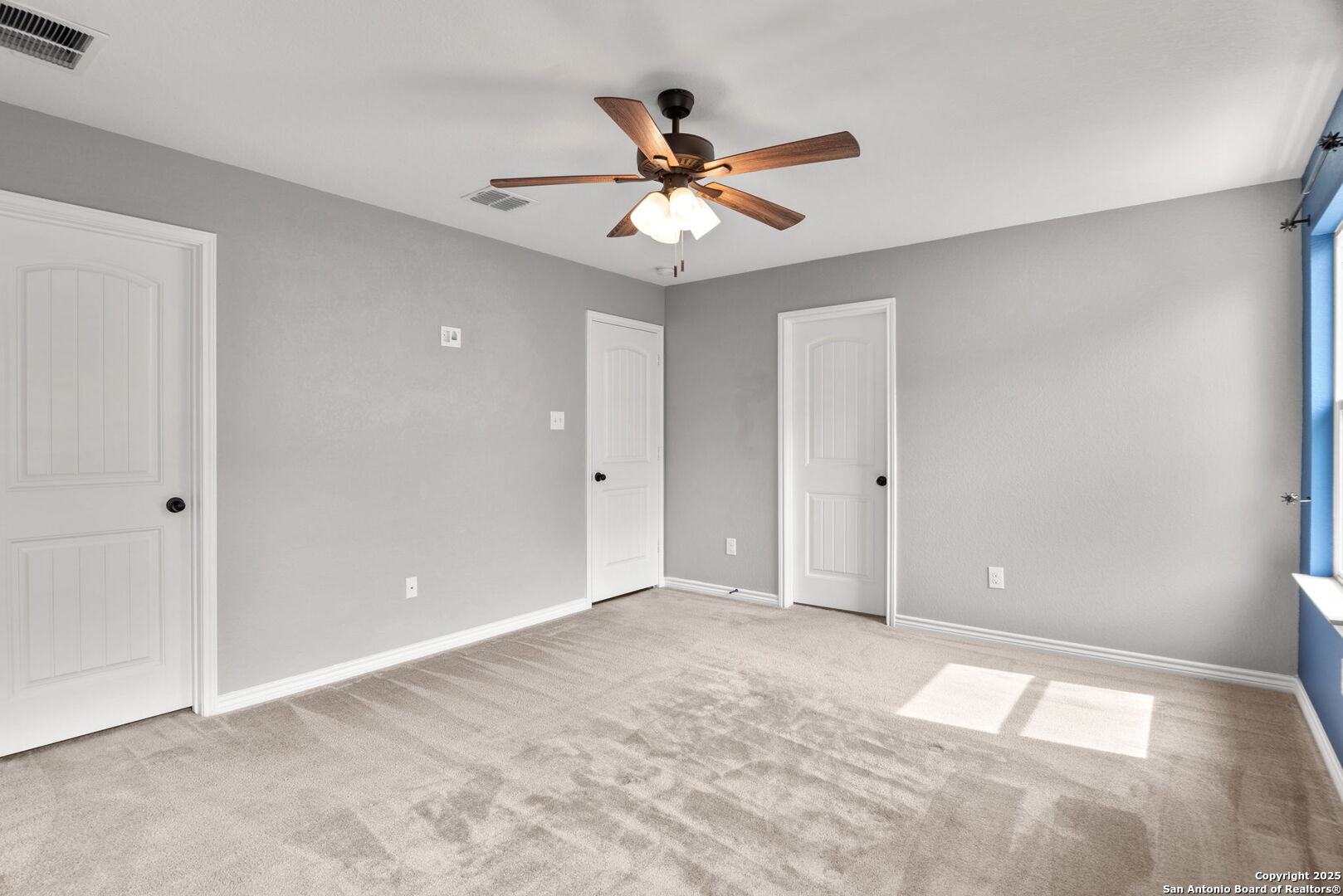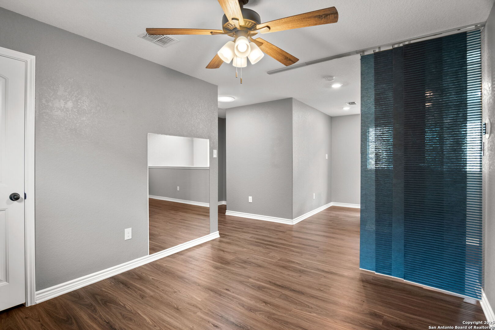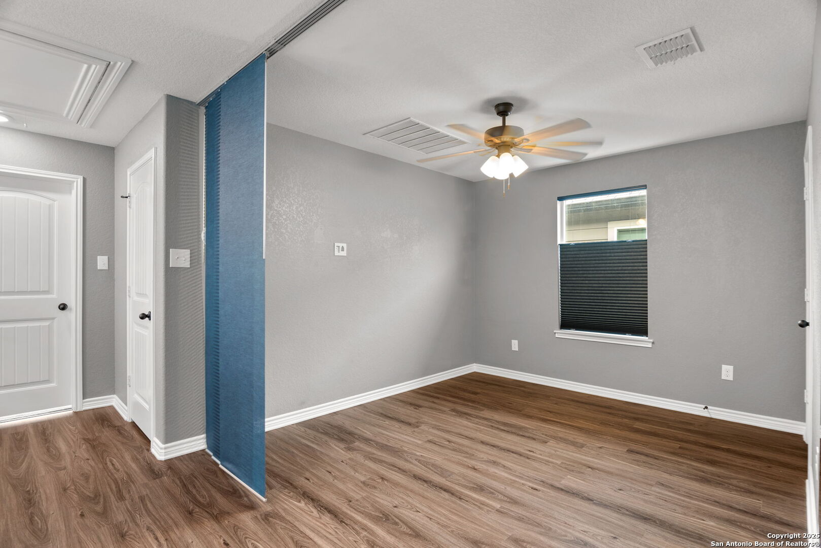 Discover this stunning two-story home in a gated Medical Center community, offering the perfect blend of privacy and convenience. The chef's kitchen showcases gleaming quartz countertops, elegant white cabinetry with gold hardware, stylish pendant lighting, and premium stainless steel appliances. Enjoy modern open-concept living with upscale flooring throughout-plush carpet in bedrooms and stairs, sleek tile in bathrooms and kitchen, and durable LVP in common areas-plus spacious rooms, including an upstairs game room, three comfortable bedrooms, and a luxurious master bath. Outside, entertain guests on the expansive patio beneath mature shade trees for ideal privacy. Ideally situated near UTSA, USAA, La Cantera shopping, and Six Flags, this home combines upscale features with an unbeatable location-all within a private, gated setting.