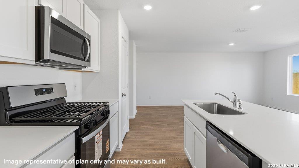 Welcome to The Donna, a two-story home located at Blue Ridge Ranch in San Antonio, TX. This floor plan offers 2 classic exteriors and 2-car garage. Inside this 5 bedroom, 2.5 bathroom home, you'll find 1819 square feet of living space. The entry opens to a spacious family room before flowing into the dining room and kitchen with an open floorplan concept. The kitchen includes quartz counter tops, quality cabinetry, stainless steel appliances, large breakfast island, and pantry. Head up the stairs to find the main bedroom suite, all secondary bedrooms, the laundry room, and a full bath. The Donna layout is perfect if you love entertaining downstairs and relaxing upstairs. The private main bedroom features an attractive ensuite with quality cabinetry. A spacious tiled walk-in shower and large walk-in closet provide all the space and convenience you need. Additional features of The Donna floor plan include sheet vinyl flooring in entry, living room, and all wet areas, quartz counter tops in all bathrooms and HOME IS CONNECTED base package. Using one central hub that talks to all the devices in your home, you can control the lights, thermostat and locks, all from your cellular device.