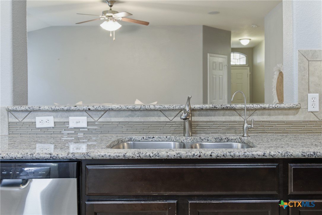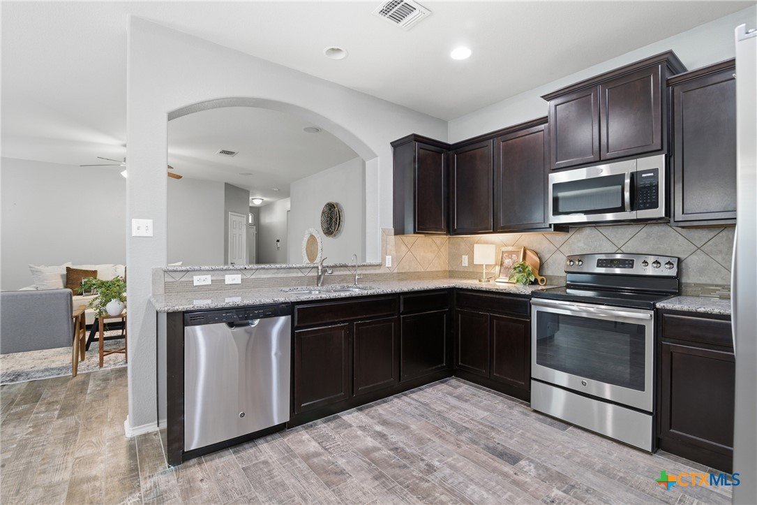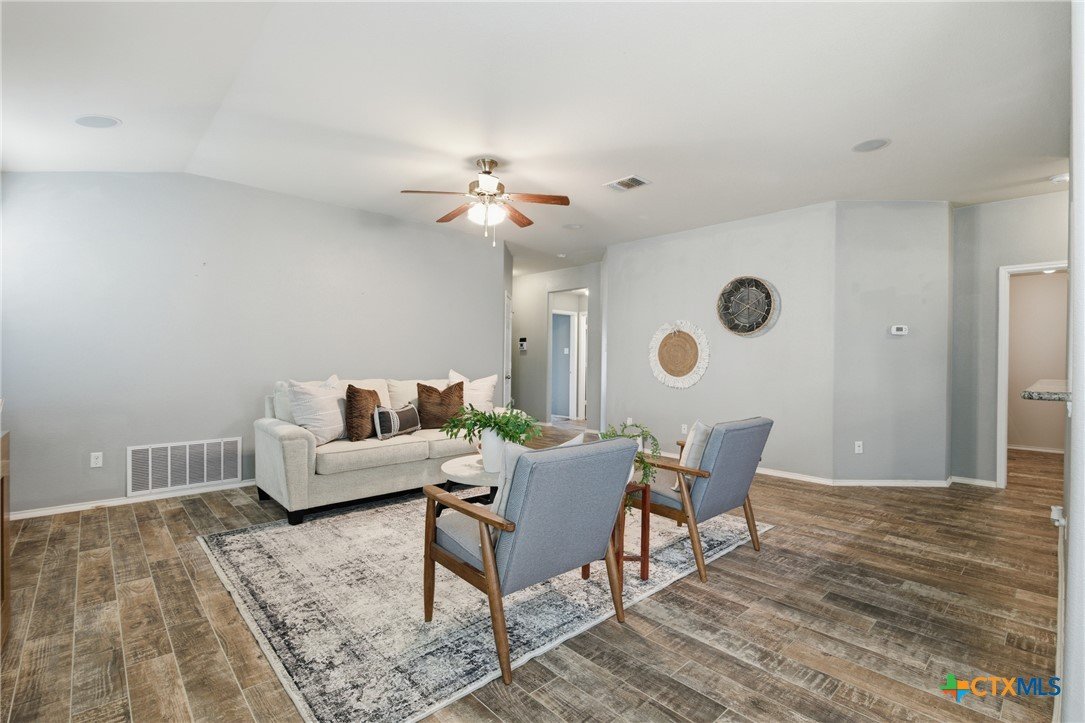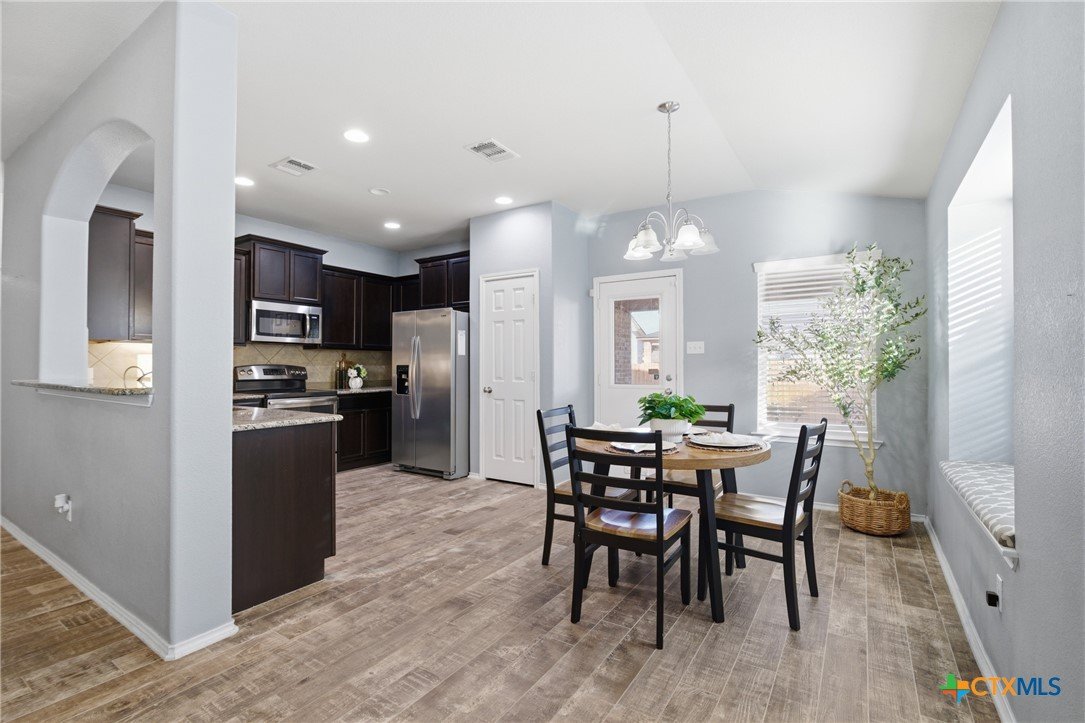 Welcome to 5913 Huntington in Temple, Texas, a well-maintained 3-bedroom, 2-bathroom home located in the highly desirable Academy ISD with no HOA, offering space, comfort, and move-in-ready convenience. As you enter the home, you’re welcomed by a huge living room with plenty of room for relaxing, entertaining, or gathering with family and friends. The main living areas feature durable ceramic tile flooring, while the bedrooms offer comfortable carpet for a cozy feel. The large kitchen is both functional and inviting, featuring granite countertops, stainless steel appliances, abundant cabinetry, and a spacious pantry. The kitchen also includes a dining area within the space, making it perfect for everyday meals or casual gatherings. The refrigerator, washer, and dryer all convey, making this home truly move-in ready. The primary suite is generously sized and offers a private retreat with dual vanities, granite countertops, a large walk-in shower, and a spacious walk-in closet. The secondary bedrooms are also large, providing flexibility for family members, guests, or a home office. Additional features include a large laundry room with cabinets, plus plenty of storage throughout the home. Enjoy outdoor living with both a covered front porch and covered back patio, perfect for morning coffee or evening relaxation. The roof was replaced just 1.5 years ago, providing peace of mind for years to come. With its spacious layout, great storage, desirable Academy ISD location, and no HOA, this home offers the perfect combination of comfort and convenience in Temple.