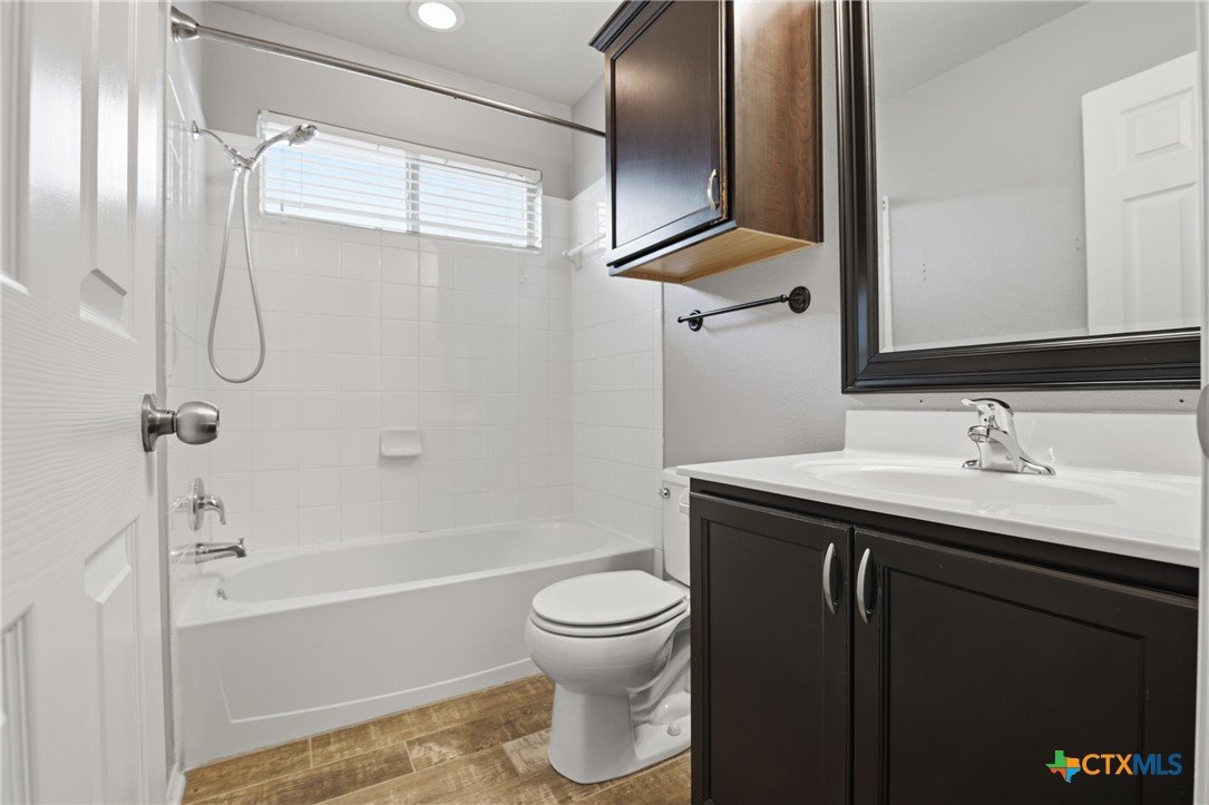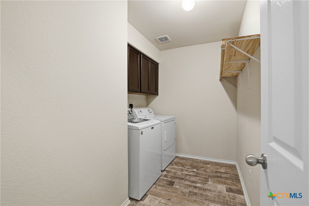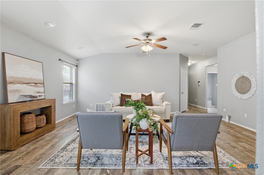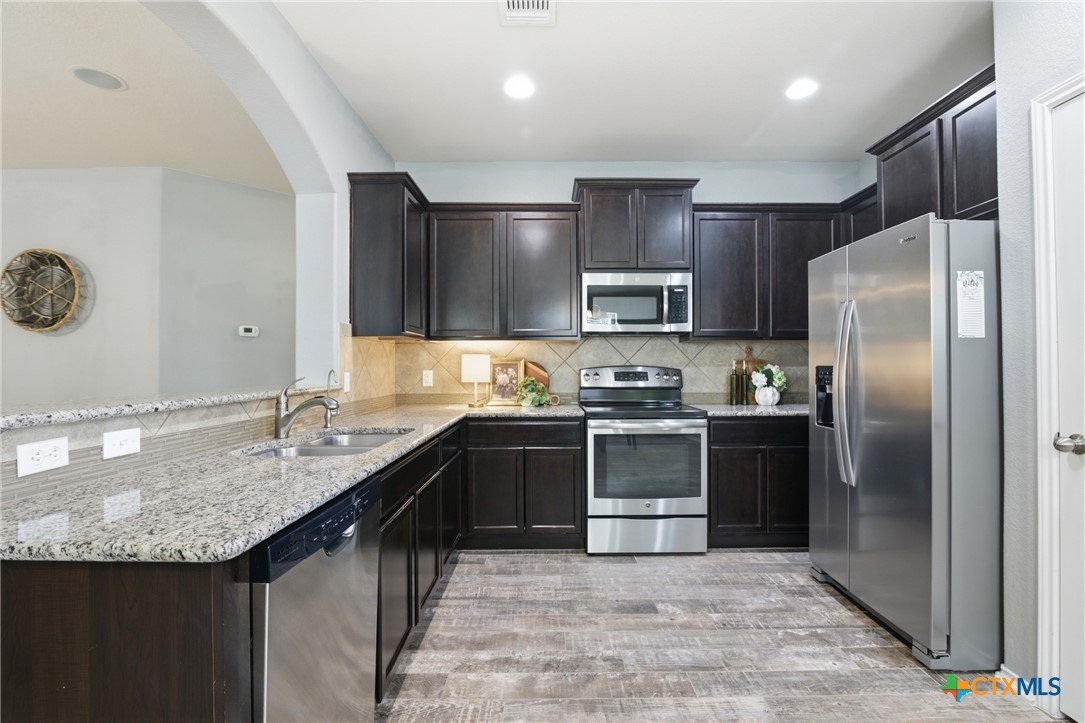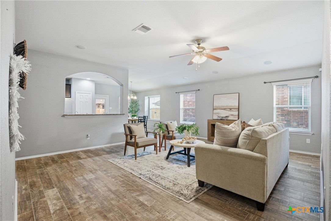 Welcome to 5913 Huntington in Temple, Texas, a well-maintained 3-bedroom, 2-bathroom home located in the highly desirable Academy ISD with no HOA, offering space, comfort, and move-in-ready convenience. As you enter the home, you’re welcomed by a huge living room with plenty of room for relaxing, entertaining, or gathering with family and friends. The main living areas feature durable ceramic tile flooring, while the bedrooms offer comfortable carpet for a cozy feel. The large kitchen is both functional and inviting, featuring granite countertops, stainless steel appliances, abundant cabinetry, and a spacious pantry. The kitchen also includes a dining area within the space, making it perfect for everyday meals or casual gatherings. The refrigerator, washer, and dryer all convey, making this home truly move-in ready. The primary suite is generously sized and offers a private retreat with dual vanities, granite countertops, a large walk-in shower, and a spacious walk-in closet. The secondary bedrooms are also large, providing flexibility for family members, guests, or a home office. Additional features include a large laundry room with cabinets, plus plenty of storage throughout the home. Enjoy outdoor living with both a covered front porch and covered back patio, perfect for morning coffee or evening relaxation. The roof was replaced just 1.5 years ago, providing peace of mind for years to come. With its spacious layout, great storage, desirable Academy ISD location, and no HOA, this home offers the perfect combination of comfort and convenience in Temple.