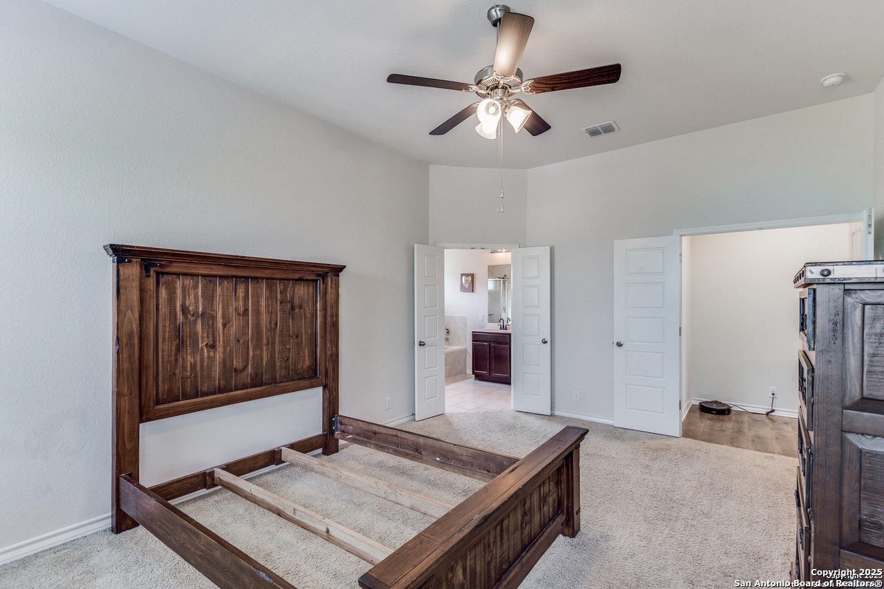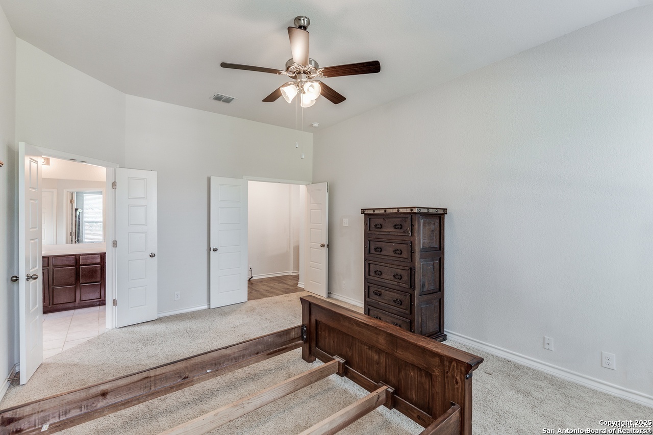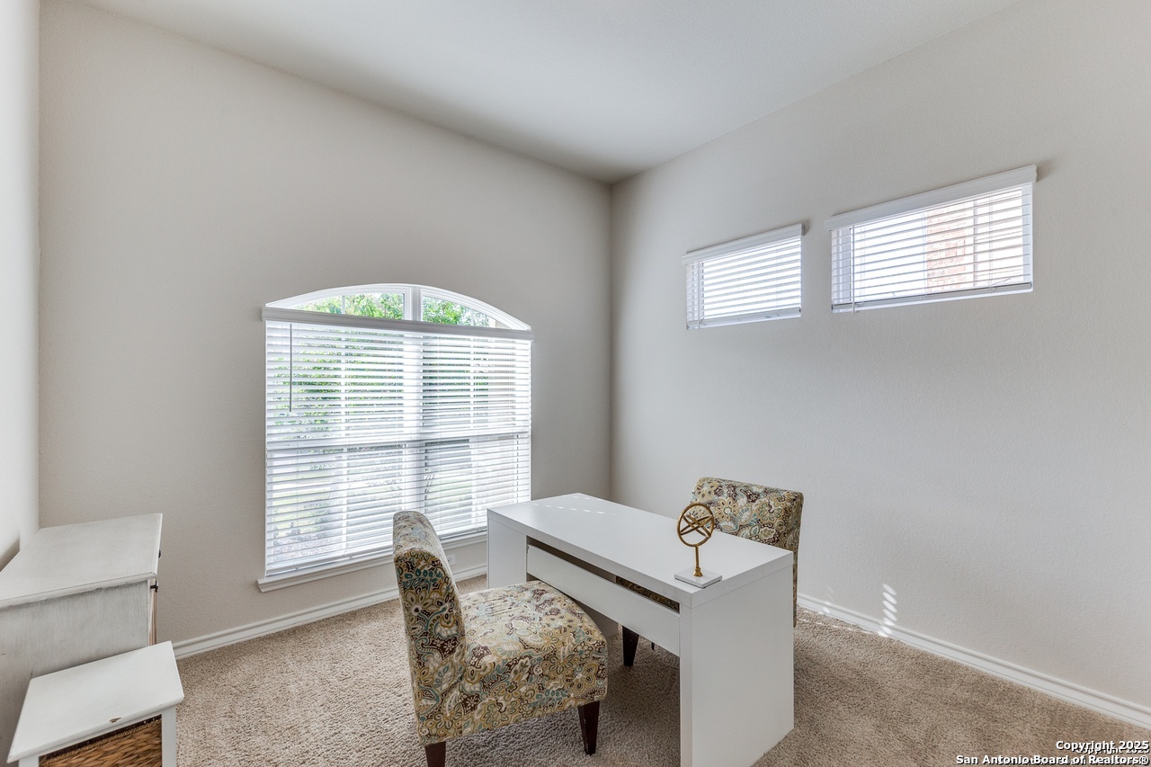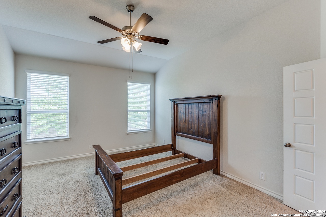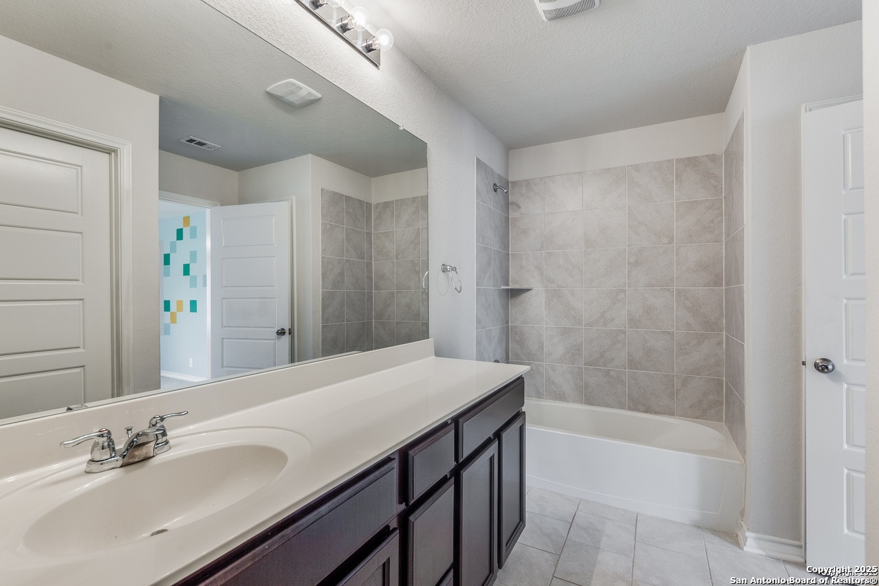 Beautiful 4-Bedroom, 3-Bathroom Home in Wonderful Alamo Ranch Subdivision. Fantastic Community Amenities Including Pool & Splashpad Complex, Clubhouse, Playgrounds, & Walking Trails. Convenient Location Near Hwy-1604 & Hwy-151, Minutes to Downtown, Major Employers, Shopping, Restaurants, & More. Handsome Curb Appeal with Stone & Stucco Exterior, Covered Front Entry, & Solar Panels for Energy Efficiency & Lower Utility Bills! Enter to Foyer Flanked by Home Office with Glass French Doors & Huge Open-Concept Living/Dining Area with Soaring Ceilings, Neutral Paint, & Upgraded Wood-Laminate Flooring. Dining Area Leads to Gourmet Island Kitchen with Granite Countertops, Stainless Steel Appliances, Gas Cooking, Subway Tile Backsplash, Pantry, & Ample Cabinet Space. Large Primary Suite Downstairs with Full Bathroom Featuring Dual Vanities, Separate Garden Tub & Standing Shower, & Large Walk-In Closet. 2 Secondary Bedrooms & Full Bathroom Downstairs with Tub/Shower. 2nd Level Features Large Landing Area, Perfect for Informal Living, TV/Media, Gameroom, or Play Area. 4th Bedroom & Full Bathroom Upstairs. 2-Car Attached Garage with Additional Storage Space & Water Softener. Covered Back Patio Overlooks Private Backyard, Perfect for Relaxation. Pets Case-by-Case, Each Applicant Must Complete Separate Pet Application & Profile. Northside ISD.