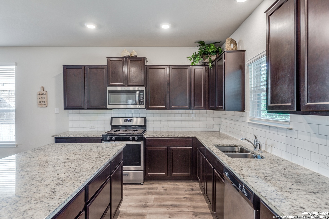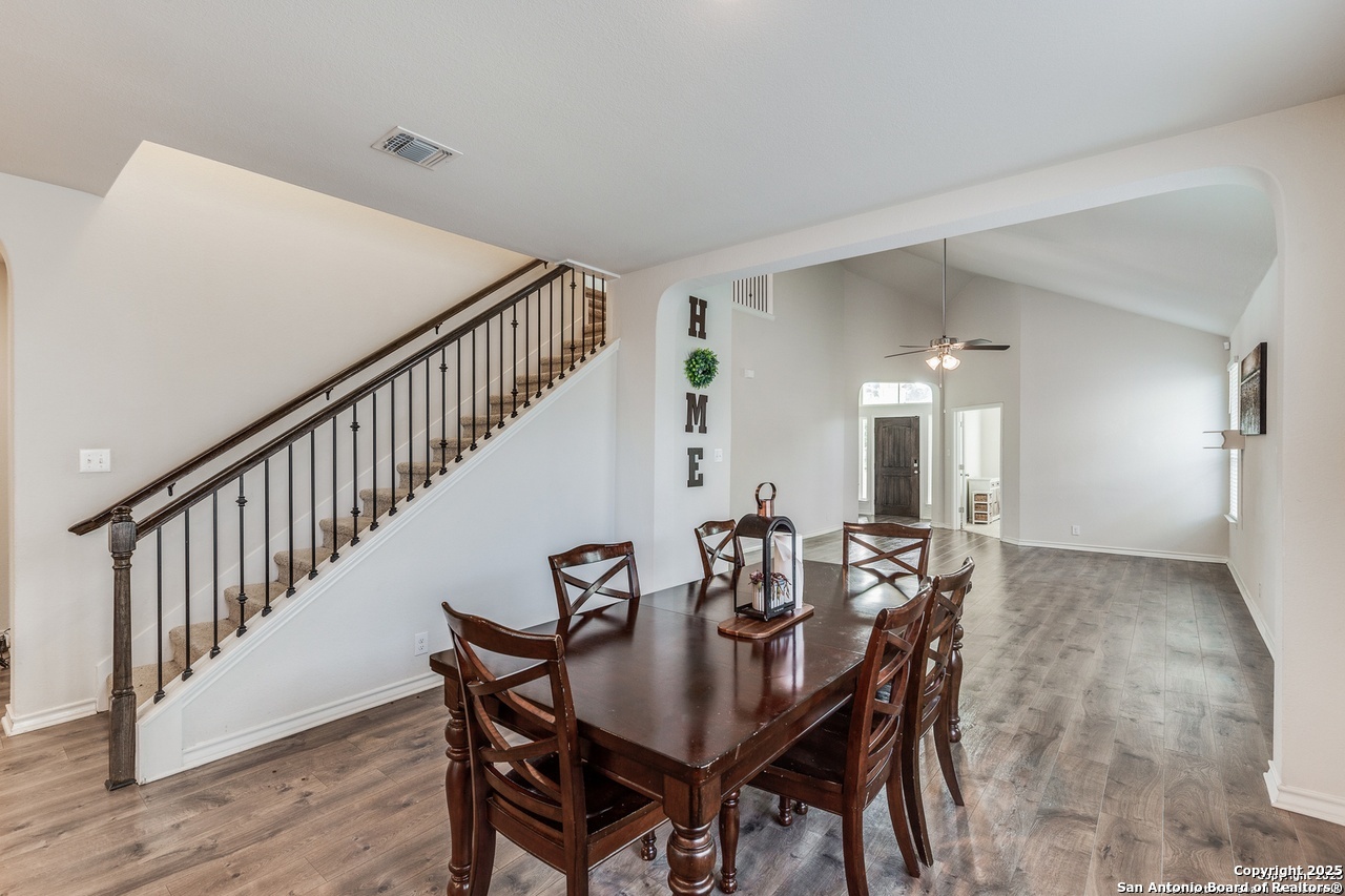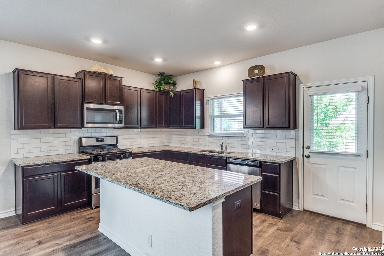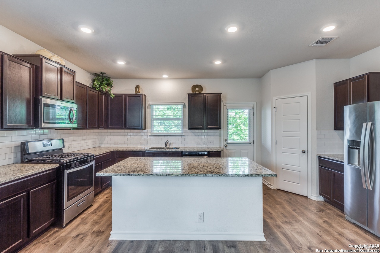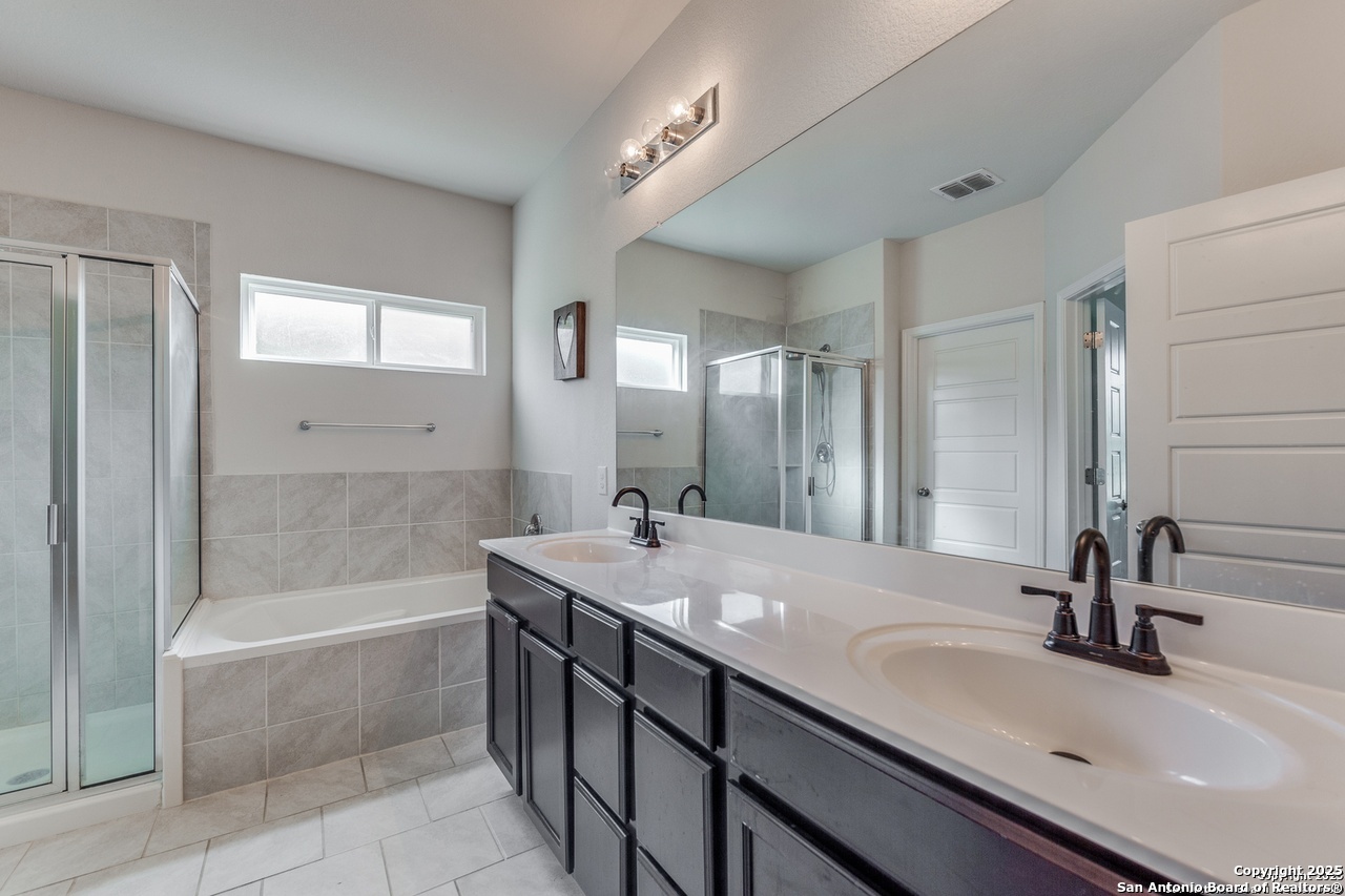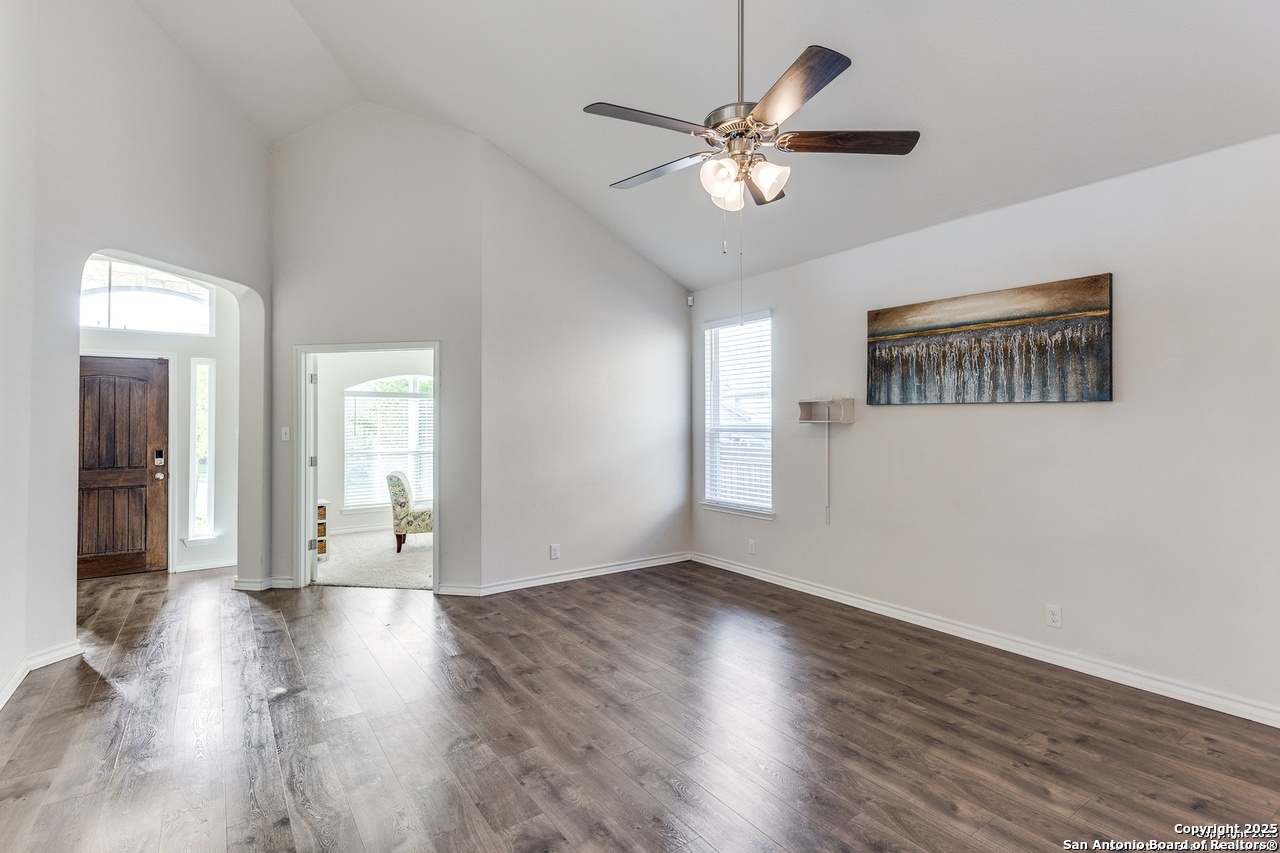 Beautiful 4-Bedroom, 3-Bathroom Home in Wonderful Alamo Ranch Subdivision. Fantastic Community Amenities Including Pool & Splashpad Complex, Clubhouse, Playgrounds, & Walking Trails. Convenient Location Near Hwy-1604 & Hwy-151, Minutes to Downtown, Major Employers, Shopping, Restaurants, & More. Handsome Curb Appeal with Stone & Stucco Exterior, Covered Front Entry, & Solar Panels for Energy Efficiency & Lower Utility Bills! Enter to Foyer Flanked by Home Office with Glass French Doors & Huge Open-Concept Living/Dining Area with Soaring Ceilings, Neutral Paint, & Upgraded Wood-Laminate Flooring. Dining Area Leads to Gourmet Island Kitchen with Granite Countertops, Stainless Steel Appliances, Gas Cooking, Subway Tile Backsplash, Pantry, & Ample Cabinet Space. Large Primary Suite Downstairs with Full Bathroom Featuring Dual Vanities, Separate Garden Tub & Standing Shower, & Large Walk-In Closet. 2 Secondary Bedrooms & Full Bathroom Downstairs with Tub/Shower. 2nd Level Features Large Landing Area, Perfect for Informal Living, TV/Media, Gameroom, or Play Area. 4th Bedroom & Full Bathroom Upstairs. 2-Car Attached Garage with Additional Storage Space & Water Softener. Covered Back Patio Overlooks Private Backyard, Perfect for Relaxation. Pets Case-by-Case, Each Applicant Must Complete Separate Pet Application & Profile. Northside ISD.