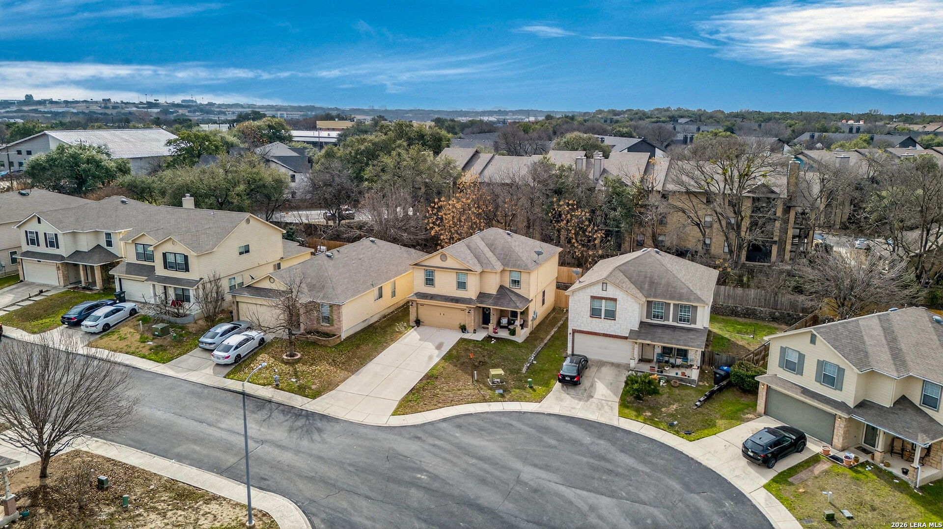 A beautifully updated home tucked away on a quiet cul-de-sac in a highly desirable PARK AT UNIVERSITY HILLS subdivision. A new kitchen with all-new appliances was recently added to the house, and the beautiful island is perfect for modern living and entertaining. Wood flooring throughout the first floor adds warmth and elegance, while the extended driveway provides parking for up to four vehicles, a rare and valuable feature, and also has two car garage. All three bedrooms are located upstairs, along with a spacious loft/second living area filled with abundant natural light, making it ideal for a game room, home office, or additional family space. The home has been nicely painted throughout, creating a fresh, bright, and welcoming atmosphere. Enjoy added privacy with no back neighbors, offering a peaceful backyard setting. Conveniently located near Medical Center, UTSA, USAA, The Rim. Shops at La Cantera, Six Flags Fiesta, Sea Word, and a wide variety of shopping, dining, and entertainment options, with an easy access to the major Highways. This move-in-ready home combines comfort, style, and an unbeatable location-don't miss this exceptional opportunity to own a beautiful home in a prime San Antonio location.