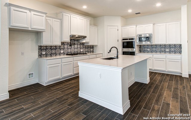 Brand New 5 bedroom/3 bath Home in Vintage Oaks! Single story with large windows/lots of light and dark wood grain tile in living/kitchen and bedrooms. Kitchen includes center island/granite counters, double oven, refrigerator, gas cooking. Media room comes pre-wired. Master bath with his & her vanities, soaking tub, walk in shower. Includes laundry room with washer/dryer, water softener, 3 car garage with mud room, covered porch and fenced backyard with beautiful shade tree. Vintage Oaks offers resort-style amenities that include pools, lazy river, sauna, clubhouse, trails, fitness center, parks and more.