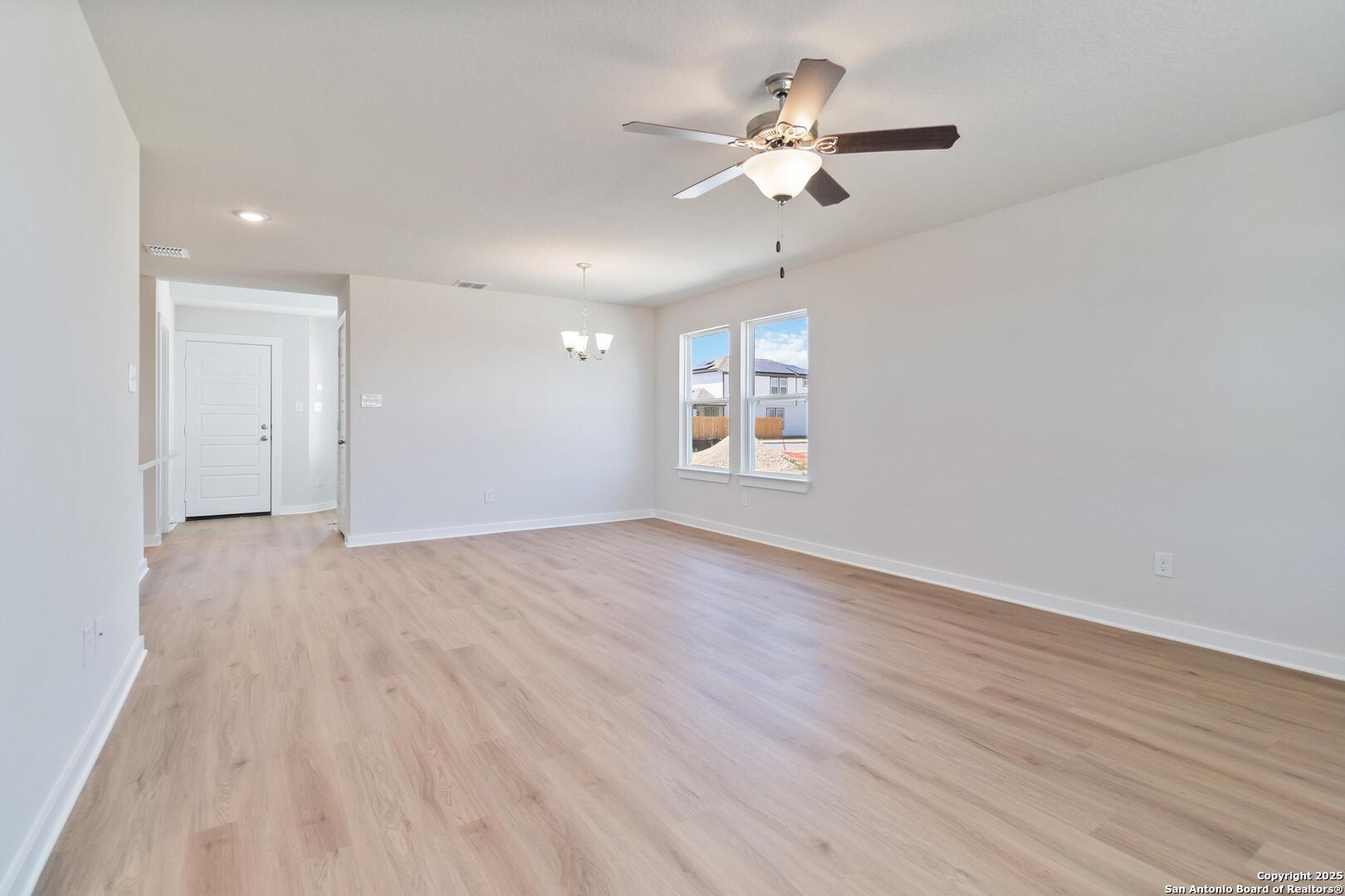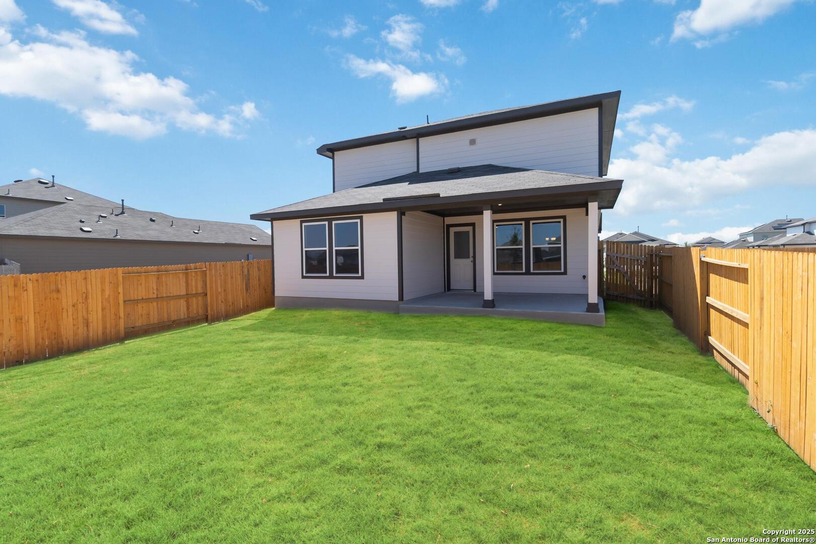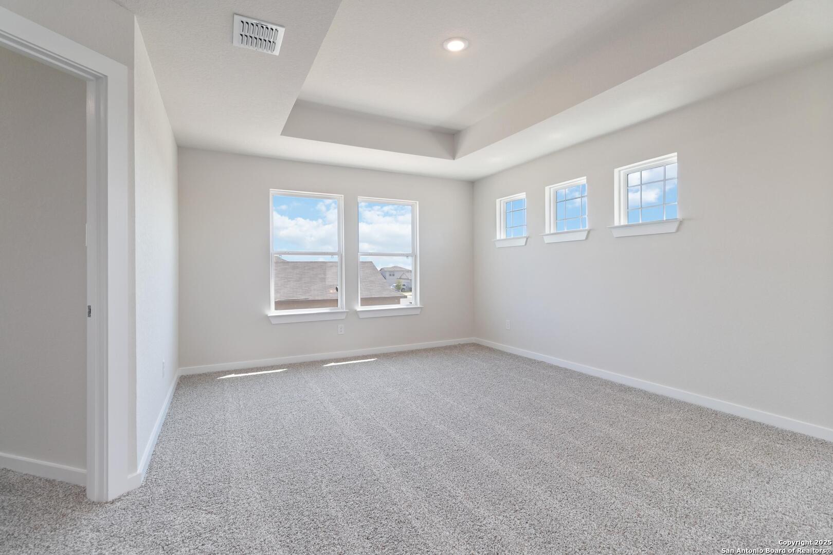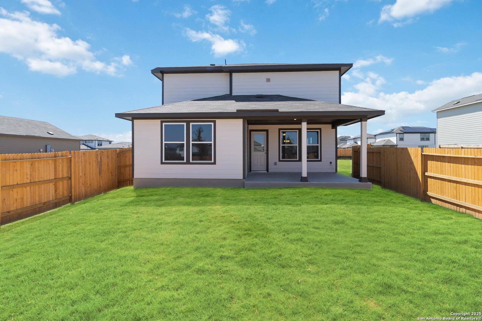 The Vail floorplan is a stylish and functional four-bedroom, two-and-a-half bath home located on a greenbelt lot. The open living and dining areas seamlessly flow into the kitchen, creating a welcoming atmosphere for gatherings. The generously sized owner's suite features an ensuite bathroom for a private retreat, while the upstairs gameroom offers additional space for recreation and relaxation. To enhance your outdoor living experience, an added covered back patio provides a comfortable and shaded area away from the summer sun. Photos are representative.