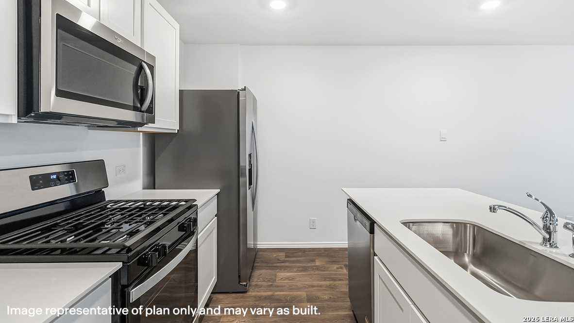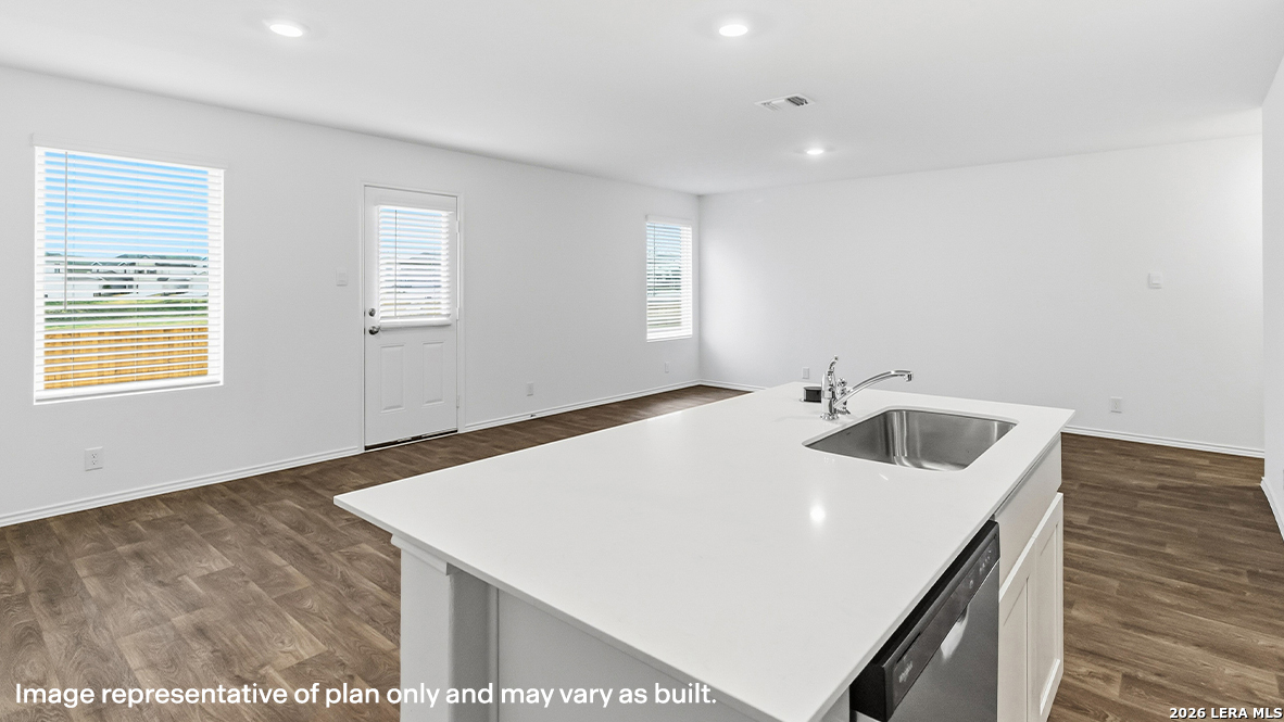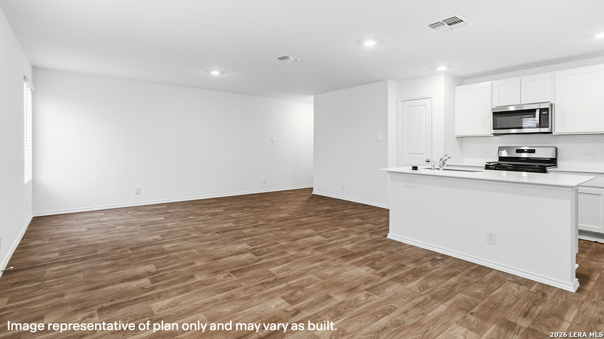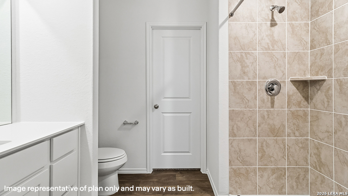 Welcome to The Clyde, a two-story home located at Blue Ridge Ranch in San Antonio, TX. This floor plan offers 2 classic exteriors and 2-car garage. Inside this 4 bedroom, 2.5 bathroom home, you'll find 1617 square feet of living space. The entry opens to a spacious family room before flowing into the dining room and kitchen with an open floorplan concept. The kitchen includes quartz counter tops, quality cabinetry, stainless steel appliances, large breakfast island, and pantry. Head up the stairs to find the main bedroom suite, all secondary bedrooms, the laundry room, and a full bath. The Clyde layout is perfect if you love entertaining downstairs and relaxing upstairs. The private main bedroom features an attractive ensuite with quality cabinetry. A spacious tiled walk-in shower and large walk-in closet provide all the space and convenience you need. Additional features of The Clyde floor plan include sheet vinyl flooring in entry, living room, and all wet areas, quartz counter tops in all bathrooms and HOME IS CONNECTED base package. Using one central hub that talks to all the devices in your home, you can control the lights, thermostat and locks, all from your cellular device.