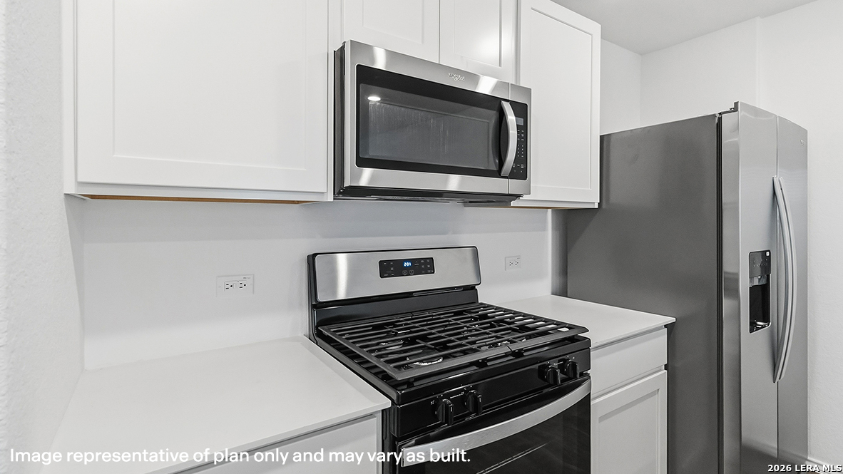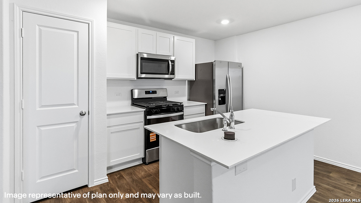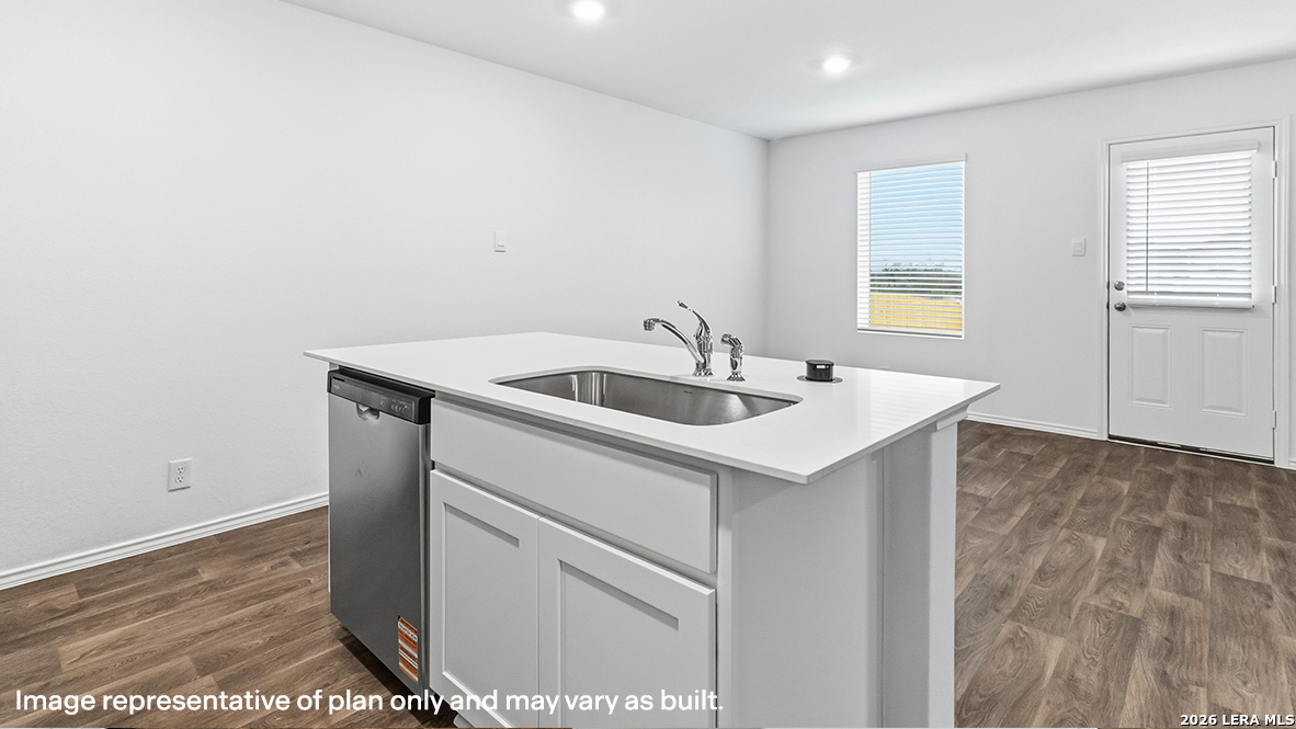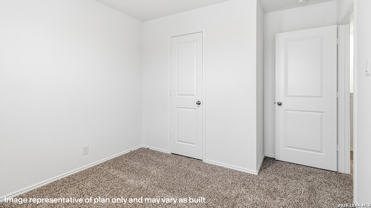 Welcome to The Clyde, a two-story home located at Blue Ridge Ranch in San Antonio, TX. This floor plan offers 2 classic exteriors and 2-car garage. Inside this 4 bedroom, 2.5 bathroom home, you'll find 1617 square feet of living space. The entry opens to a spacious family room before flowing into the dining room and kitchen with an open floorplan concept. The kitchen includes quartz counter tops, quality cabinetry, stainless steel appliances, large breakfast island, and pantry. Head up the stairs to find the main bedroom suite, all secondary bedrooms, the laundry room, and a full bath. The Clyde layout is perfect if you love entertaining downstairs and relaxing upstairs. The private main bedroom features an attractive ensuite with quality cabinetry. A spacious tiled walk-in shower and large walk-in closet provide all the space and convenience you need. Additional features of The Clyde floor plan include sheet vinyl flooring in entry, living room, and all wet areas, quartz counter tops in all bathrooms and HOME IS CONNECTED base package. Using one central hub that talks to all the devices in your home, you can control the lights, thermostat and locks, all from your cellular device.