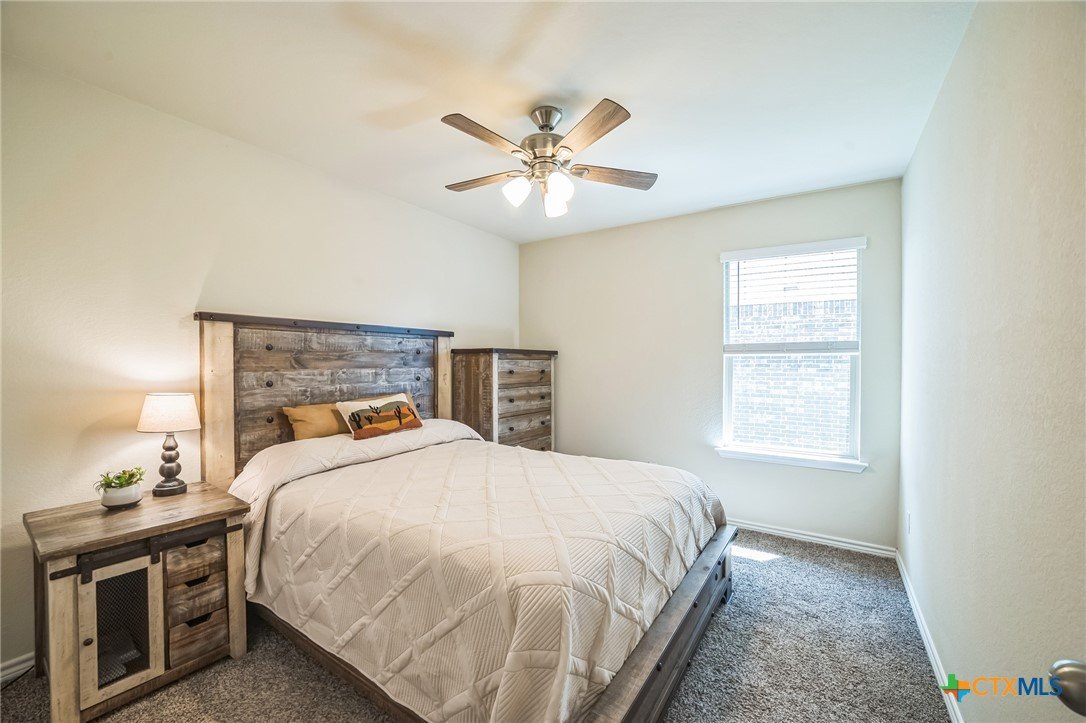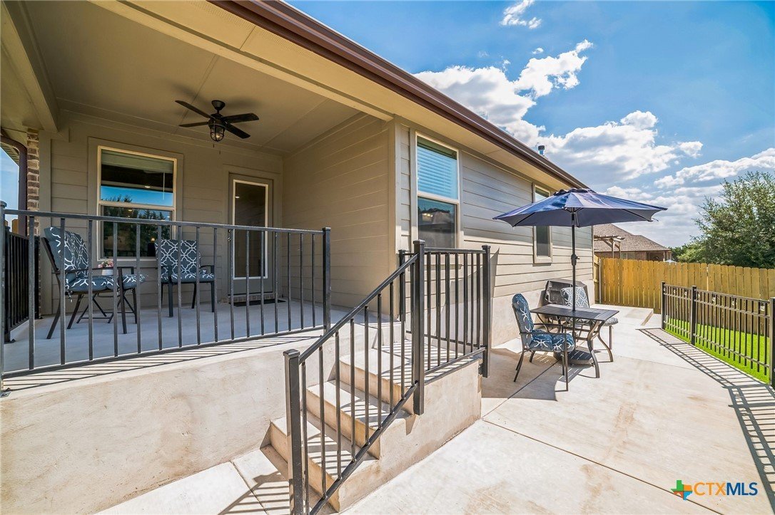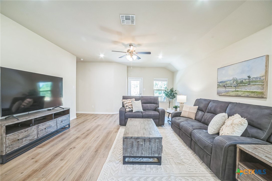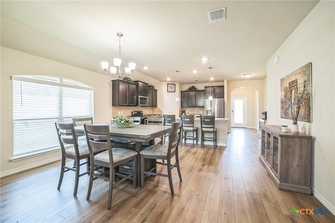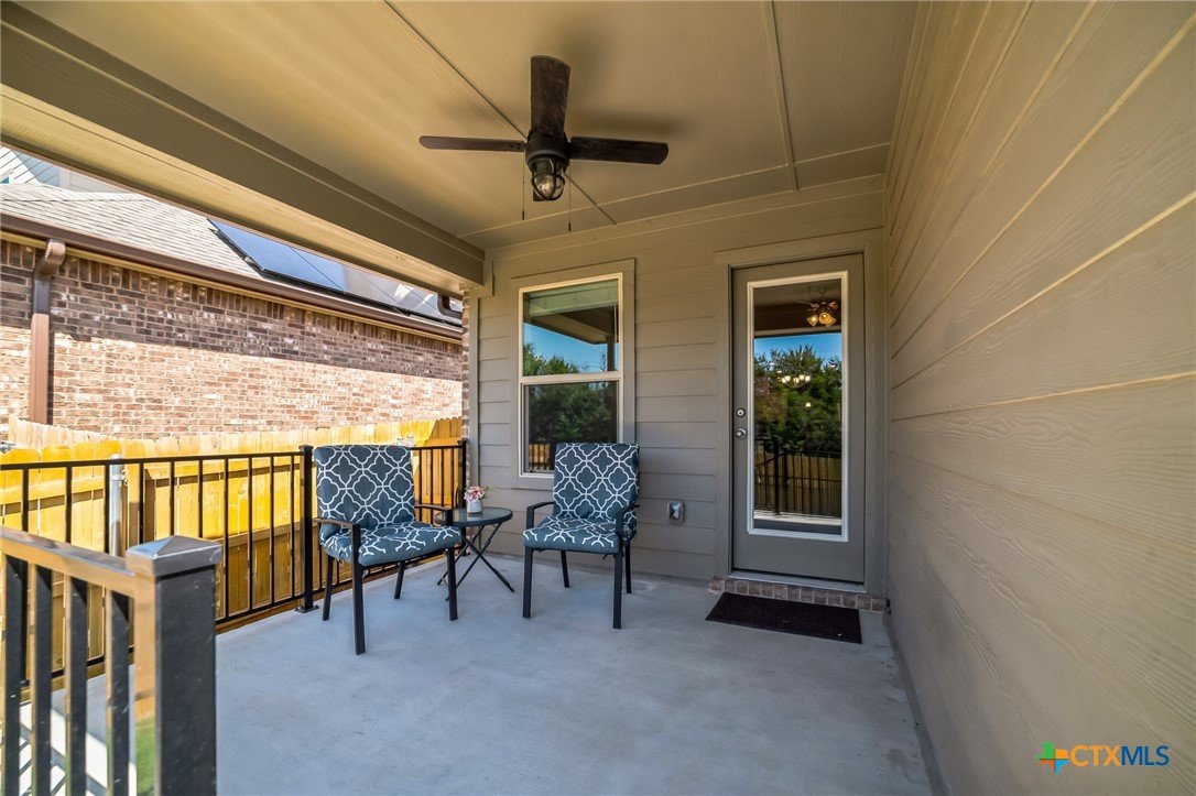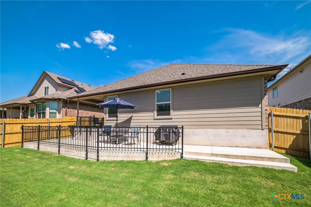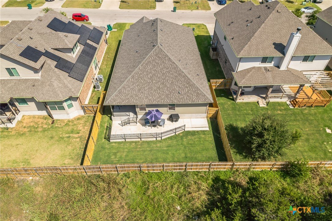 The green space lot and immaculate condition make this a buyer favorite! Look no further than the highly sought-after Three Creeks neighborhood, featuring a super clean, single-story home combining charm, functionality, and upgrades that the other homes can't touch. Nestled on a premier lot backing to dedicated green space, you'll enjoy the perfect blend of privacy and nature from a covered back patio with a ceiling fan, and the upgraded, extended patio area and fenced backyard; ideal for peaceful evenings or entertaining guests. The home has a thoughtfully designed floor plan with 3 spacious bedrooms, 2 full bathrooms, a dedicated office, large living and dining rooms that flow together, plus a versatile flex space between the secondary bedrooms ideal for crafts, homework, gaming, or a second office. Tall ceilings and the open-concept create a bright and airy atmosphere, where natural light streams through the dining window to the kitchen. A few key features include wood-look LVP floors throughout the home, with carpet in bedrooms. The kitchen offers a breakfast bar, counters topped with granite, stainless appliances, a slide-in double oven, pull-out tray slides in lower cabinets, and a large pantry. A spacious owner’s suite near the rear of the house is split from the secondary bedrooms and has a large ensuite with a separate soaking tub and shower, double vanities, and a large walk-in closet. Located in the award-winning Belton School District, this home is centrally located to major cities along the I-35 corridor, including Temple, Killeen, Salado, Georgetown, Austin, and Waco. The neighborhood features a wealth of outdoor amenities, including a private pavilion with tables, restrooms, and walking trails, and nearby Chalk Ridge Falls and stunning Stillhouse Hollow Lake. We promise, the picturesque lake views as you enter and exit the community create an immediate wow-factor and a desire to see that kind of beauty as often as you can.
