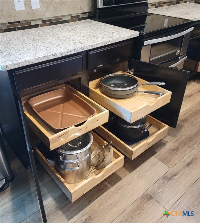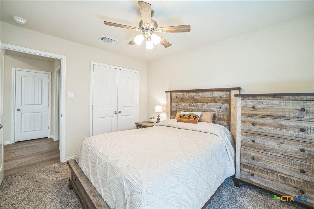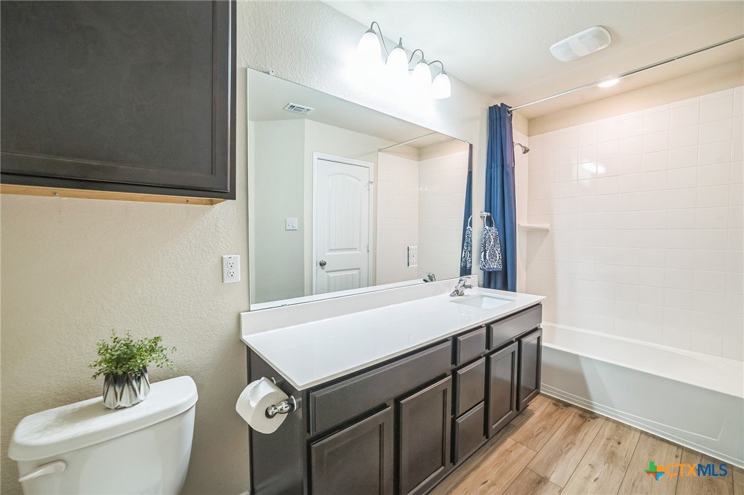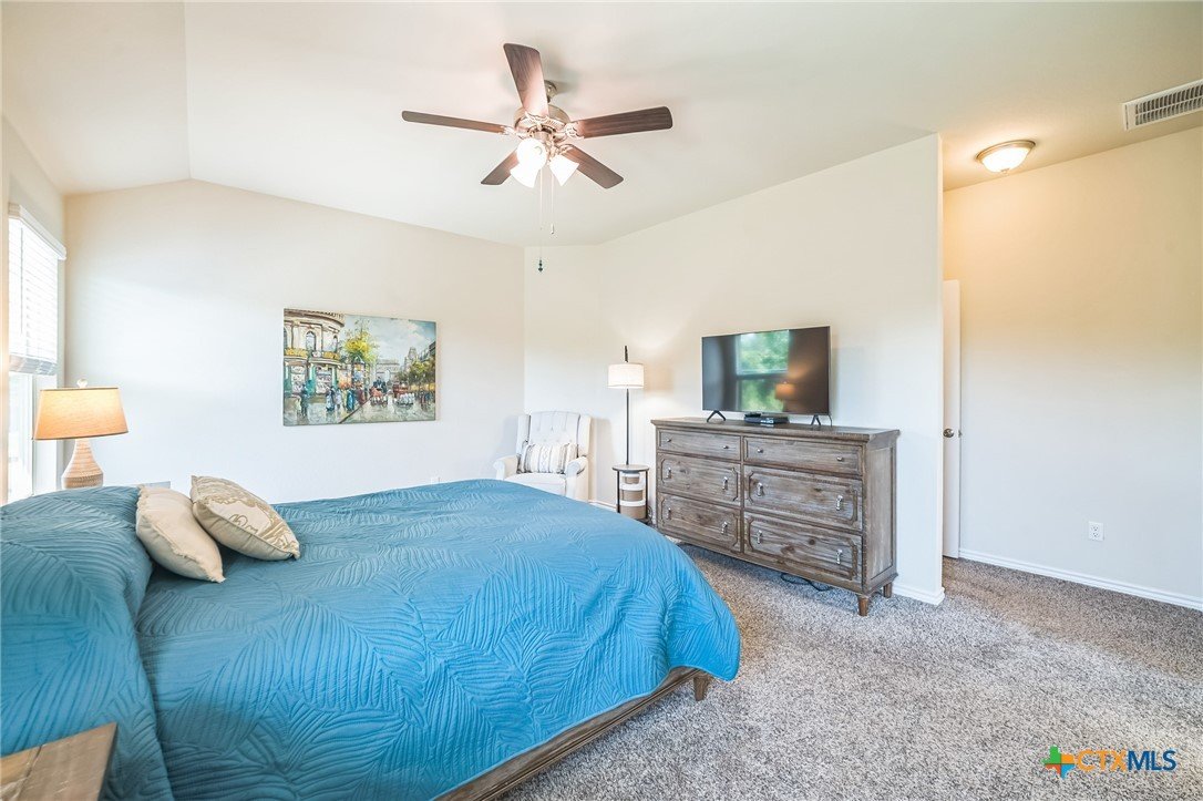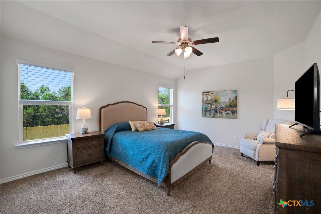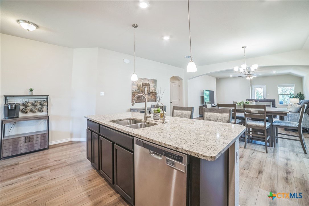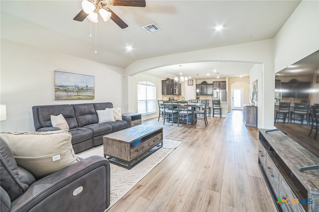 The green space lot and immaculate condition make this a buyer favorite! Look no further than the highly sought-after Three Creeks neighborhood, featuring a super clean, single-story home combining charm, functionality, and upgrades that the other homes can't touch. Nestled on a premier lot backing to dedicated green space, you'll enjoy the perfect blend of privacy and nature from a covered back patio with a ceiling fan, and the upgraded, extended patio area and fenced backyard; ideal for peaceful evenings or entertaining guests. The home has a thoughtfully designed floor plan with 3 spacious bedrooms, 2 full bathrooms, a dedicated office, large living and dining rooms that flow together, plus a versatile flex space between the secondary bedrooms ideal for crafts, homework, gaming, or a second office. Tall ceilings and the open-concept create a bright and airy atmosphere, where natural light streams through the dining window to the kitchen. A few key features include wood-look LVP floors throughout the home, with carpet in bedrooms. The kitchen offers a breakfast bar, counters topped with granite, stainless appliances, a slide-in double oven, pull-out tray slides in lower cabinets, and a large pantry. A spacious owner’s suite near the rear of the house is split from the secondary bedrooms and has a large ensuite with a separate soaking tub and shower, double vanities, and a large walk-in closet. Located in the award-winning Belton School District, this home is centrally located to major cities along the I-35 corridor, including Temple, Killeen, Salado, Georgetown, Austin, and Waco. The neighborhood features a wealth of outdoor amenities, including a private pavilion with tables, restrooms, and walking trails, and nearby Chalk Ridge Falls and stunning Stillhouse Hollow Lake. We promise, the picturesque lake views as you enter and exit the community create an immediate wow-factor and a desire to see that kind of beauty as often as you can.